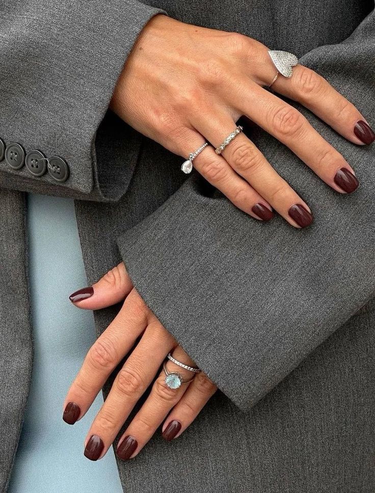 Вторым по популярности после нюда остаётся красные оттенки. Это классика, как красная помада. Выбирая цветной маникюр, обязательно подумай обо всём образе в целом. Не с каждым платьем и букетом будут уместно смотреться, например, ярко-синие ногти. Маникюр должен дополнять образ, а не перетягивать на себя все внимание.