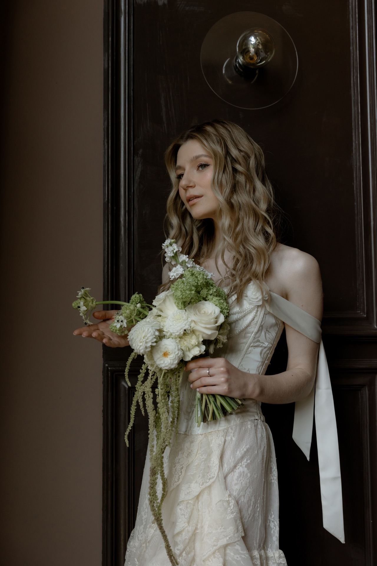 Отдельное внимание я уделила букету, хотелось что-то необычное. Орнитогалум означает «светлое будущее», неплохо для начала семейной жизни.