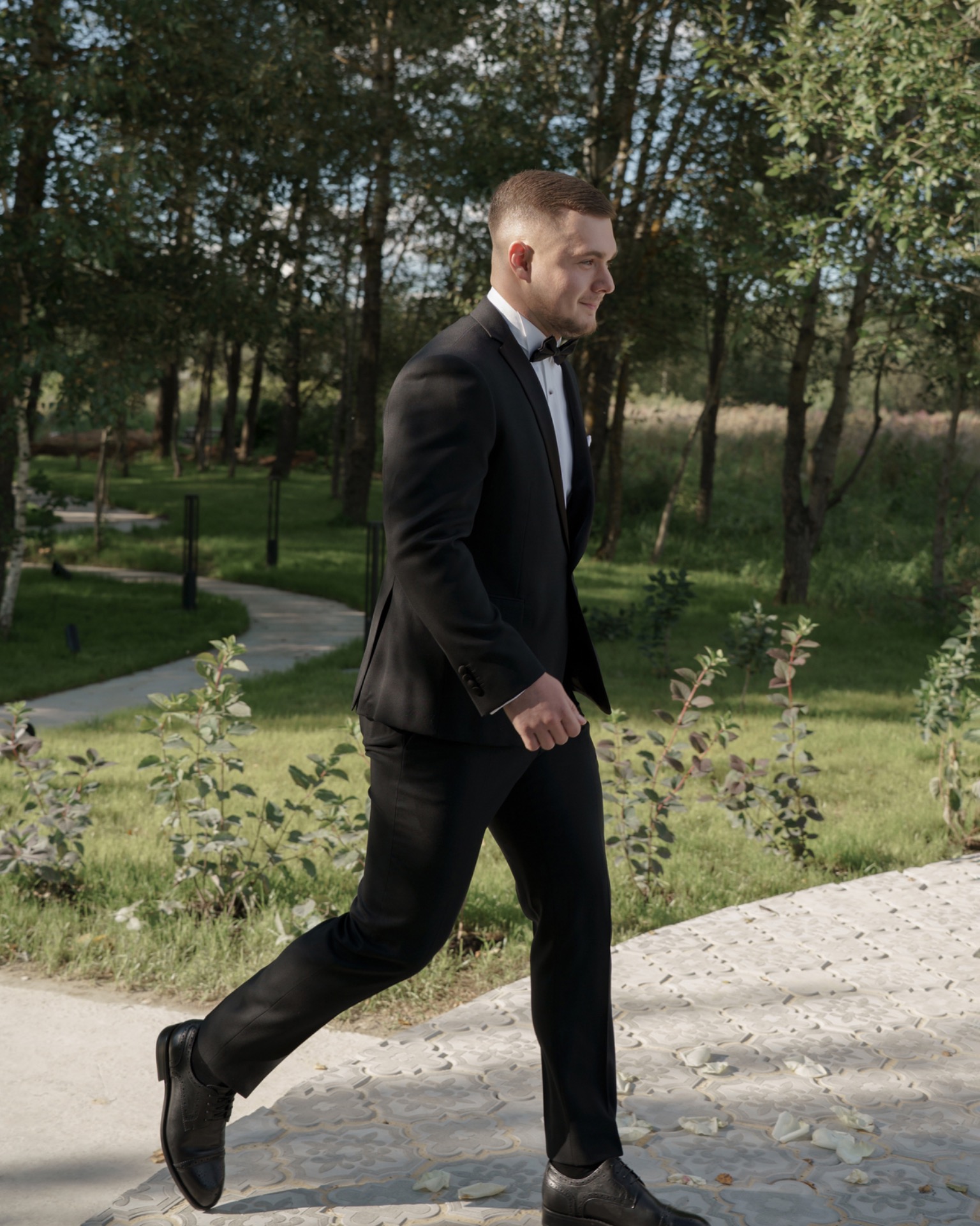 Никита выбрал для себя классический образ — чёрный костюм и бабочку. Он выглядел очень сдержанно и стильно.
