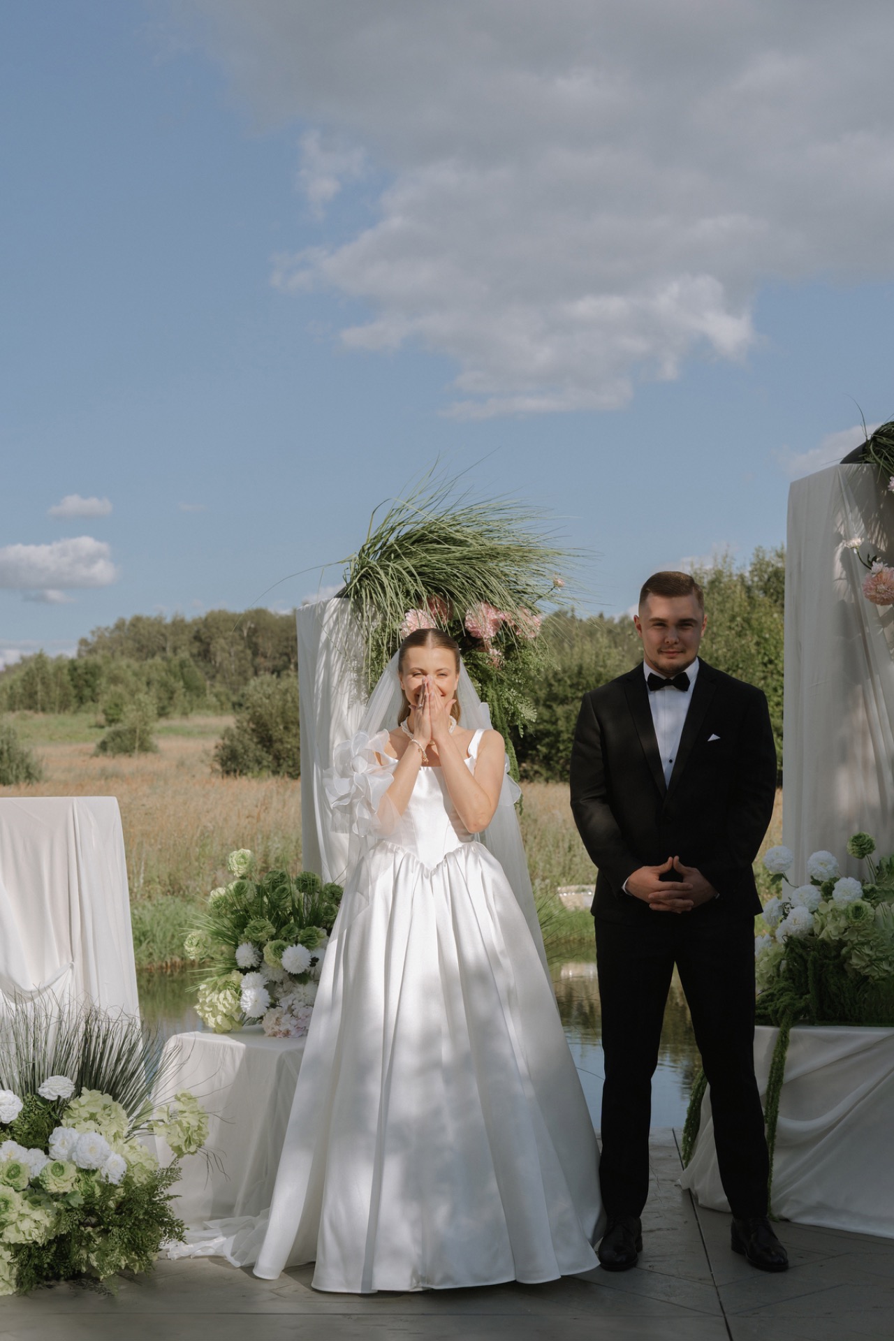 Церемония получилась очень трогательной. Маша не сдерживала эмоций, у неё была очень трогательная речь о том, как важно идти вместе и с Богом. Никита волновался, гости улыбались и плакали вместе с ними.