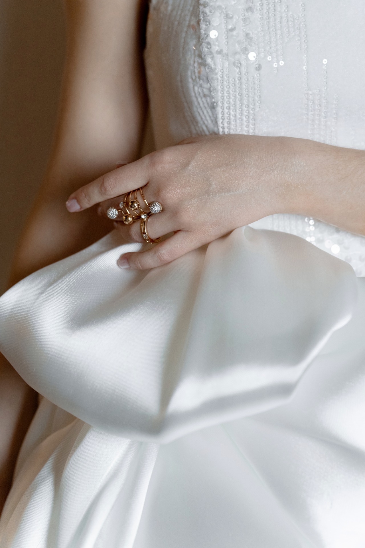 Туфельки от Jimmy Choo с кристаллами мне привезли из Европы. Аксессуары мы выбрали в Poison Drop. Для меня было очень важно передать Никите свои чувства через образ — без слов сказать ему, как я его люблю. Второй образ был от Zimmermann в сочетании с босоножками Magda Butrym.