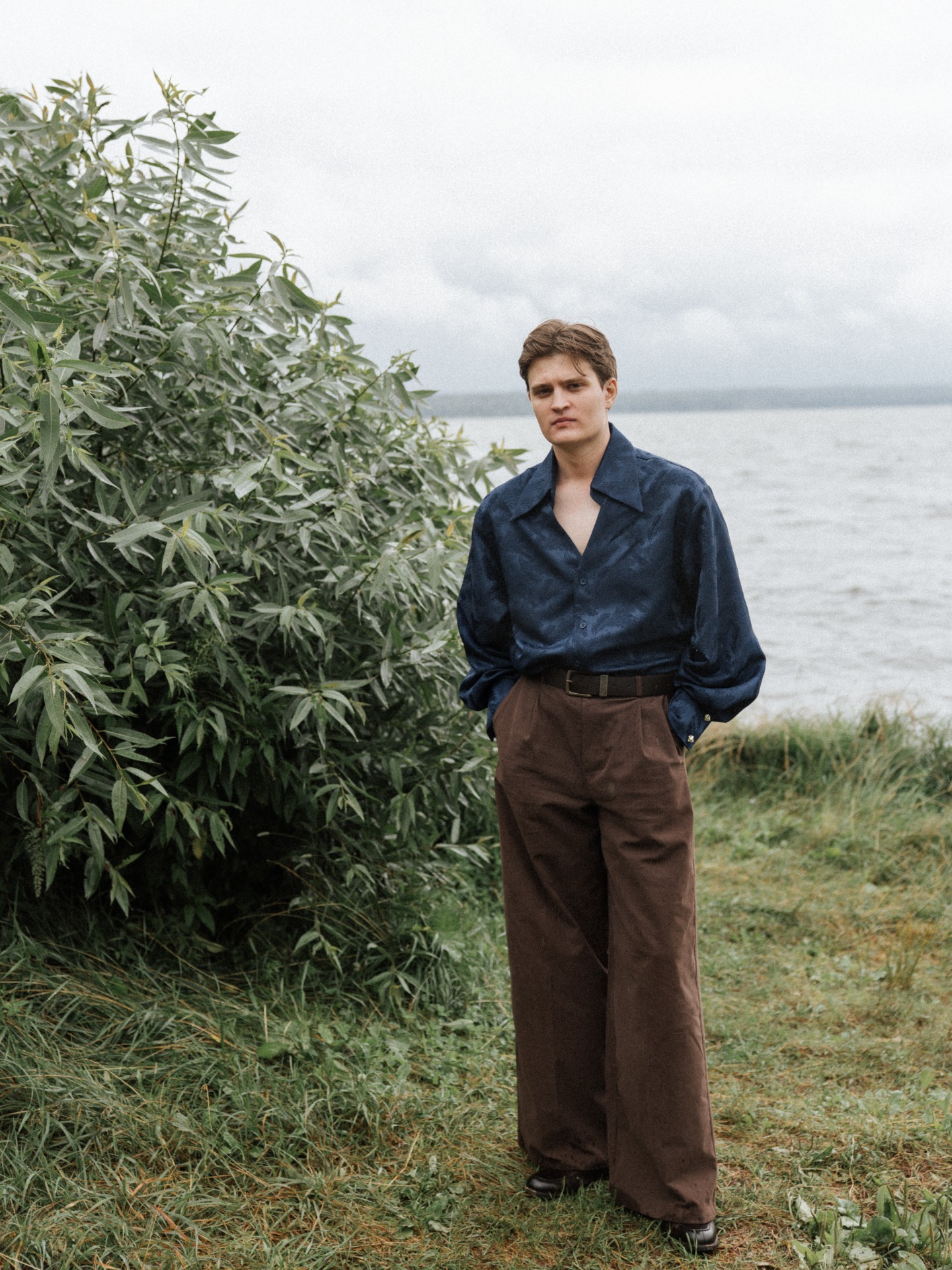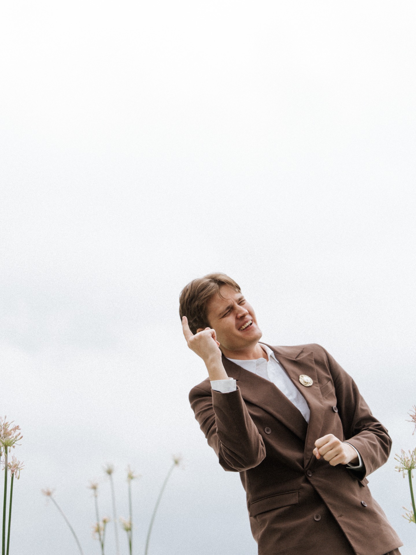Костюм Даниле шил Артём Мидда. Мы ездили выбирать ткань и остановились на мягкой коричневой с еле заметной полоской. Фасон включал широкие брюки и зауженный двубортный пиджак, которые сложно было найти в магазинах.