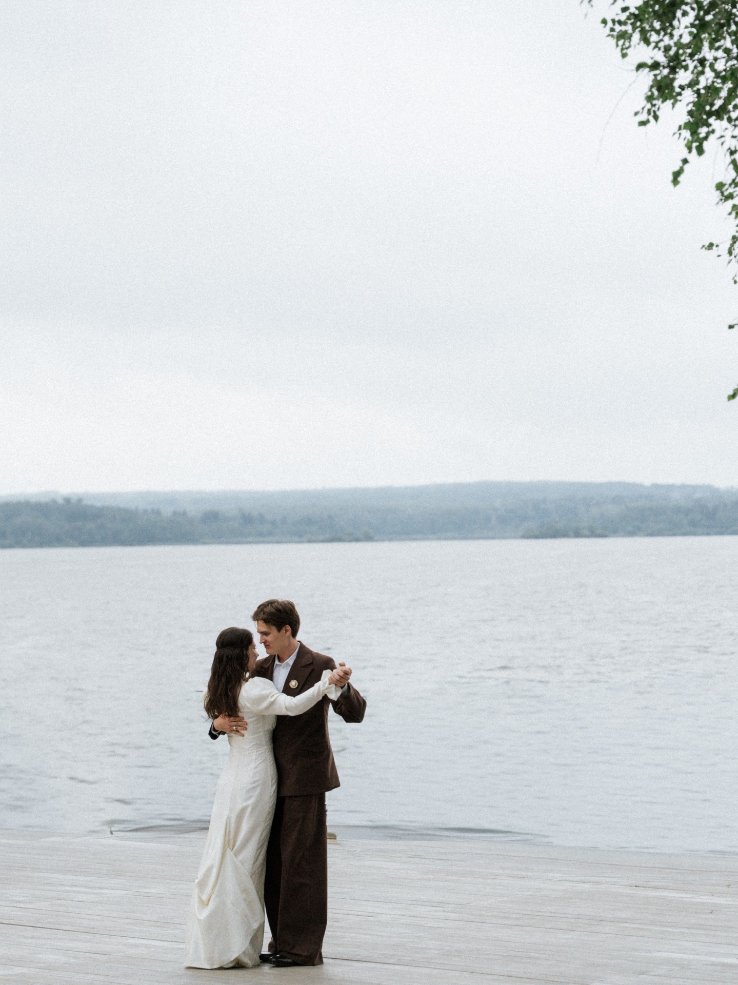 На свадьбу я выбрала платье от Ольги Silk & Lace. В ходе примерок я поняла, что оно появилось в моих сохранёнках ещё четыре года назад. Мне хотелось платье с характером, выразительное, интересное по текстуре, свободное, и это было оно! Мне кажется, эта модель не подвластна времени, но при этом не скучная.