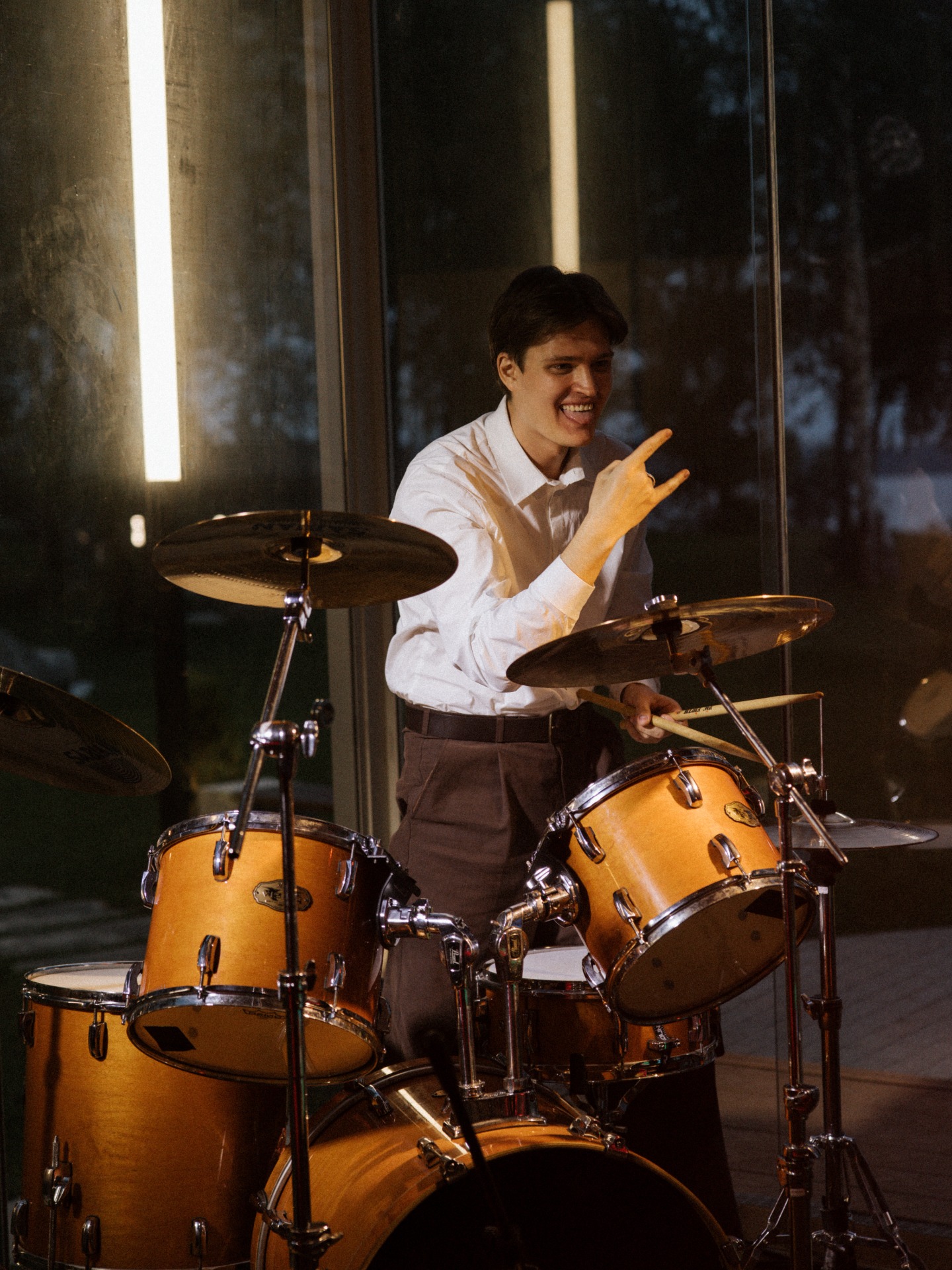 Данила подготовил сюрприз для меня и сыграл барабанный сет с моими любимыми песнями. Дальше был торт, на котором мы разбили шоколадную вишню барабанными палочками, а после гостям раздали домашнюю вишнёвую настойку.