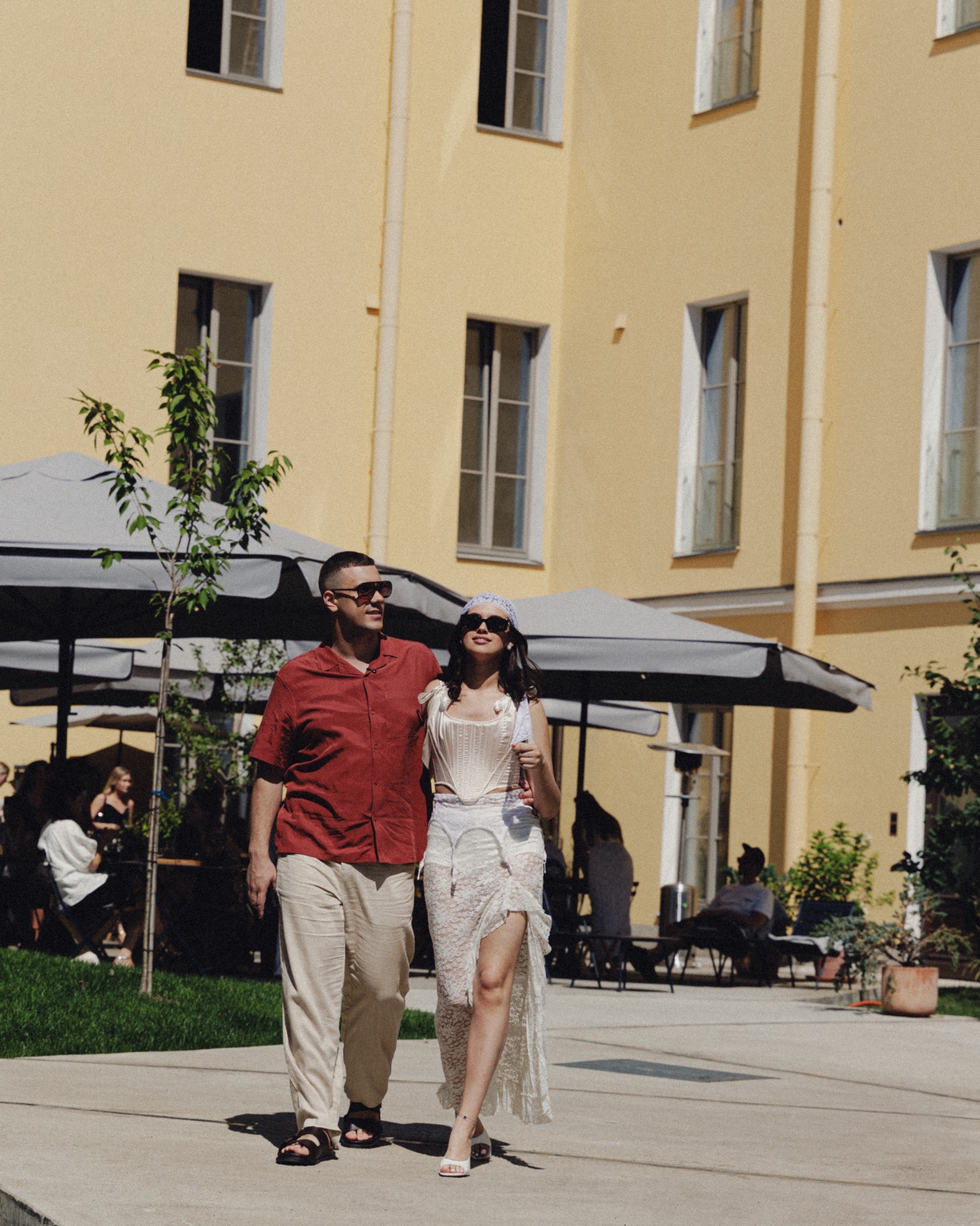 Предложение Юра сделал в ОАЭ, во время фотосессии на закате у океана. Мы едва не проспали съёмку: после пляжа решили немного отдохнуть и незаметно уснули. Проснувшись, мы поспешно оделись и побежали на фотосессию. Когда мы перешли к локации с беседкой на мысе, фотограф предложила сделать бекстейдж-кадры. В этот момент Юра развернул меня к себе и достал из кармана коробочку с кольцом. Я сразу всё поняла. Это было трогательное и волнительное событие для нас обоих.
