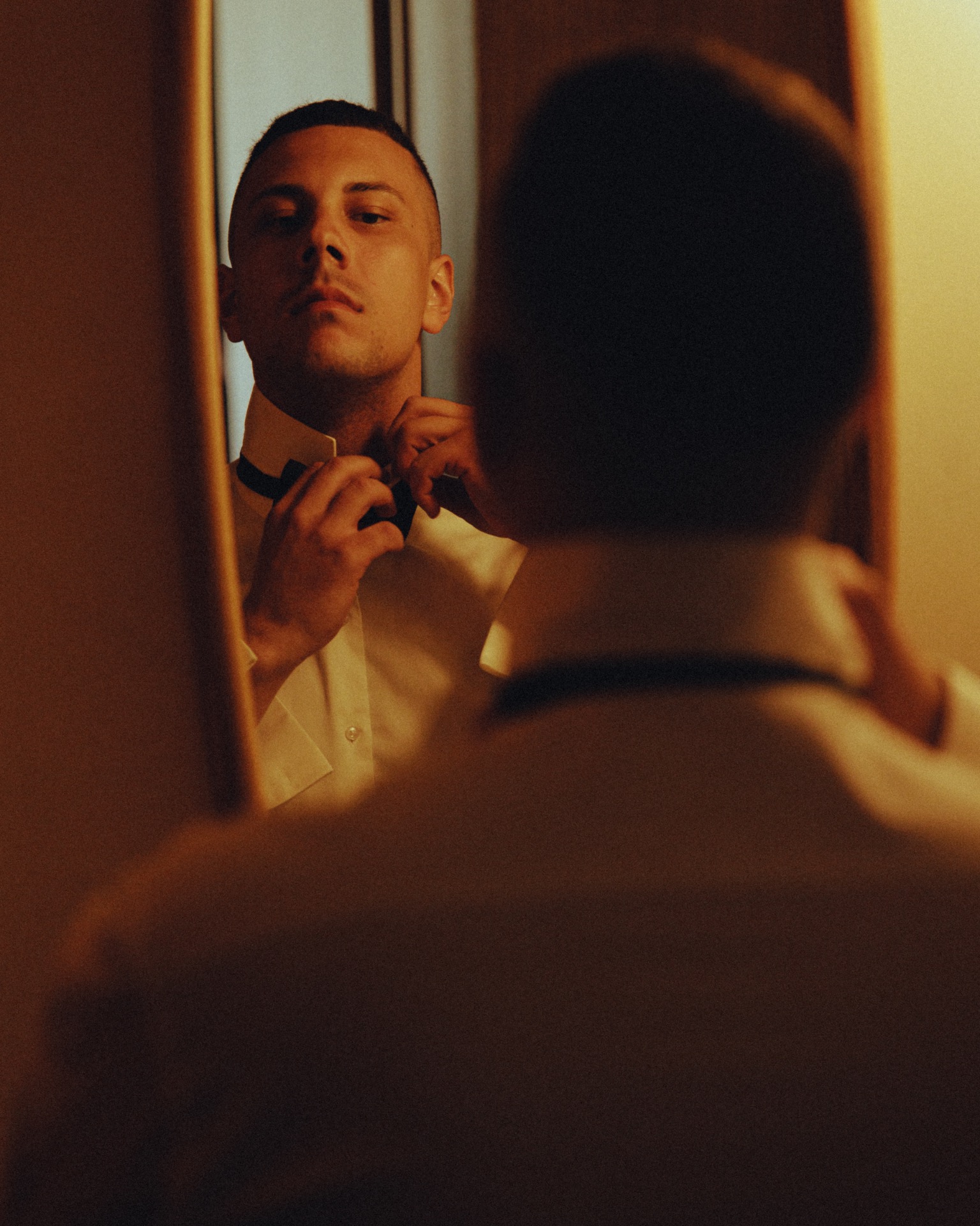Образы получились эстетичными и лаконичными. Юра с самого начала хотел чёрный классический смокинг, с третьей попытки мы нашли идеальный вариант.