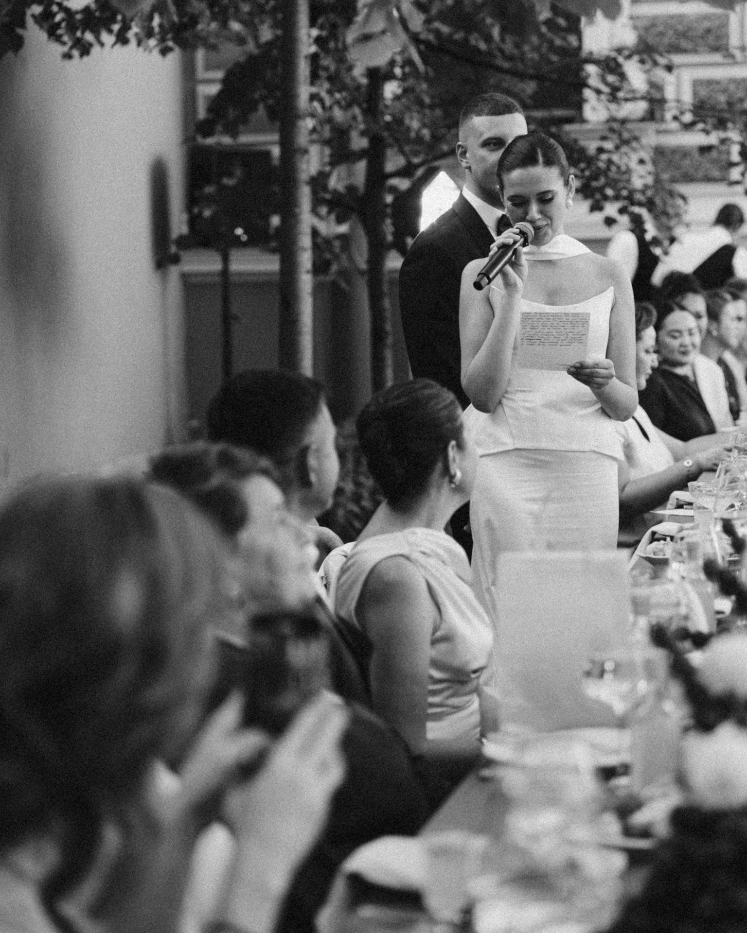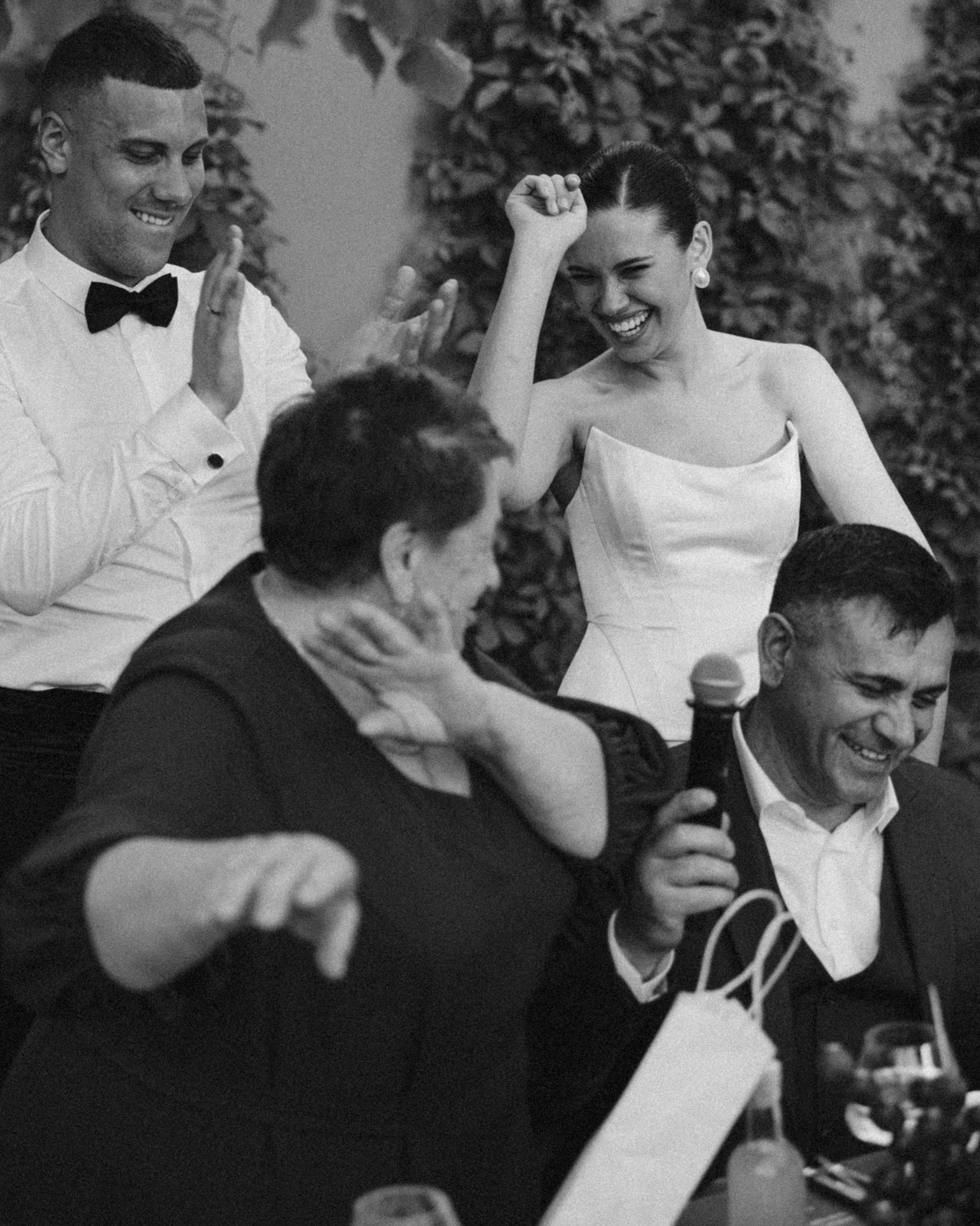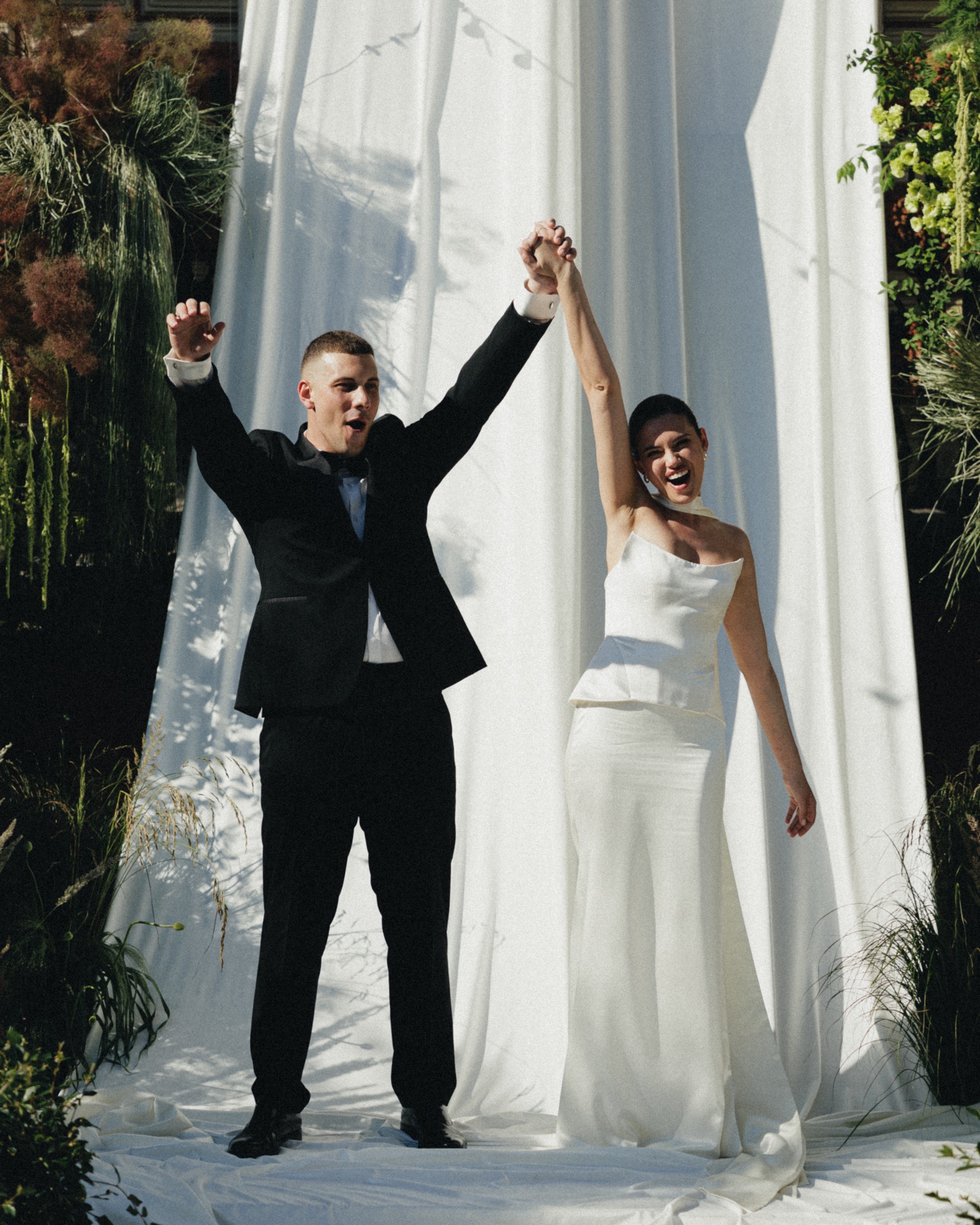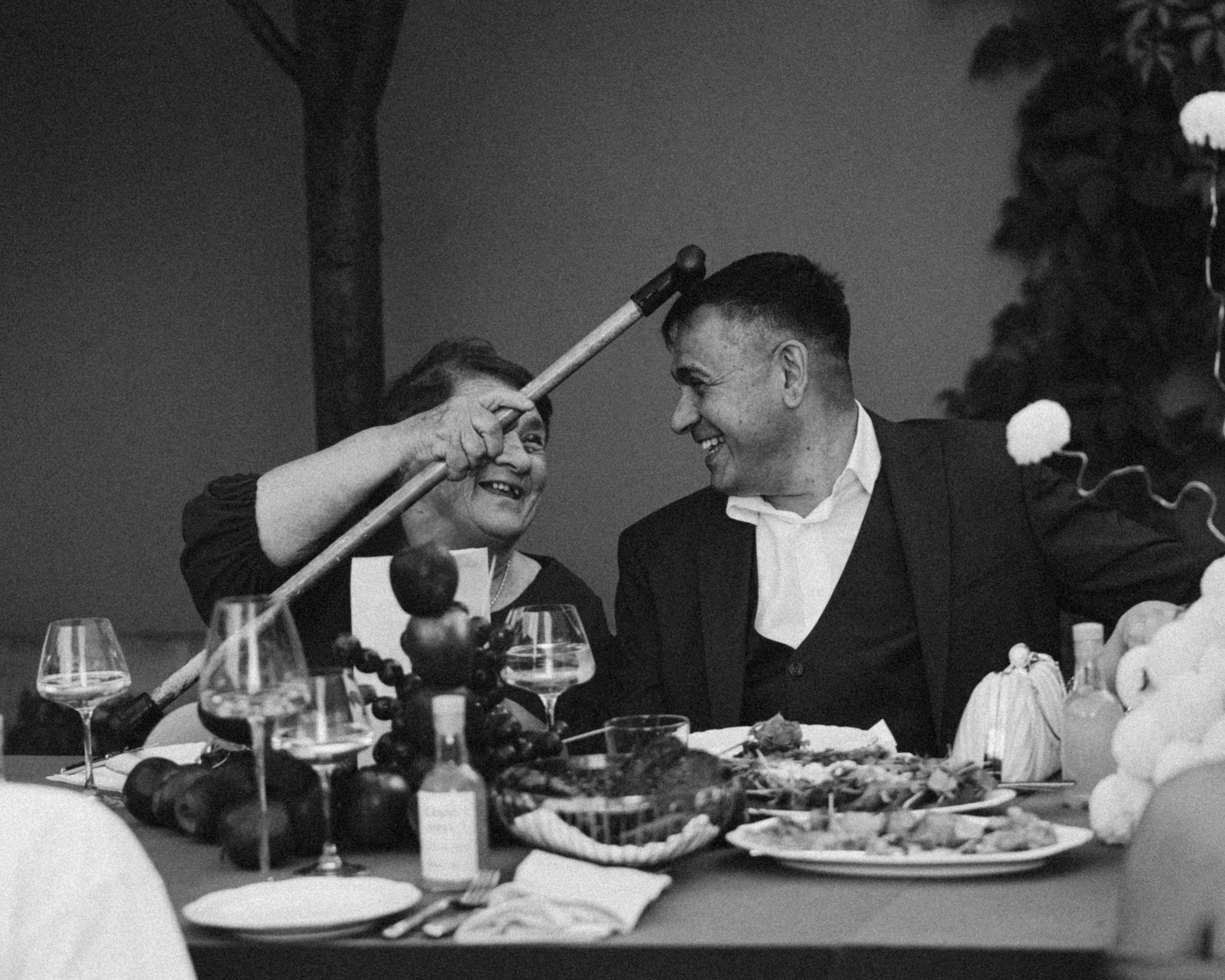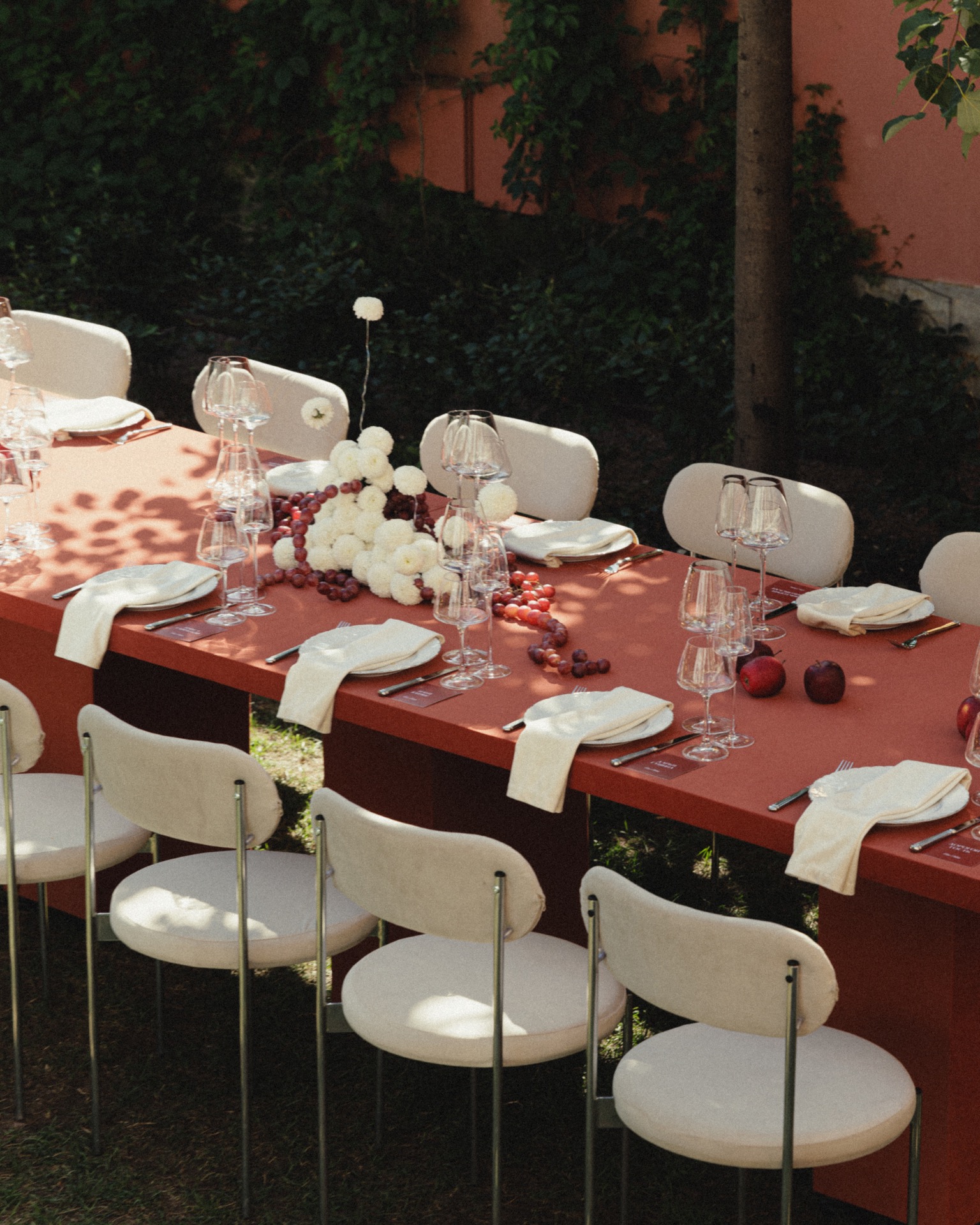 Наша свадьба получилась невероятно эстетичной, именно об этом мы мечтали. Мы решили отказаться от первого танца и вместо него вместе исполнили песню Анны Герман «Мы эхо». Вторая половина вечера была по-настоящему зажигательной: мы сняли обувь и танцевали прямо в фонтане с яблоками, весело плескаясь в воде.