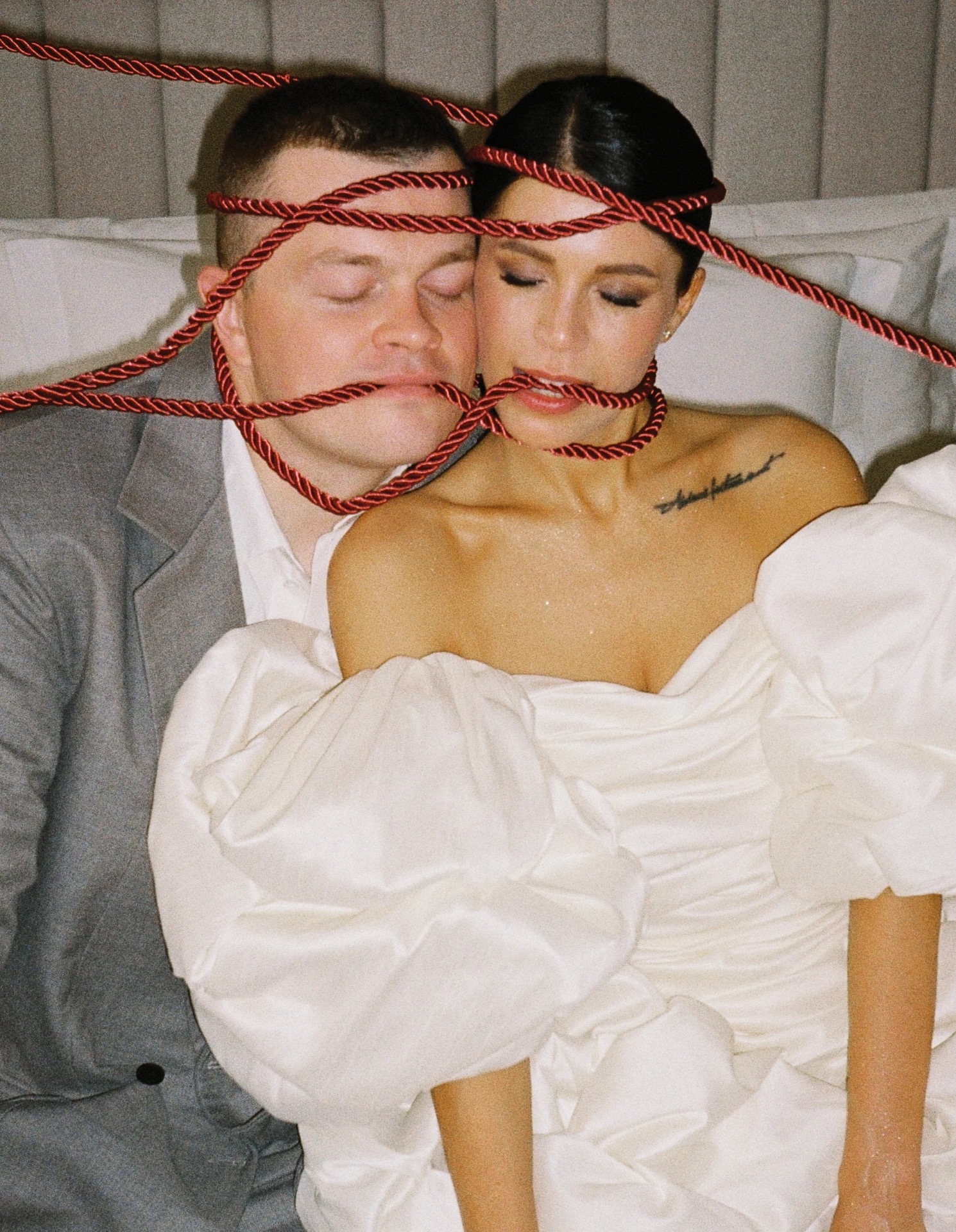 Когда девочки погрузились в нашу историю, они придумали идею, которая сразу запала в самое сердечко. Так появилась концепция «Связаны». Эта история двух совершенно разных людей, так крепко любящих друг друга, словно они соединены невидимой красной нитью судьбы.