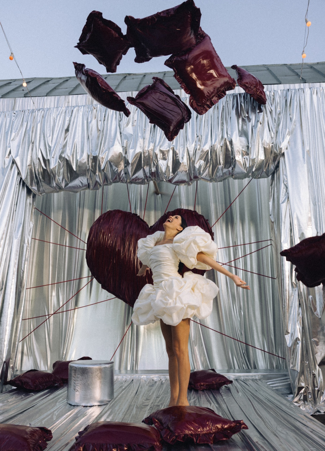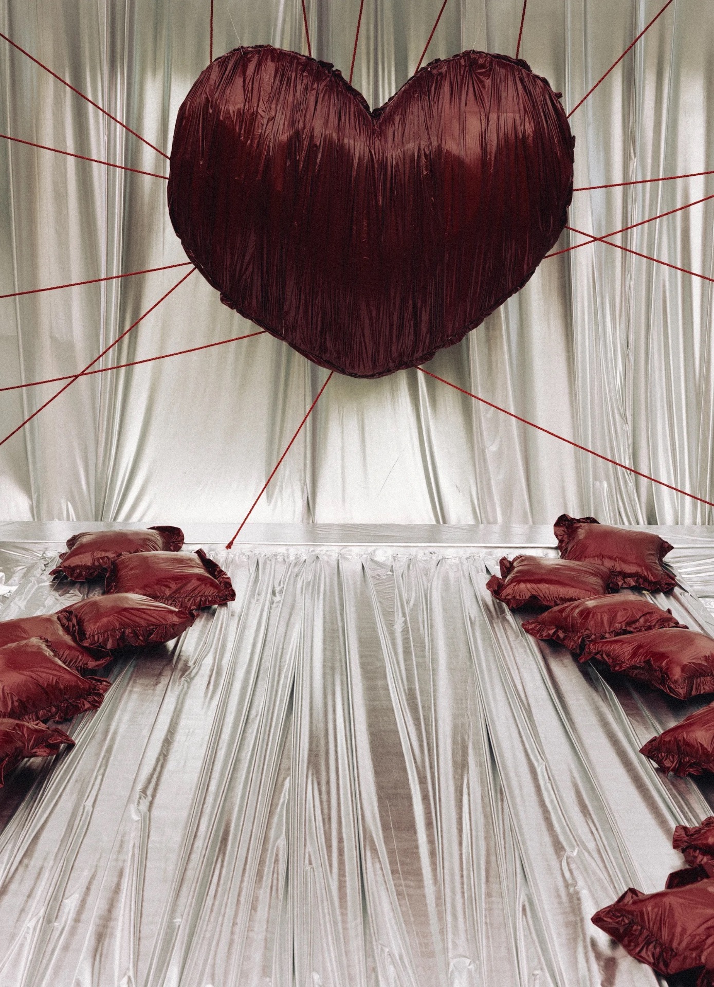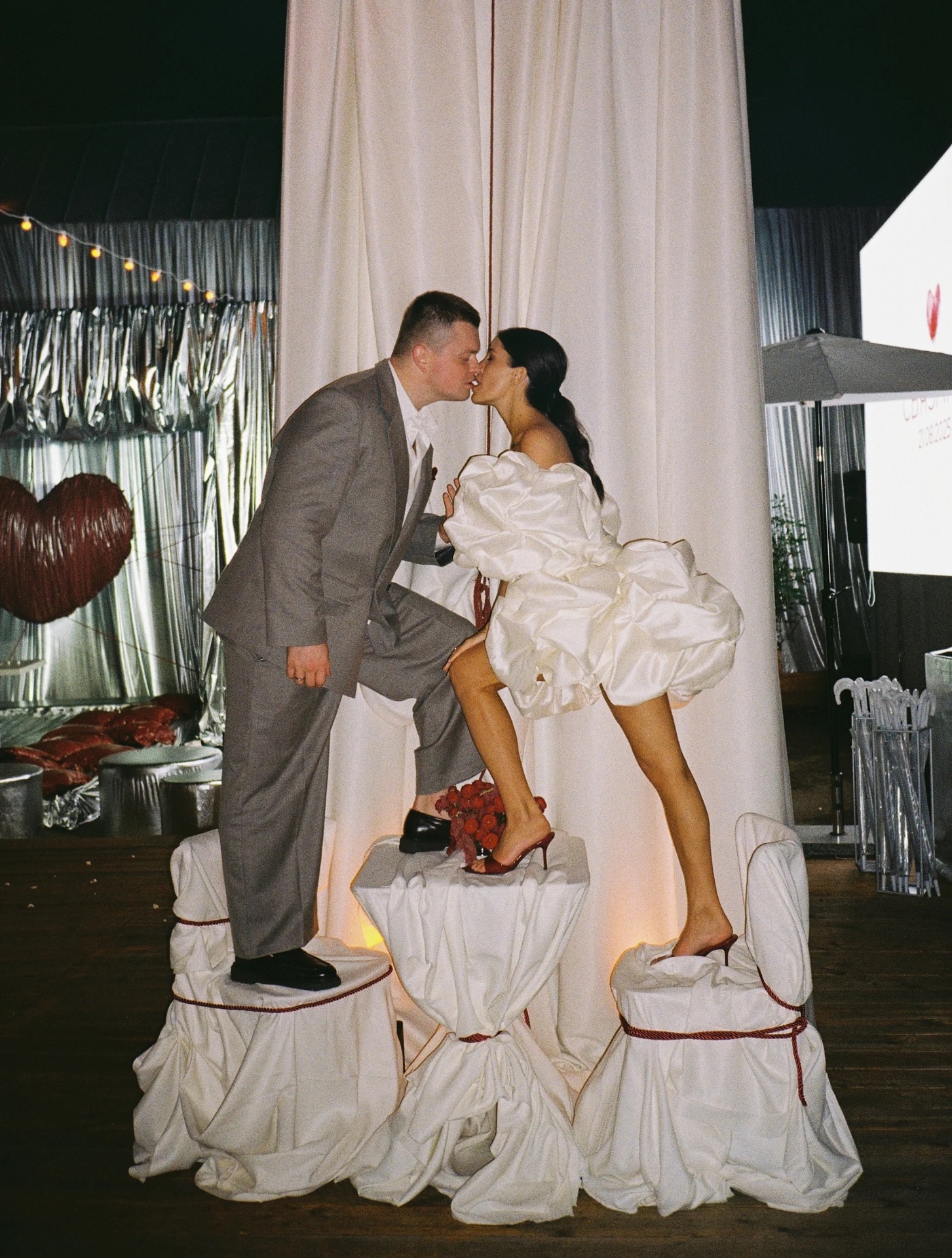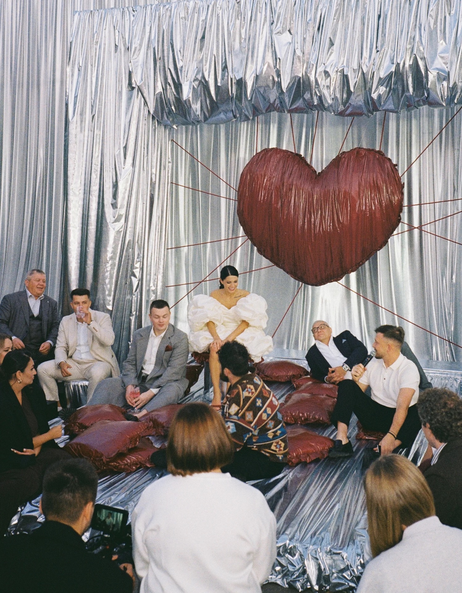 Когда мы приехали на площадку, я просто обомлела. Наш декоратор Маша сотворила нечто невероятное: цвета, текстуры, свет — всё сложилось в идеальную картинку. В зоне церемонии на нитях висело огромное сердце, а воздух был буквально пропитан музыкой.