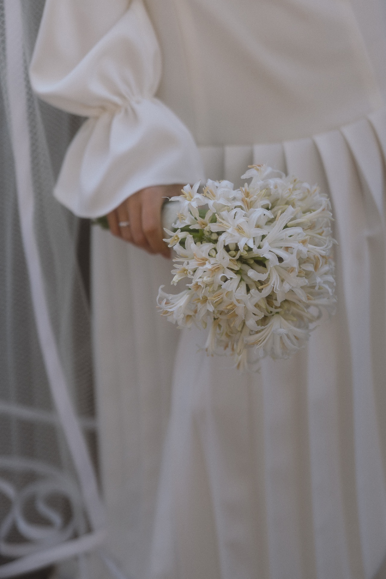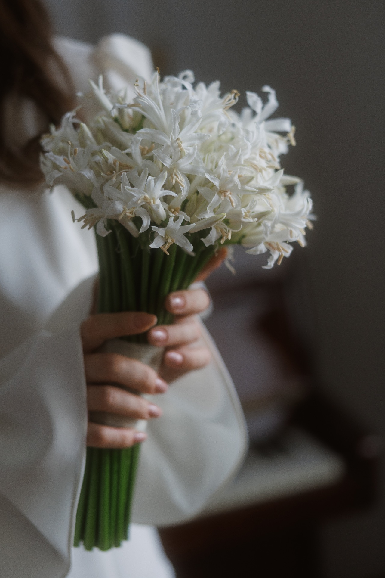 Что касается цветов и букета невесты, я почти с самого начала знала, что хочу монобукет из нерине — они мне очень нравились и идеально подходили под наше настроение.