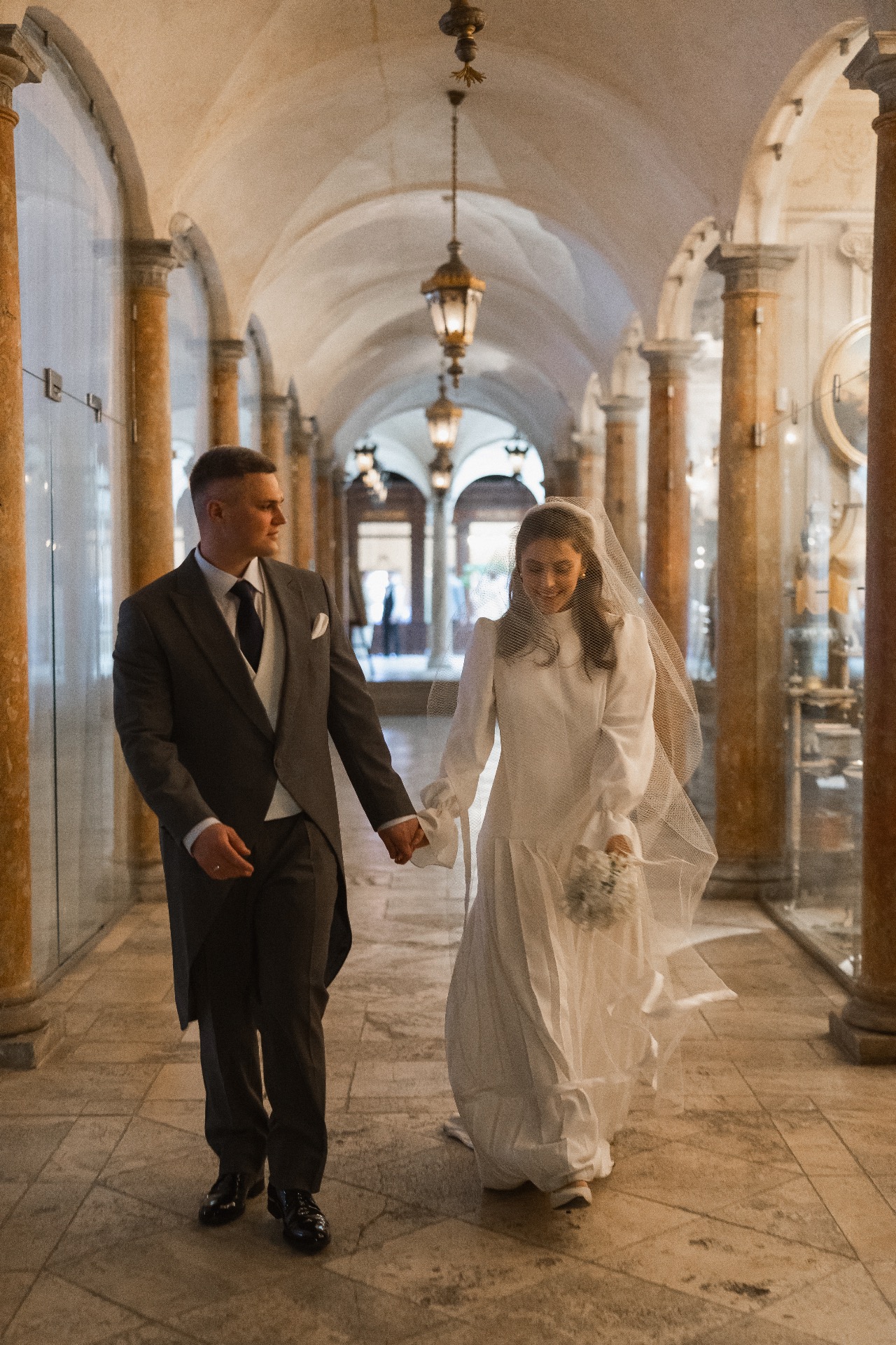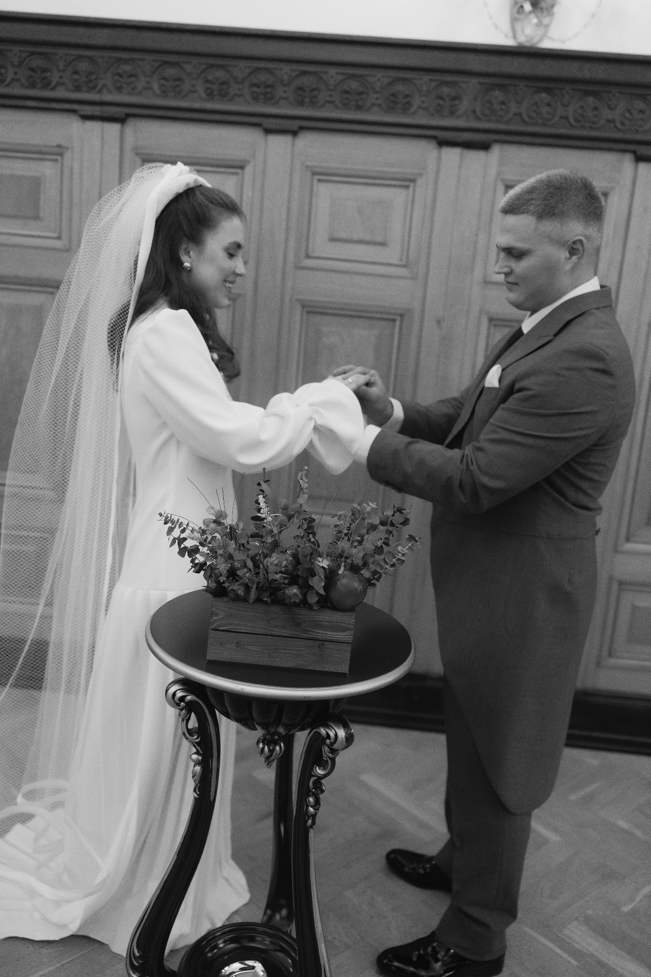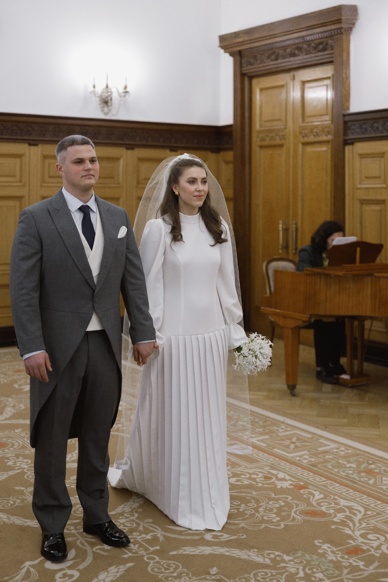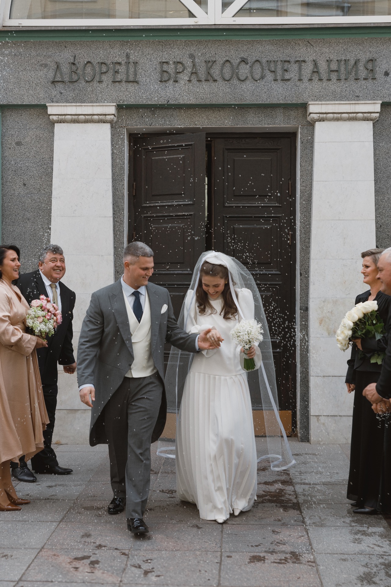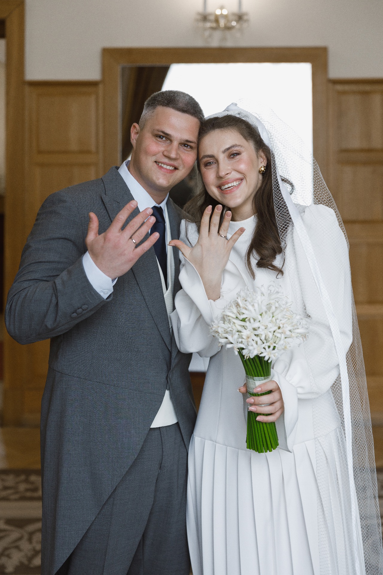 Далее мы поехали в ЗАГС. Стоя перед дверью в зал регистрации, мы оба затаили дыхание и замолчали. Был и страх, и трепет, и нежность, и благодарность, и, конечно, любовь — безумный и неповторимый микс. Слёзы на глазах появились почти сразу, а стоило повернуть голову к гостям, как я увидела, что все плачут слезами радости за наше счастье. Именно это и был тот самый волшебный момент, который невозможно передать словами — его можно только прочувствовать.