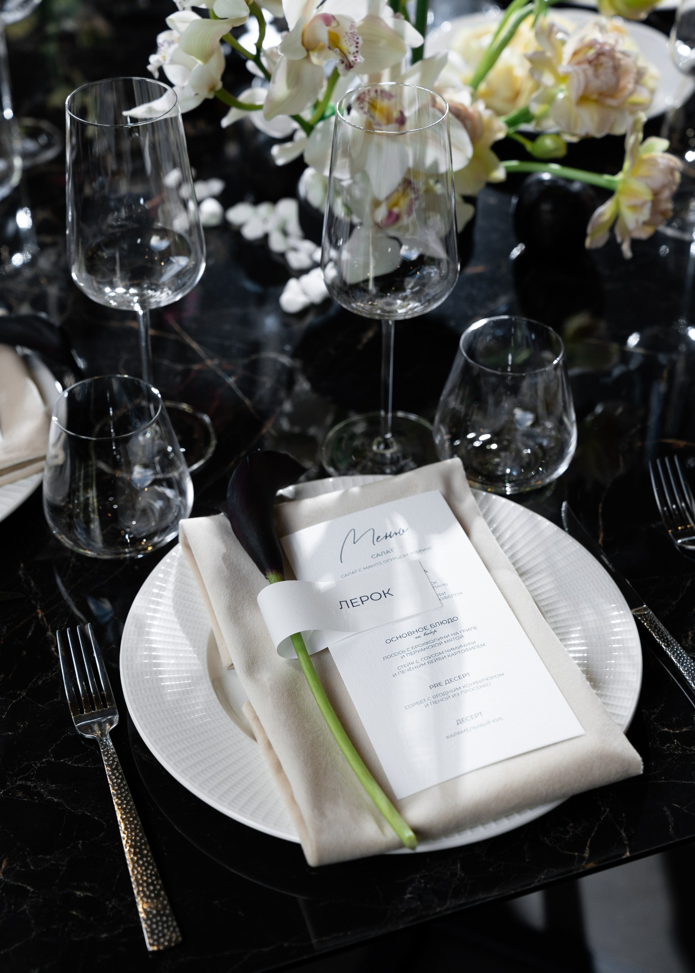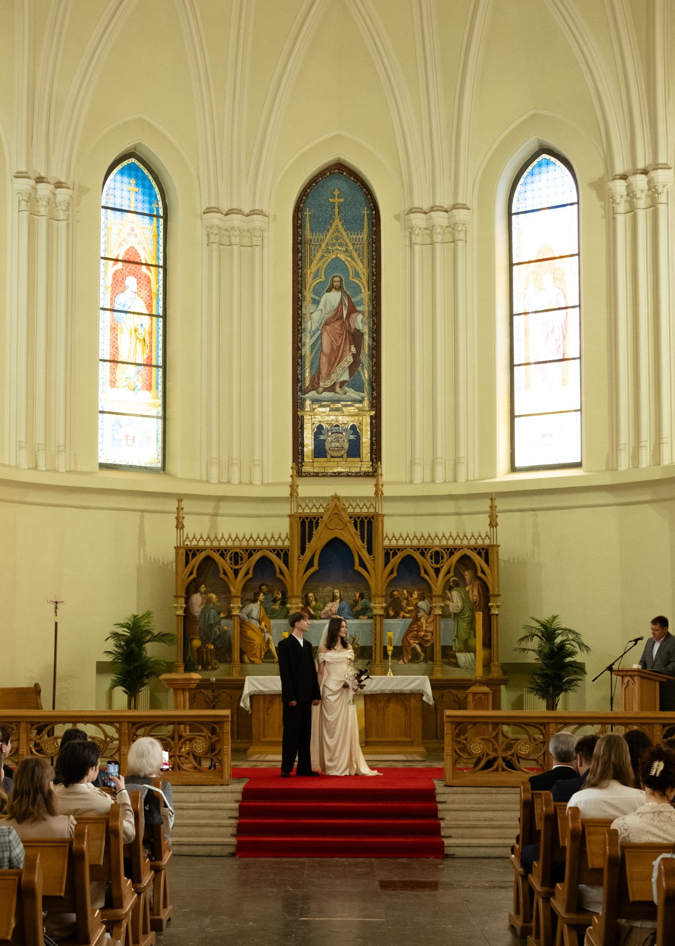 В день празднования утро началось с венчания в лютеранском соборе святых Петра и Павла, мы смогли разделить этот важный момент с близкими. А вечером пригласили только самых родных друзей. Для нас было важно лично поблагодарить тех, кто внес вклад в нашу историю и поддерживал нас на пути. На ужин мы пригласили 20 человек. Мы общались, смеялись, пели у рояля, танцевали под любимый плейлист.