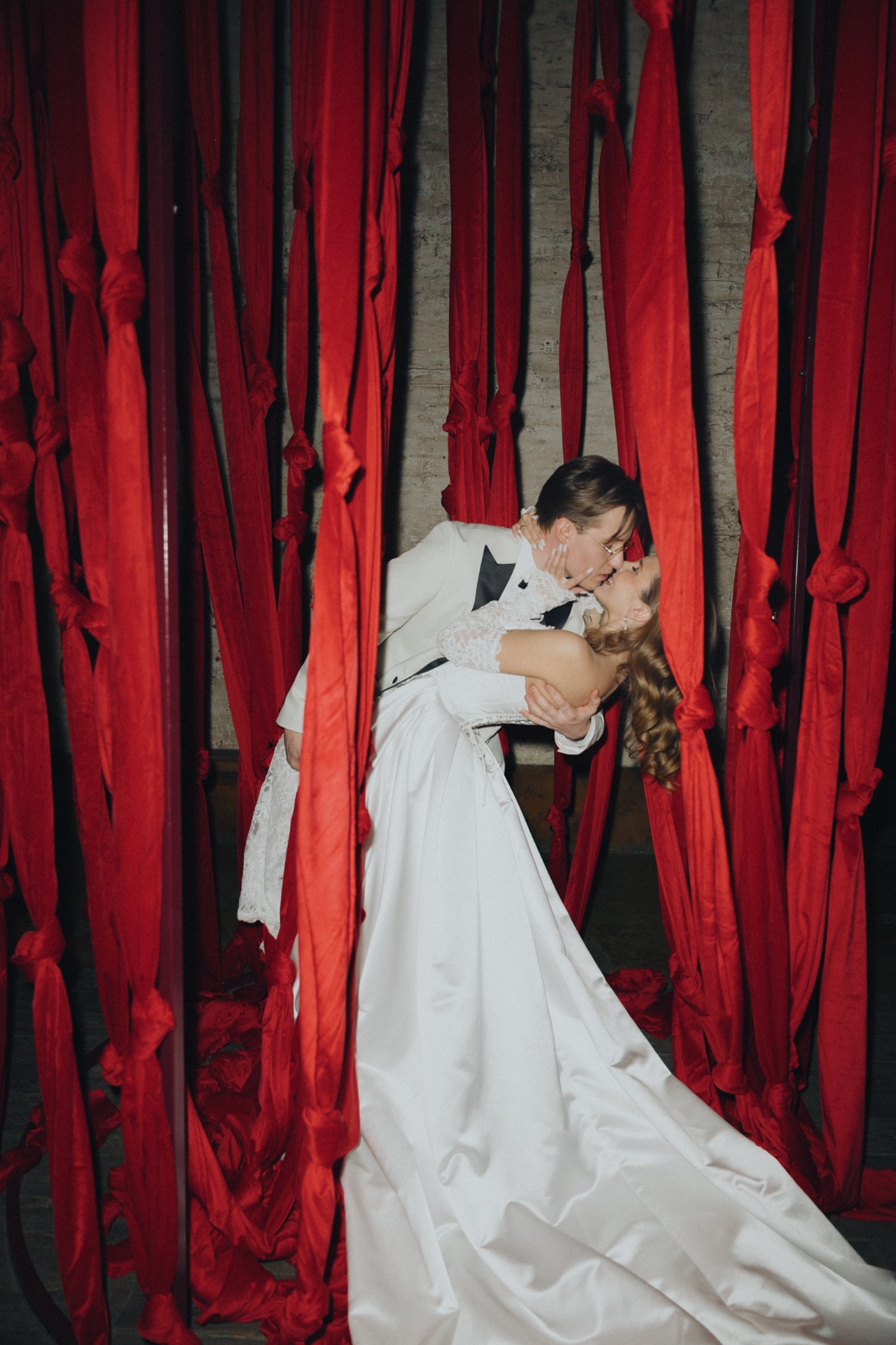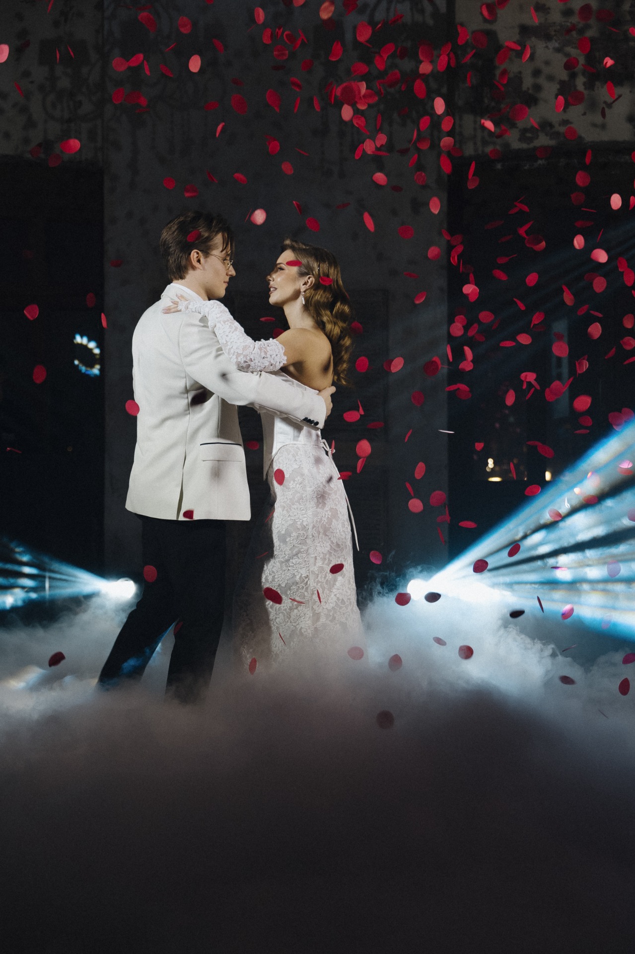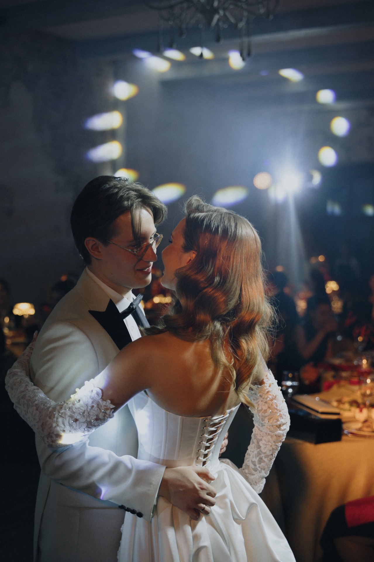 При входе каждый гость приносил ключ, полученный вместе с приглашением. Он открывал ячейку с двумя карнавальными масками для пары. В масках гости проходили на церемонию, чтобы скрыть эмоции во время трогательных моментов.