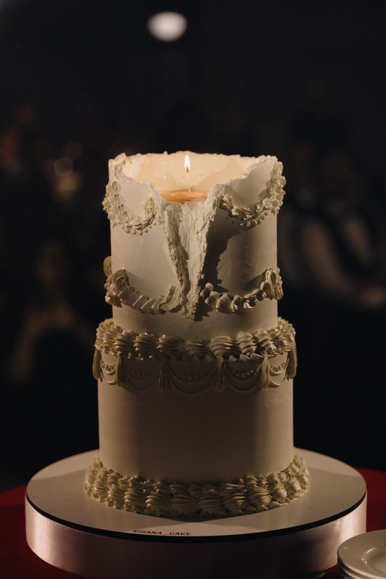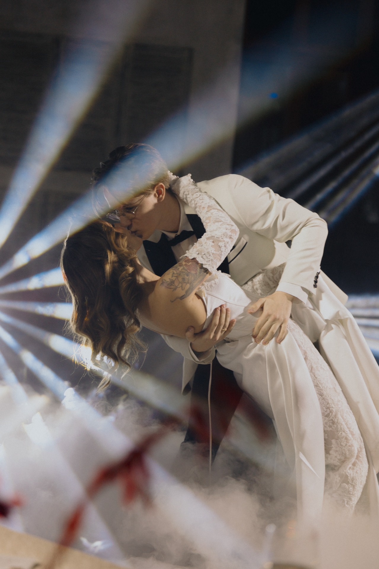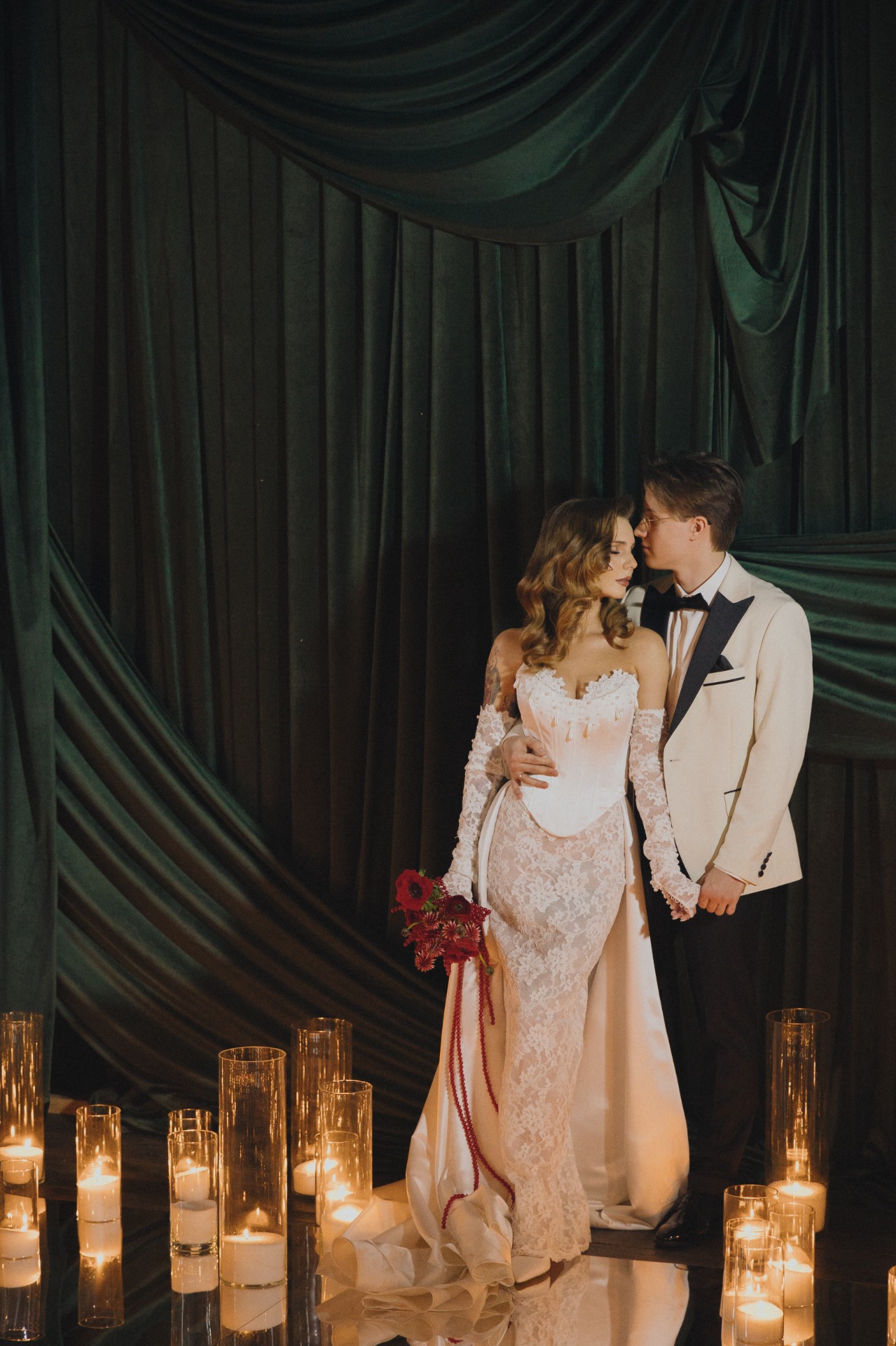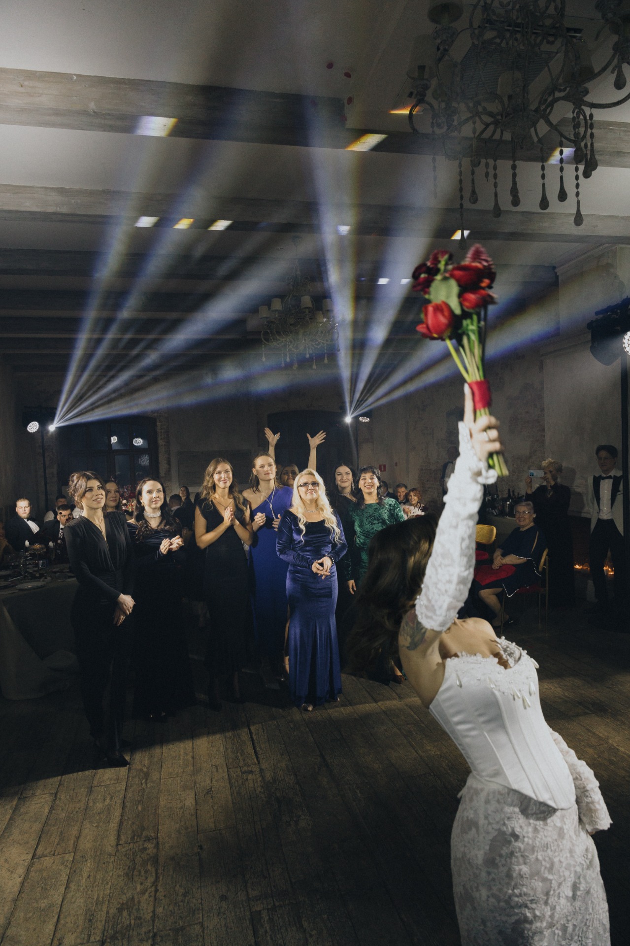 При входе каждый гость приносил ключ, полученный вместе с приглашением. Он открывал ячейку с двумя карнавальными масками для пары. В масках гости проходили на церемонию, чтобы скрыть эмоции во время трогательных моментов.
