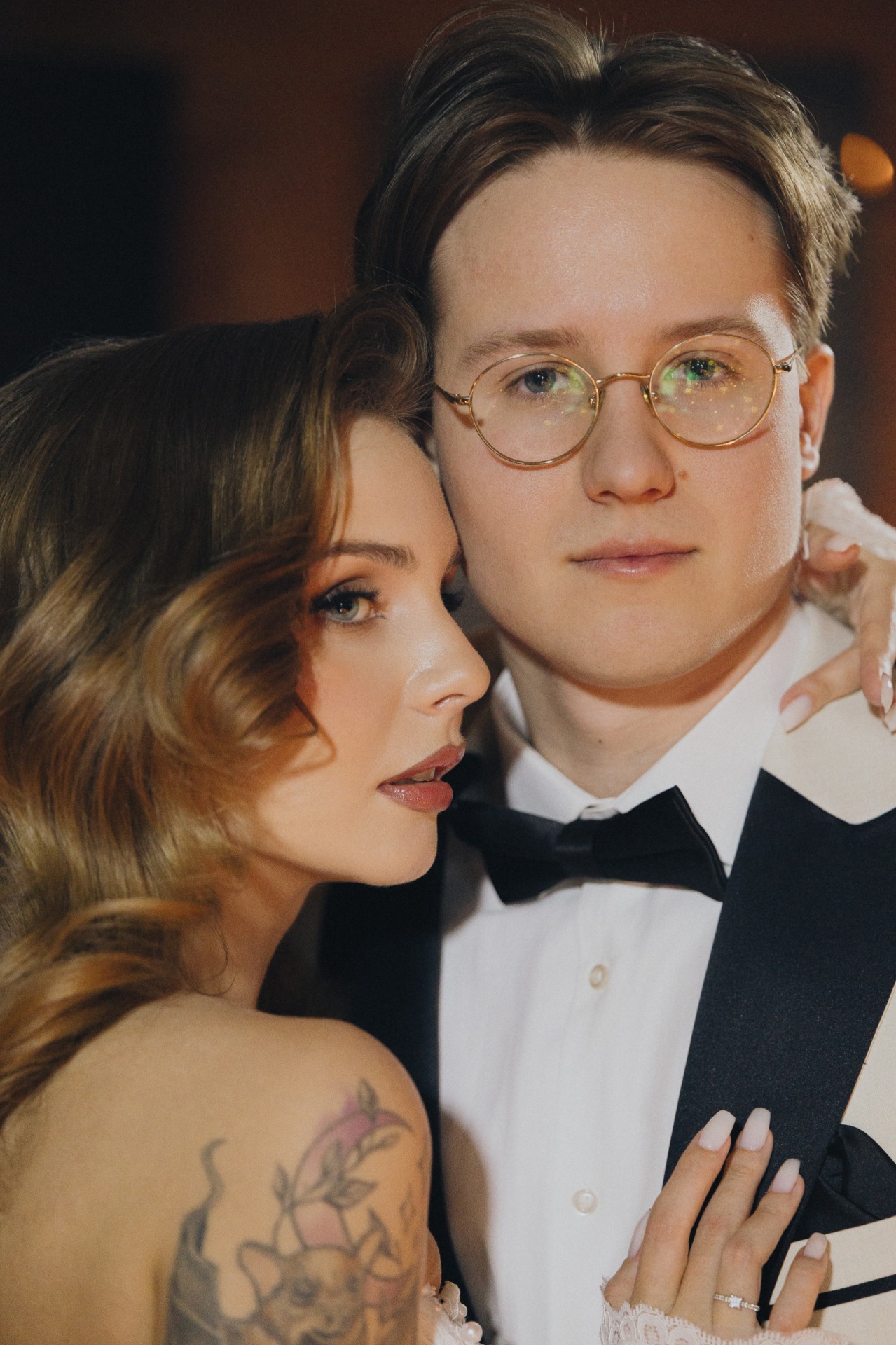 Георгий остановился на бело-чёрном смокинге с белым пиджаком, что создавало контрастный и элегантный образ пары.