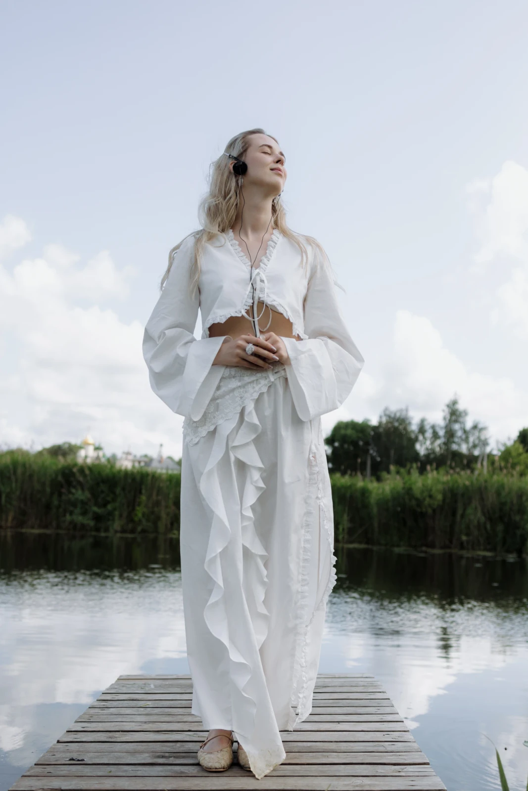 Утренние образы получили вдохновение в эстетике природы: лёгкие натуральные ткани, кружево, ветер в волосах, наушники. И мы — долгое эхо друг друга.