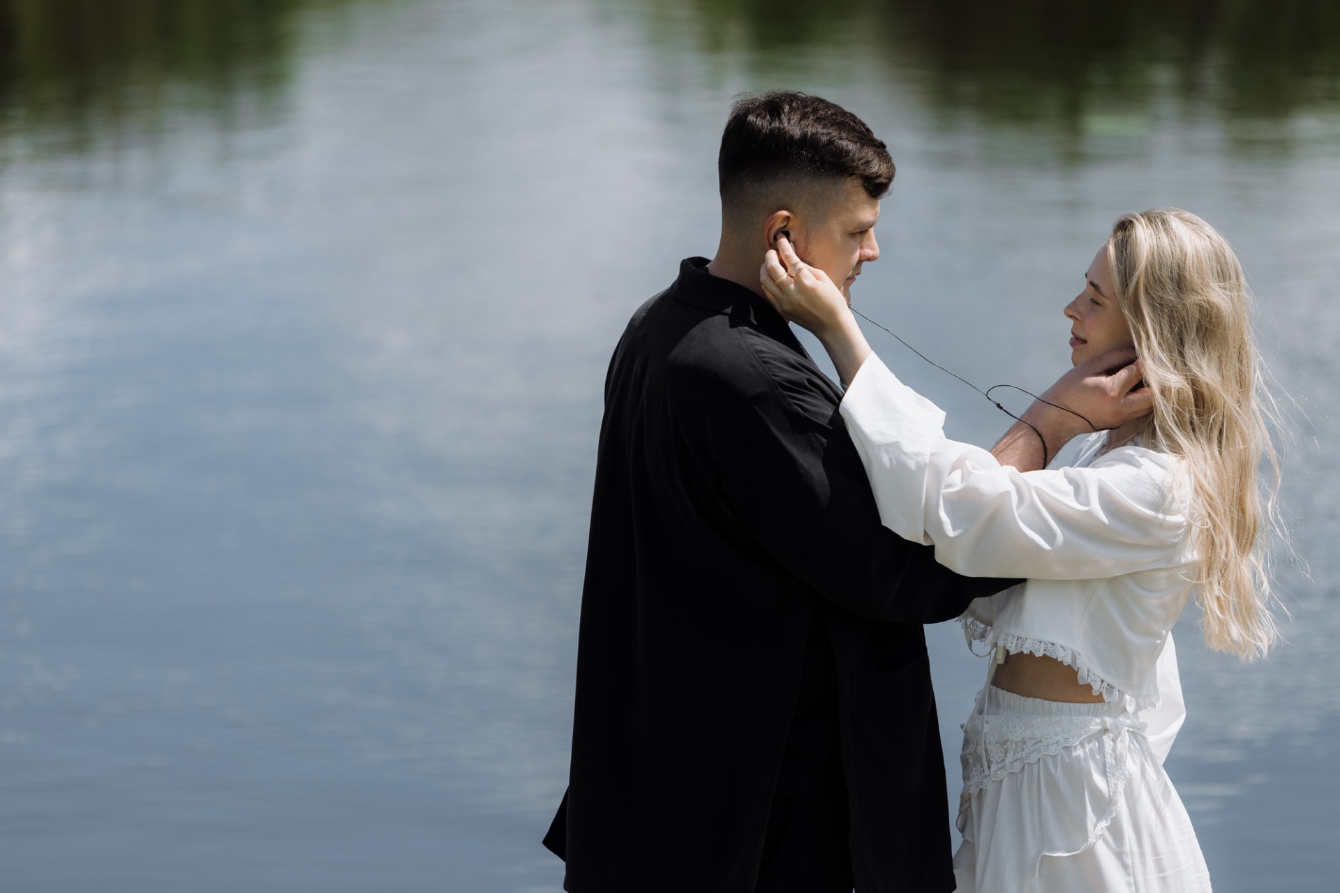 После наших сборов к нам приехала съёмочная команда, и началась утренняя фотосессия, где организаторы внедрили небольшую деталь — наушники как символ звука и отражение концепции.