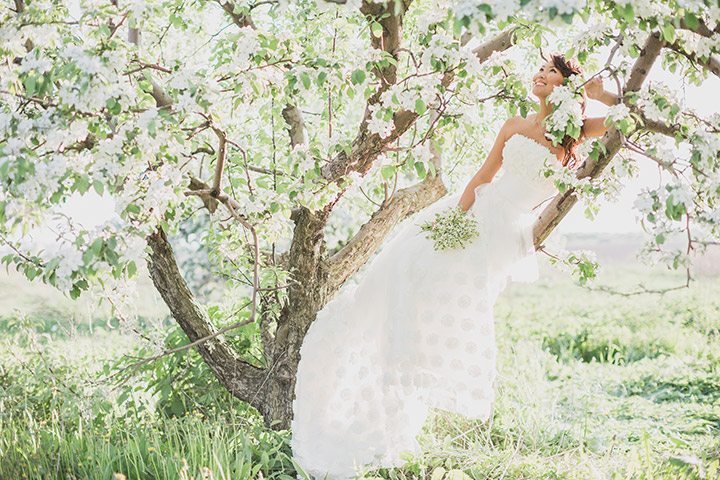 Идеально сидящее, на первый взгляд, абсолютно простое платье, на самом деле является результатом большого труда. В этом и заключается его ценность: «дорогое изнутри». Тяга ко всему натуральному сказалась и на невестах, которые уделяют все большее внимание именно натуральным тканям. Различные виды шелка: шифон, органза, дикий шелк шатунг- все это дизайнеры используют в своих свадебных коллекциях 2014. Натуральные ткани, несомненно облегчают невесте задачу в важный день: они легче, в них легко дышится и они не электризуются при ходьбе.