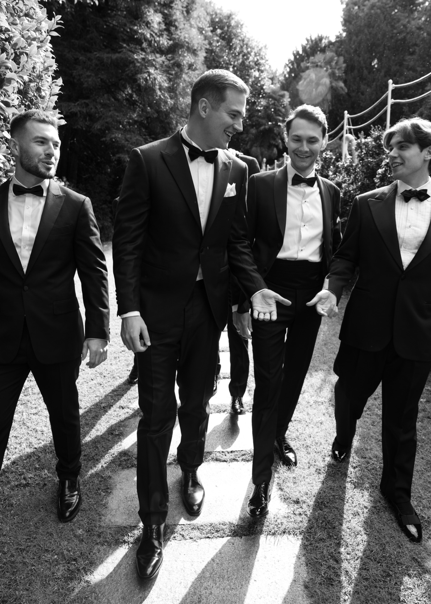 Моё утро невесты прошло в компании подруг, а у Серёжи в это время был свой стильный момент: друзья, костюмы, сигары и разговоры на террасе с видом на озеро.