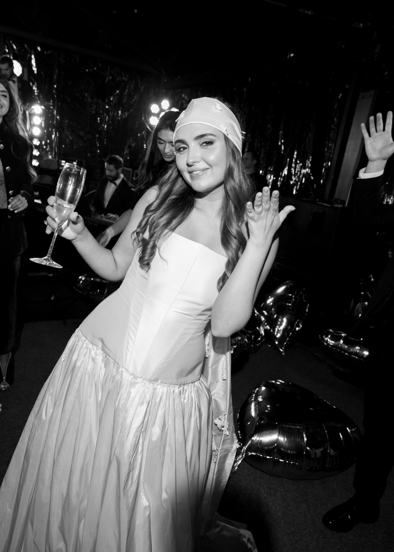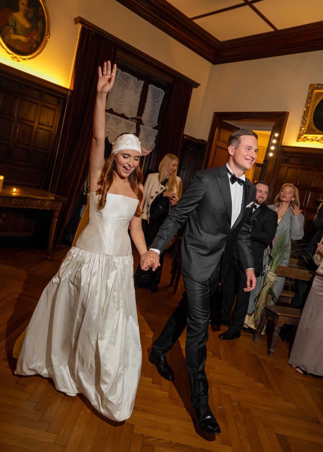 Мой образ создавала дизайнер Татьяна Кочнова. Платье было эксклюзивным, созданным специально под нашу концепцию. Лаконичное, элегантное, с современным акцентом. Вместо фаты я выбрала бандану, которая трансформировалась в топ и стала частью моего утреннего образа. Это решение идеально отражало дух нашего дня: сочетание стиля, комфорта и свободы.