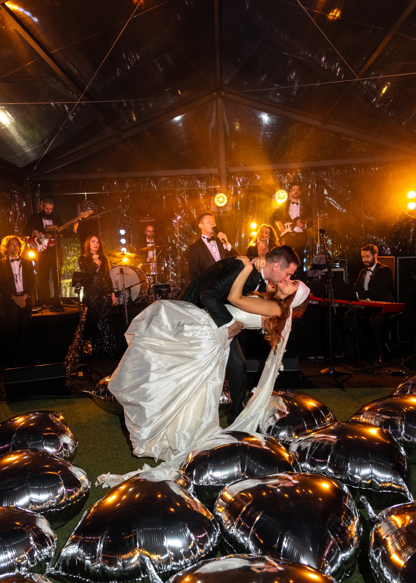 Еще одну фишку мы добавили в наш первый танец. Во время него вместо привычных спецэффектов вроде тяжёлого дыма или конфетти на нас с потолка посыпались серебряные шары-сердечки. Это выглядело как дождь из любви.