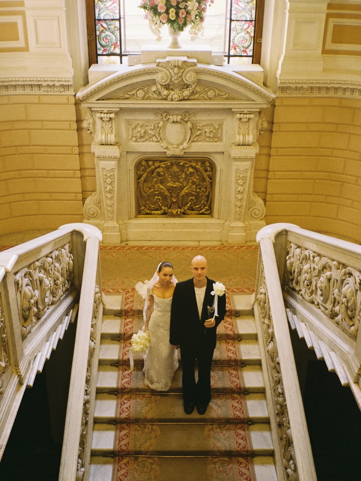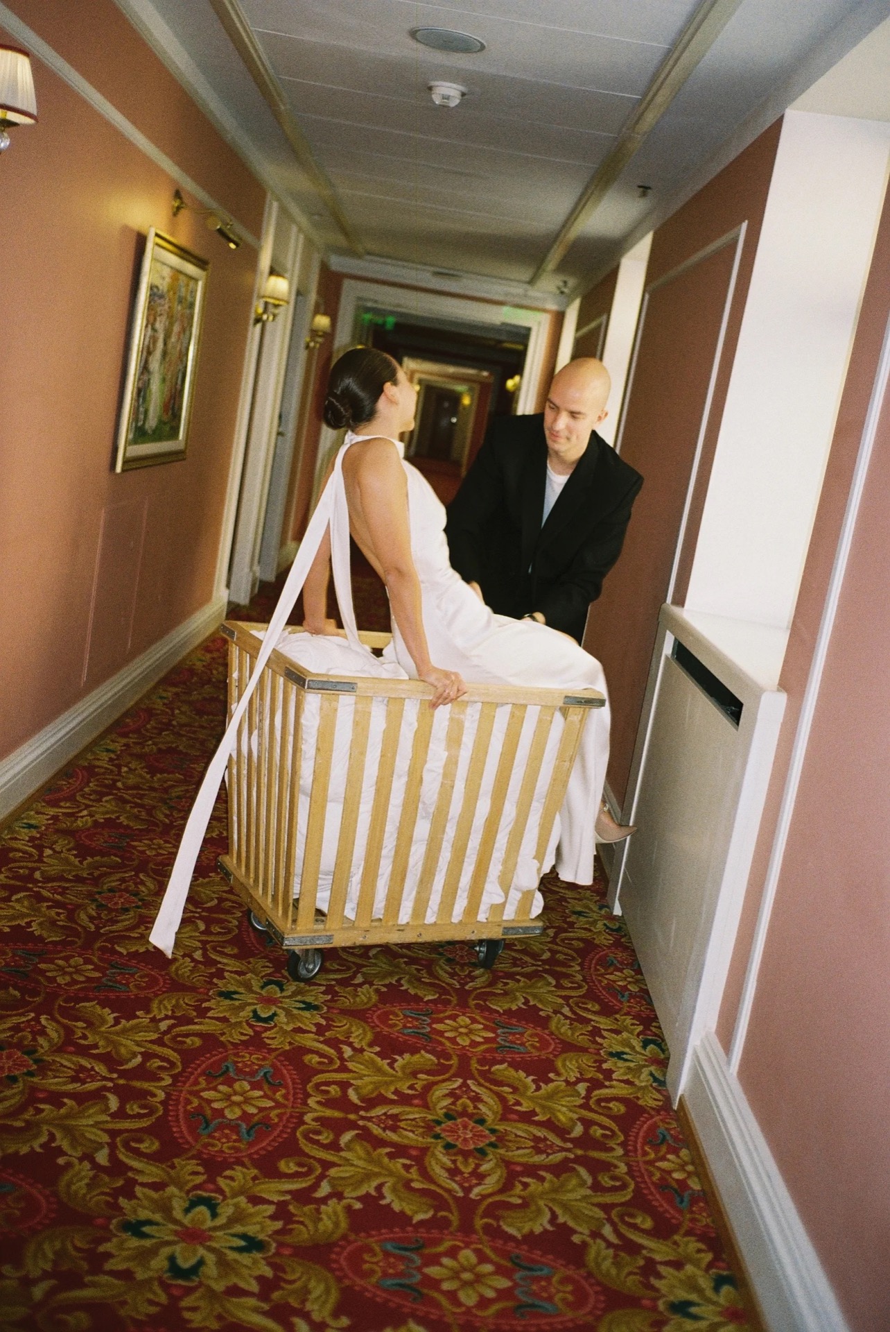 В середине дня гостей ждал сюрприз — катание на двухэтажном открытом автобусе с шампанским после ЗАГСа. На велкоме в особняке приглашённых ждали кастомные стикеры с отсылками к важным для нас вещам, таким как булочки с корицей, и бинго с вопросами про гостей, которое далее ведущий использовал как инструмент для общего знакомства.