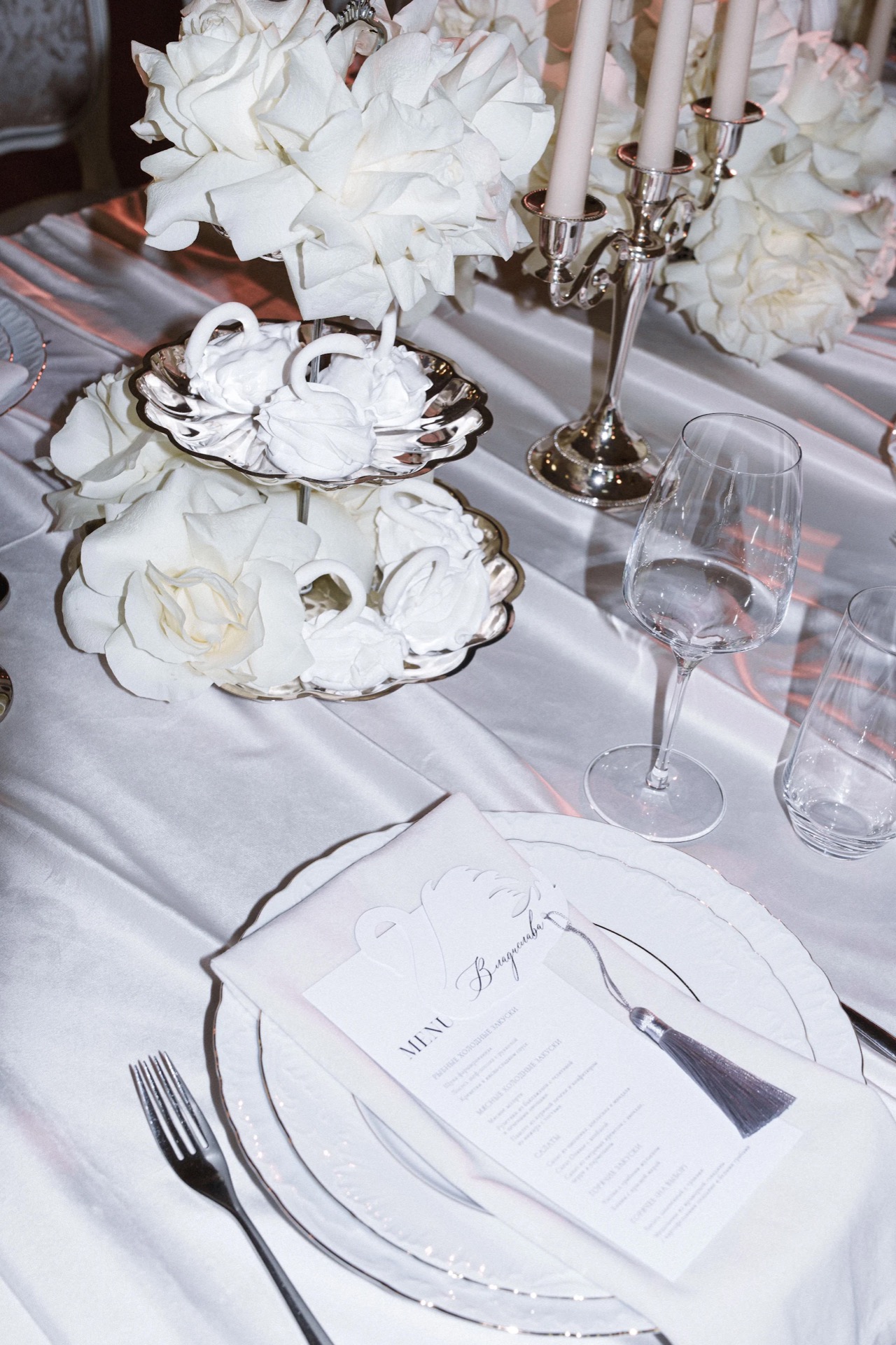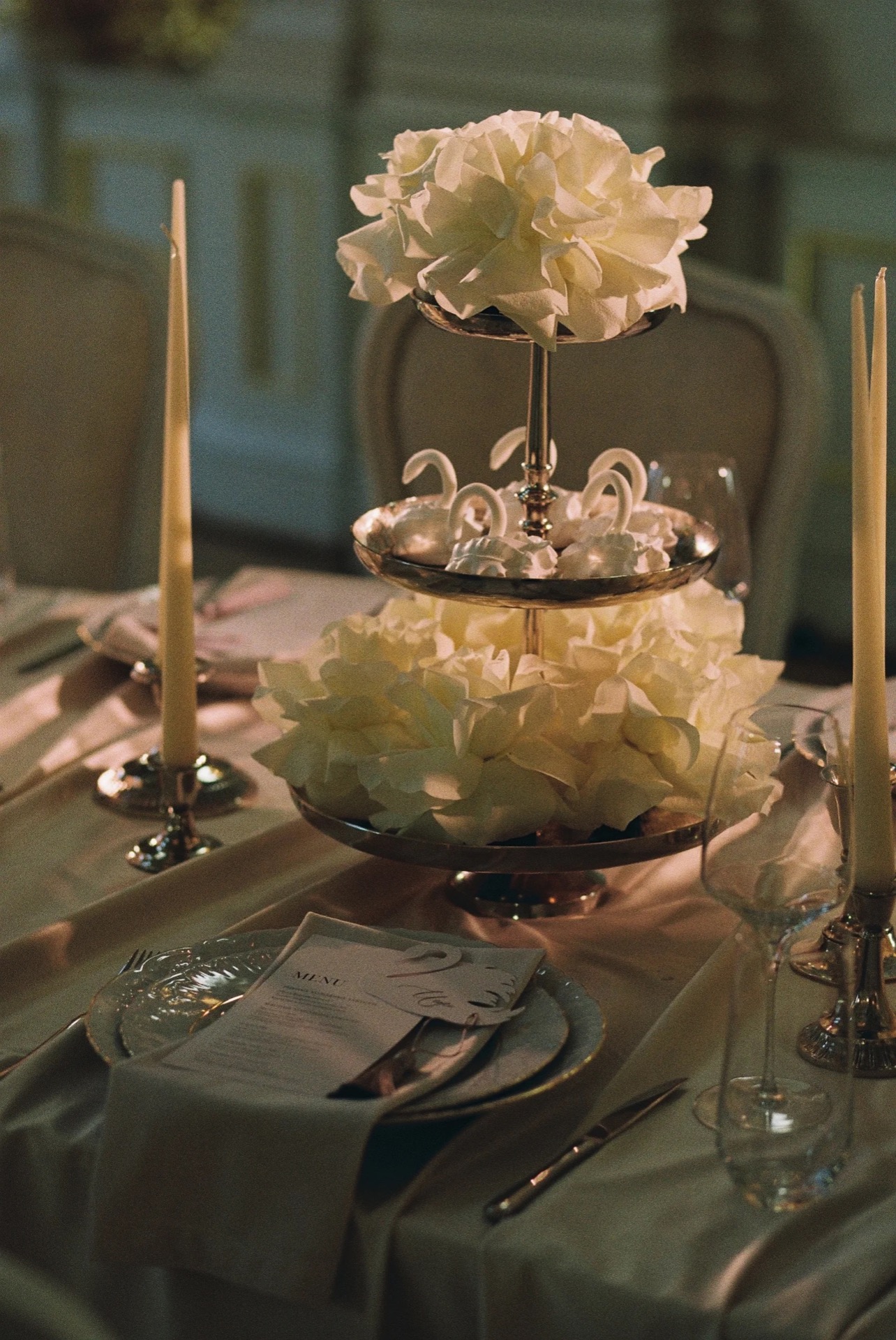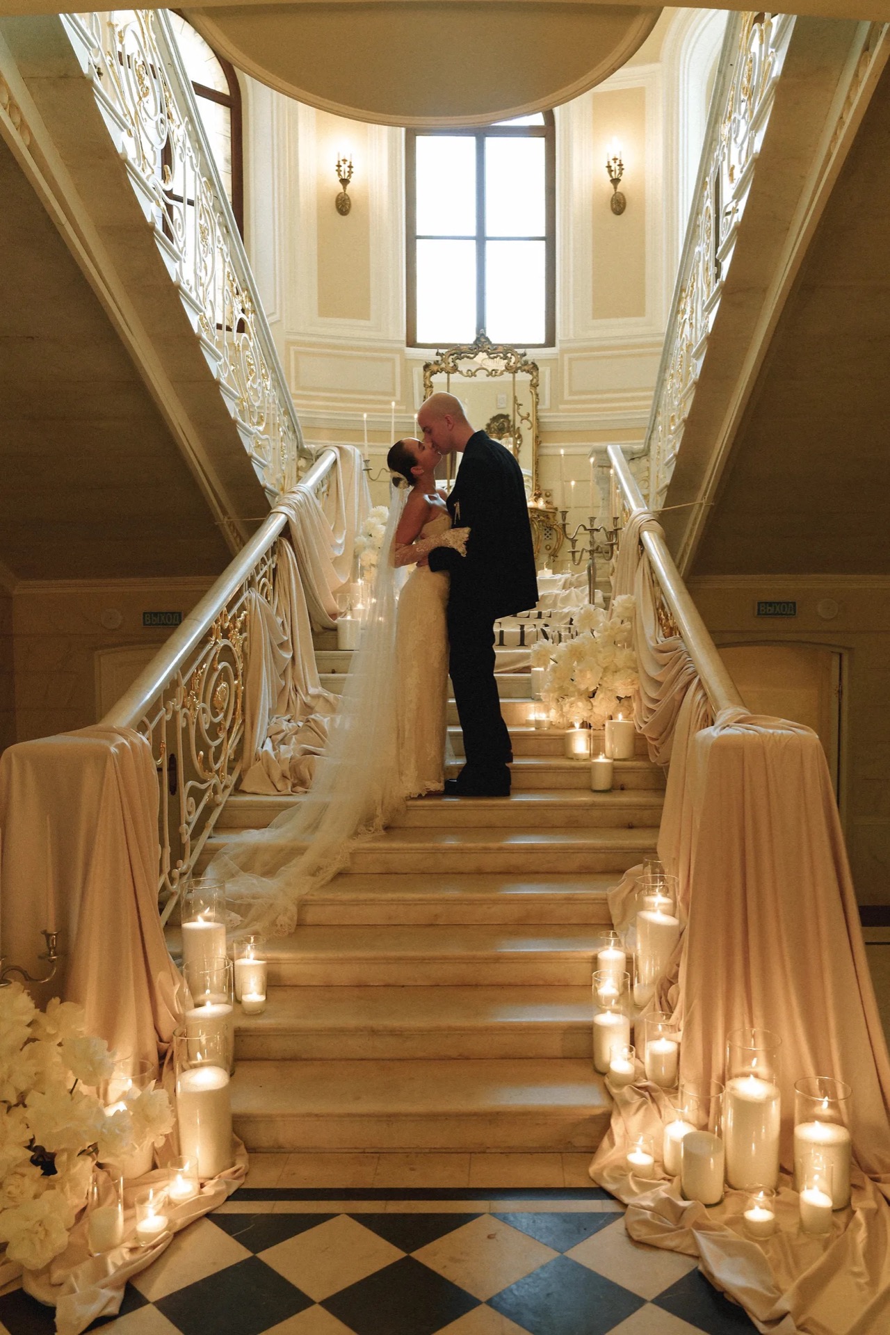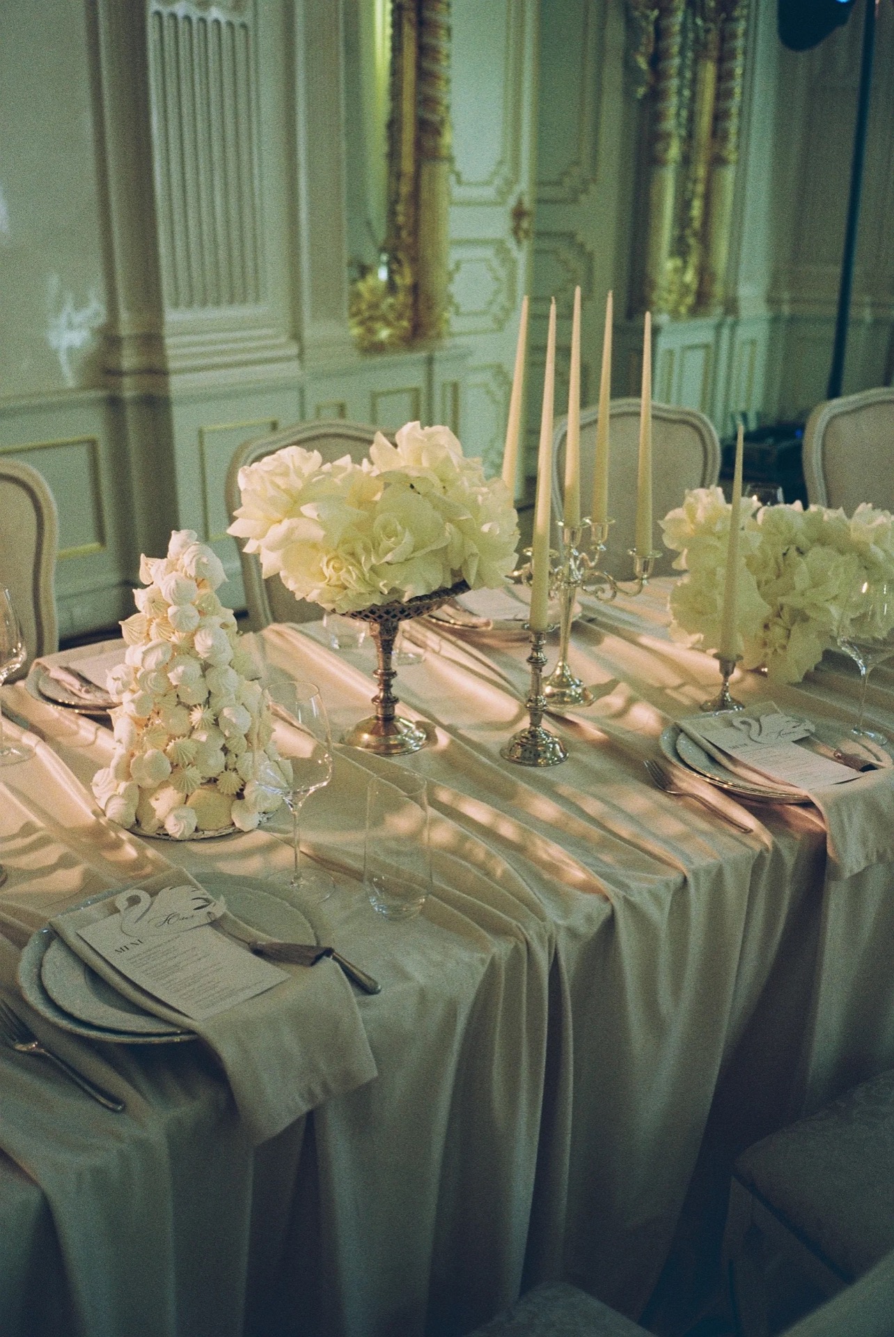 Мы хотели классическую свадьбу в старинном особняке, при свечах. В декоре мы видели для себя драпировки, винтажную посуду, французские розы и лебедей из безе. А на фоне — струнный квартет, играющий любимые современные композиции.