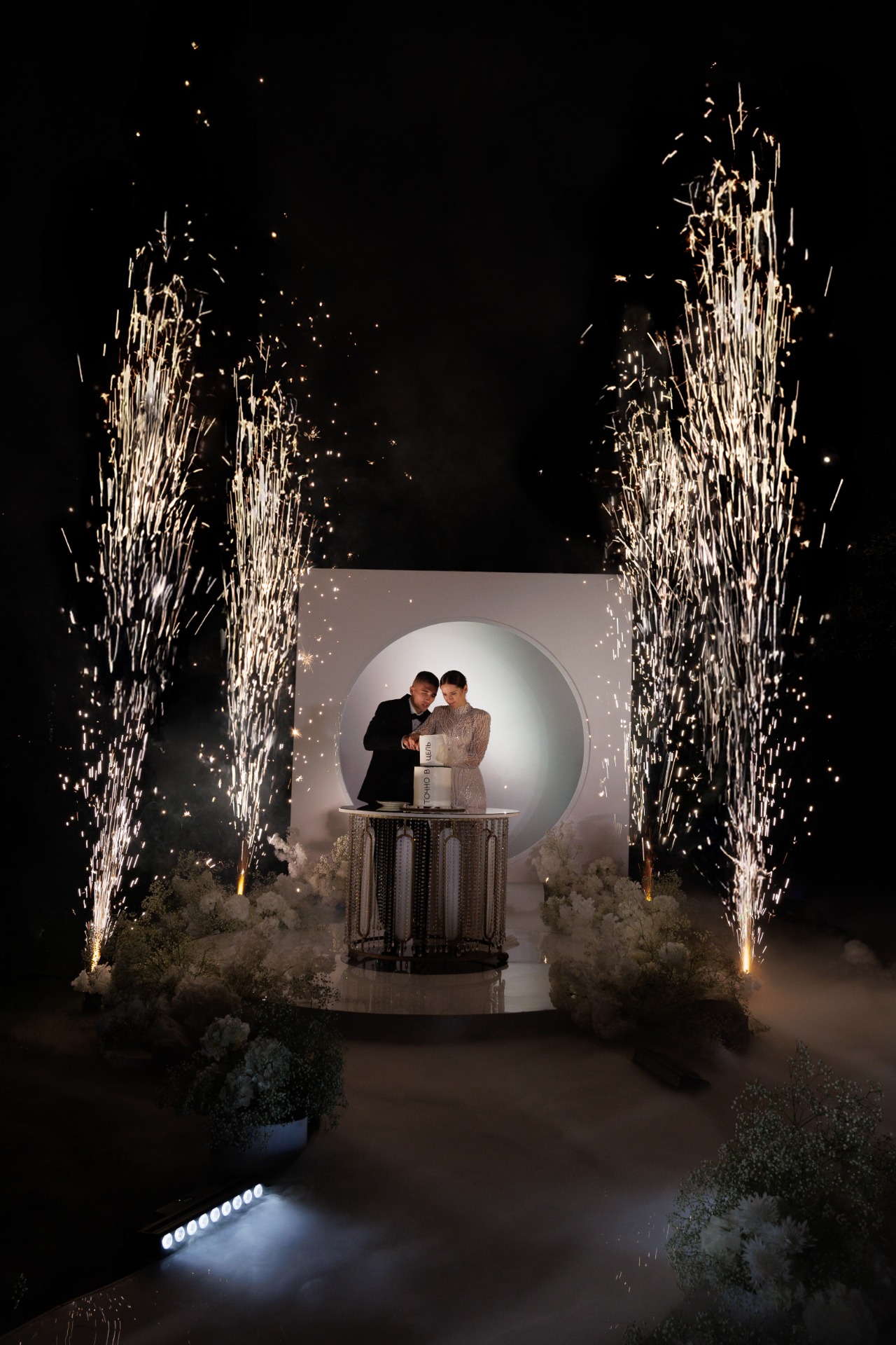 Вечер завершился по-настоящему красиво — наш путь к торту прошёл по светящейся извилистой дорожке, ведущей к той самой мишени. С каждым шагом она загоралась, символизируя наш путь друг к другу — точный, живой, наполненный светом и смыслом.