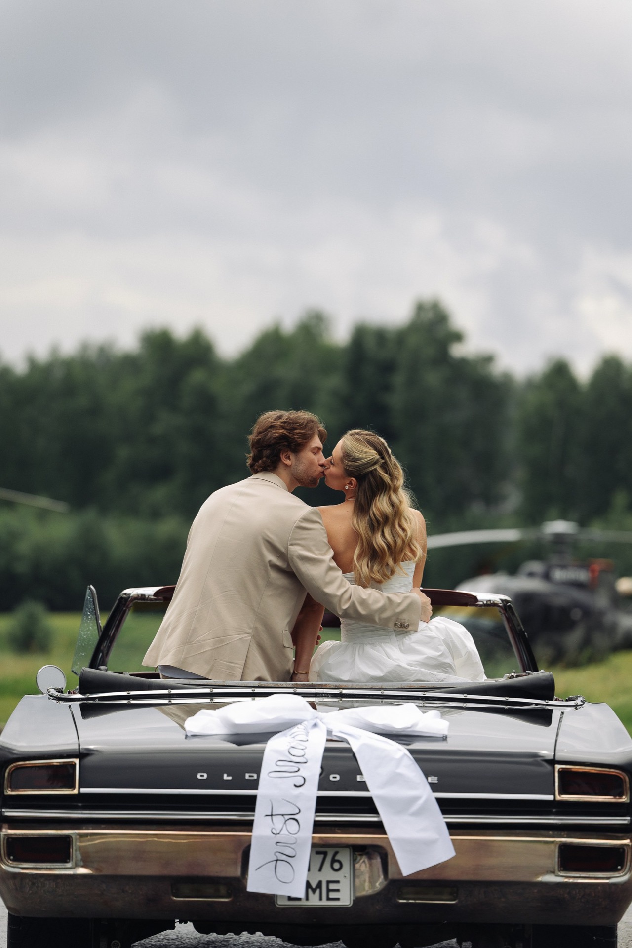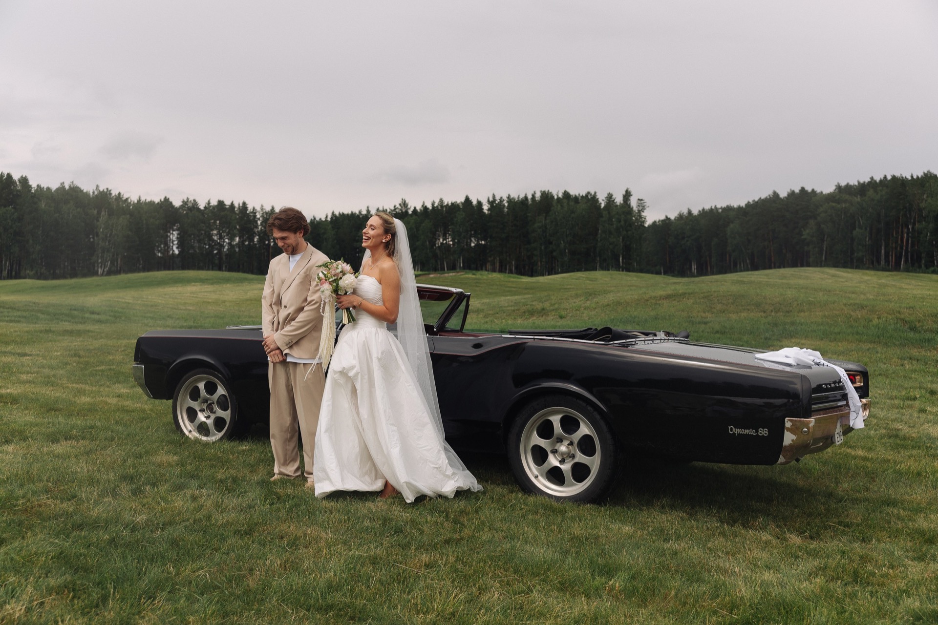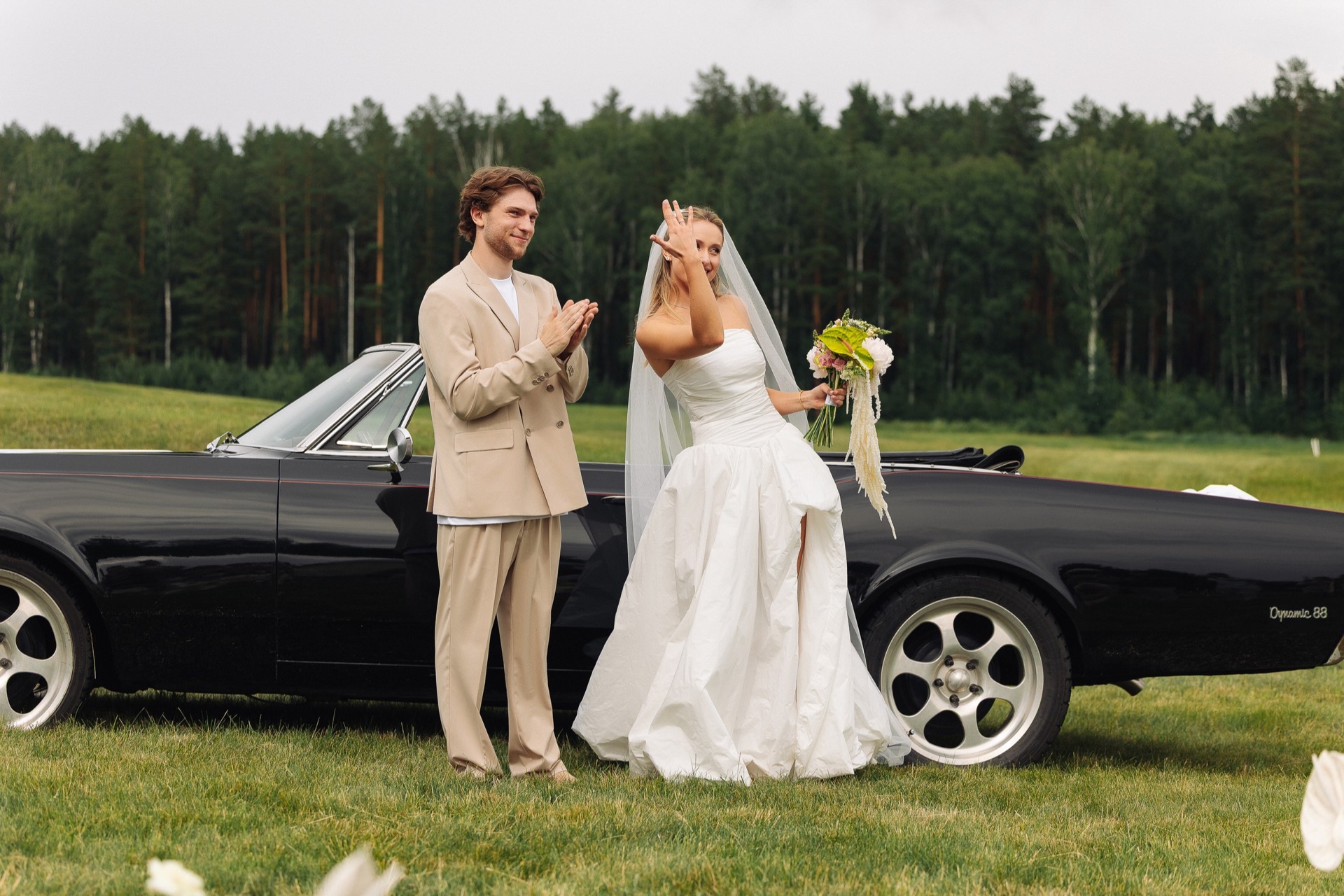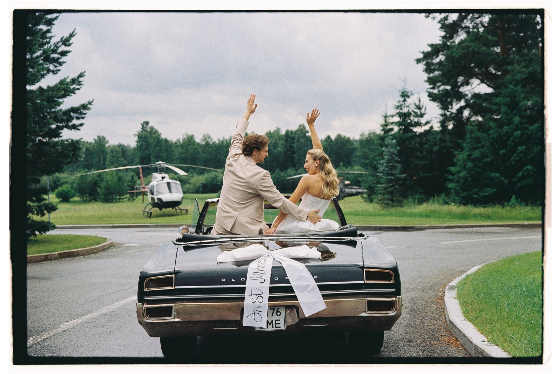 У нас работал бар: бармен разливал лимончелло и угощал джелато. Для каждого гостя был сделан индивидуальный браслет с гравировкой его инициалов. Мы устроили гастрономический ужин из шести подач, одной из которых был лимонный сорбет для освежения вкусовых рецепторов. Мы хотели передать итальянскую атмосферу, поэтому в качестве декора выбрали монохромное оформление с цветами и фуд-декором. Мне очень нравятся антуриумы, именно они украшали нашу зону церемонии. Из необычного — мы арендовали ретро-автомобиль и сделали церемонию прямо напротив него. Получилось безумно красиво!