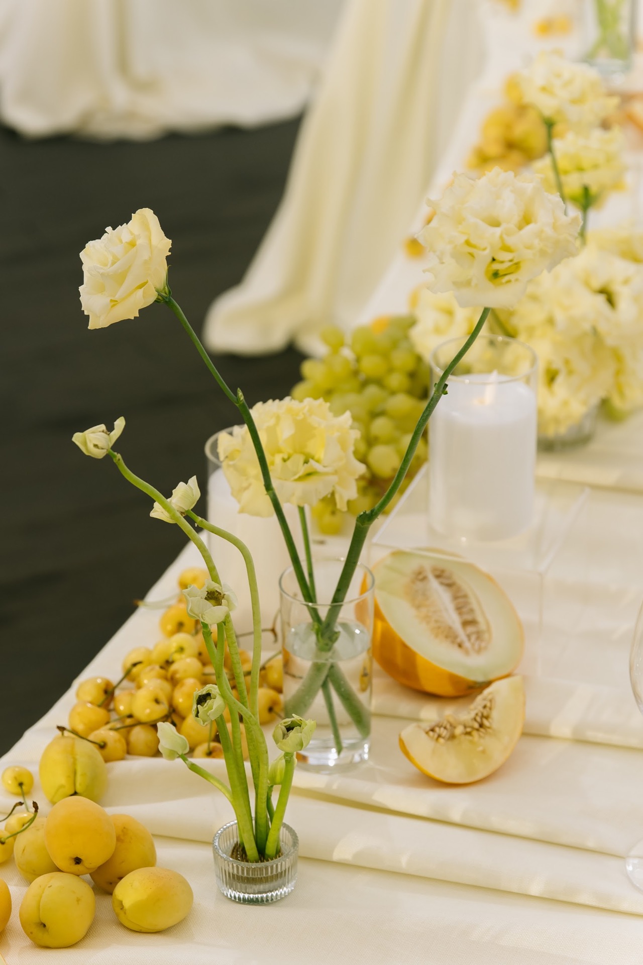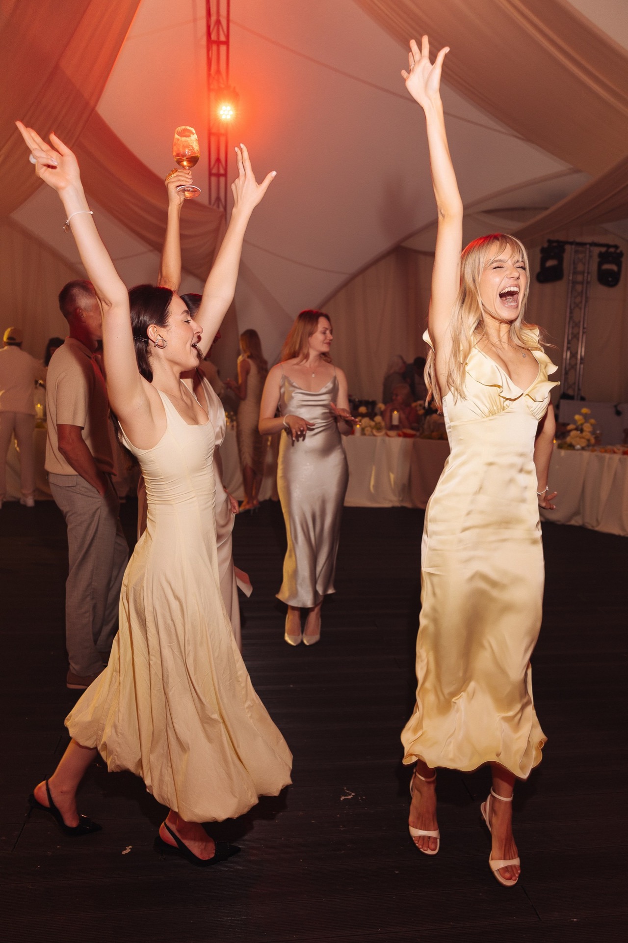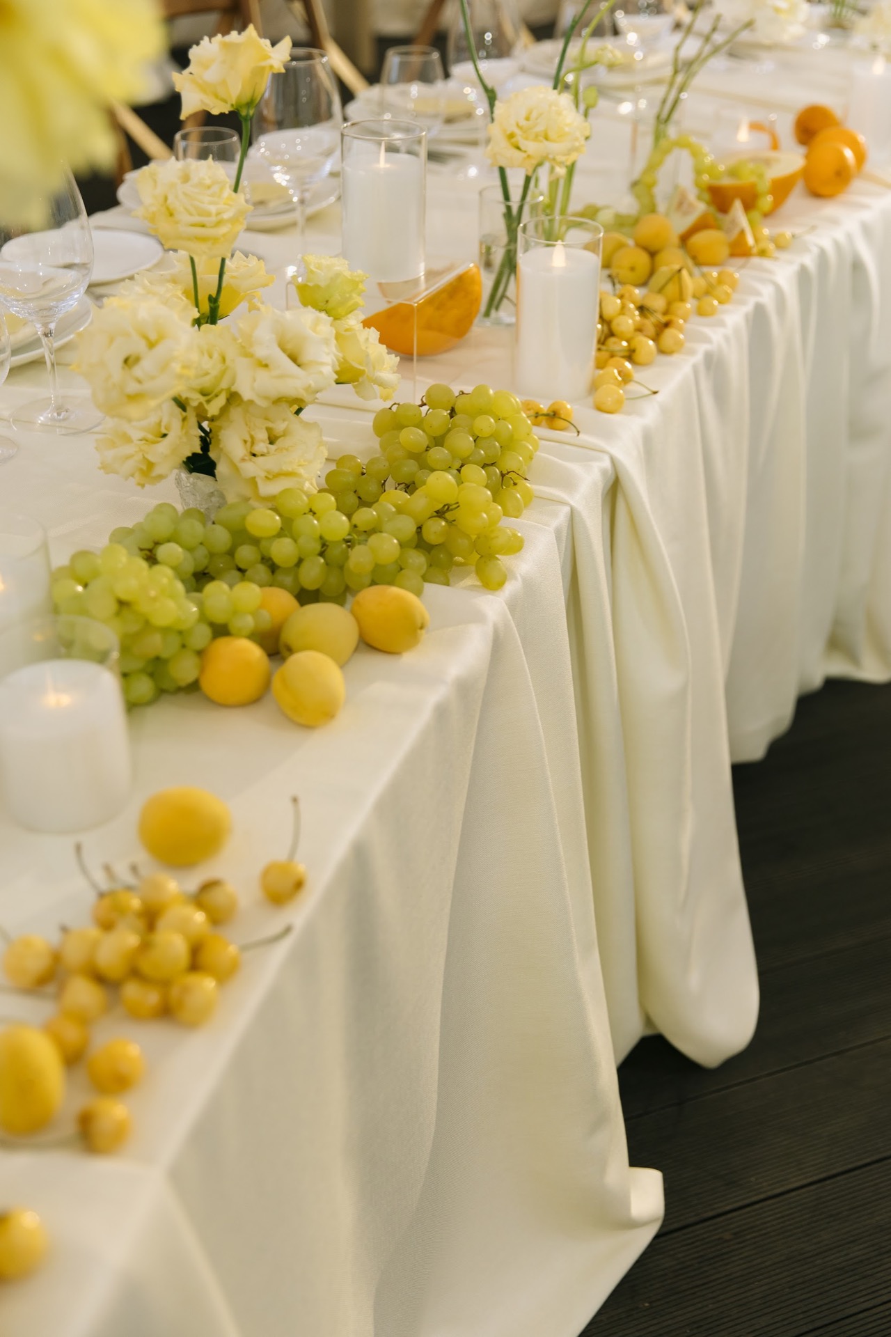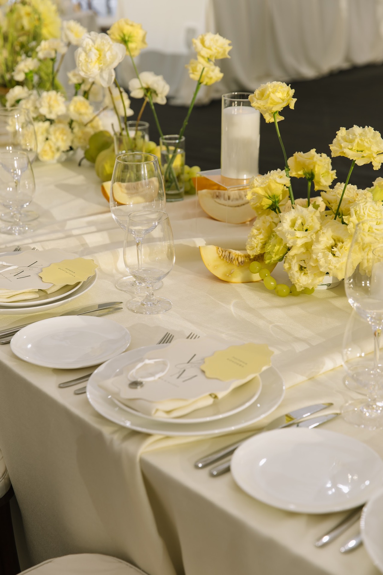 У нас работал бар: бармен разливал лимончелло и угощал джелато. Для каждого гостя был сделан индивидуальный браслет с гравировкой его инициалов. Мы устроили гастрономический ужин из шести подач, одной из которых был лимонный сорбет для освежения вкусовых рецепторов. Мы хотели передать итальянскую атмосферу, поэтому в качестве декора выбрали монохромное оформление с цветами и фуд-декором. Мне очень нравятся антуриумы, именно они украшали нашу зону церемонии. Из необычного — мы арендовали ретро-автомобиль и сделали церемонию прямо напротив него. Получилось безумно красиво!