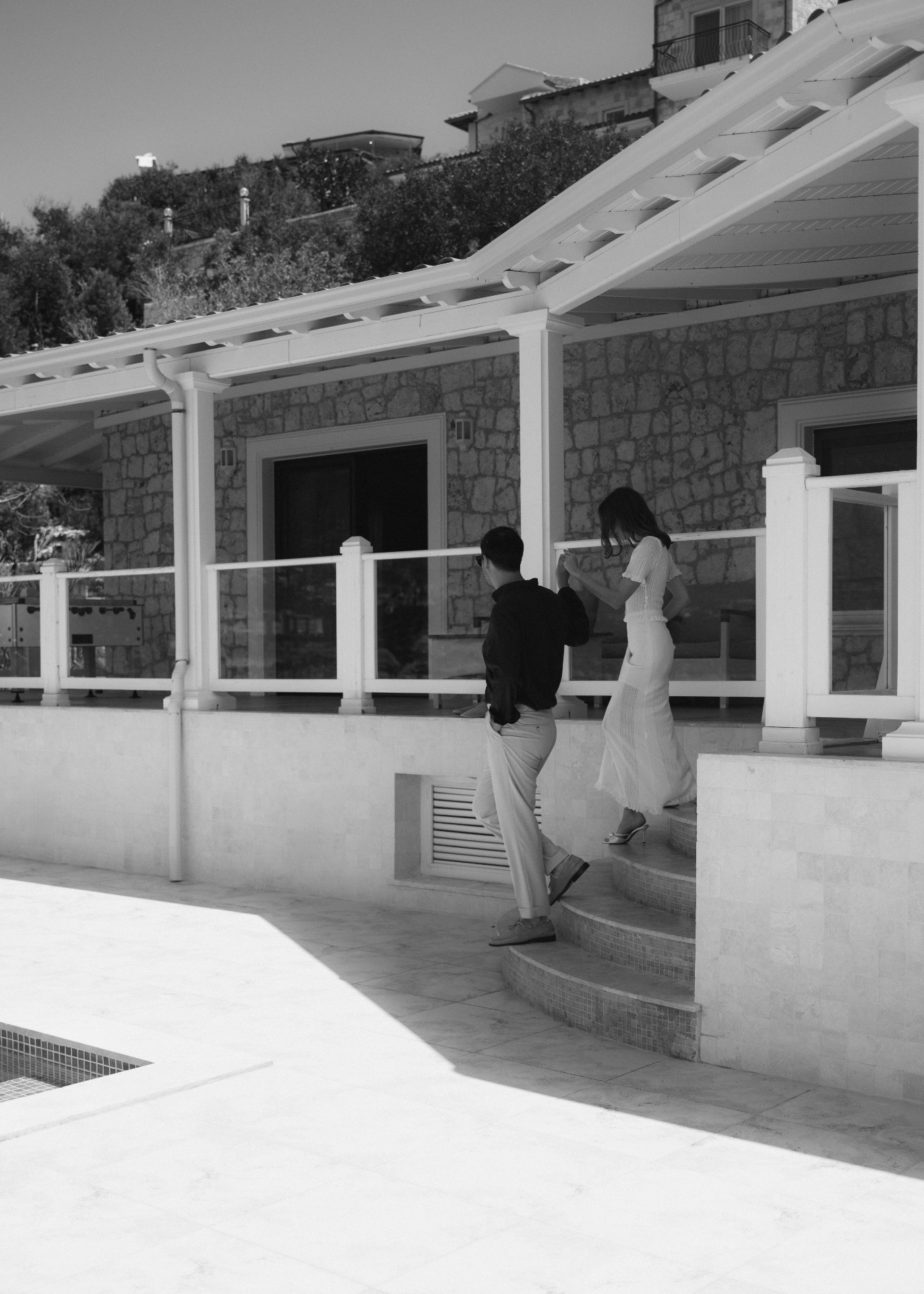 На вилле с самого утра царила особая атмосфера: на кухне работал шеф, у нас была утренняя съёмка, во время которой мы проводили последние минуты в статусе жениха и невесты, приезжали свежие цветы, готовились гости, все ждали чего-то волшебного.