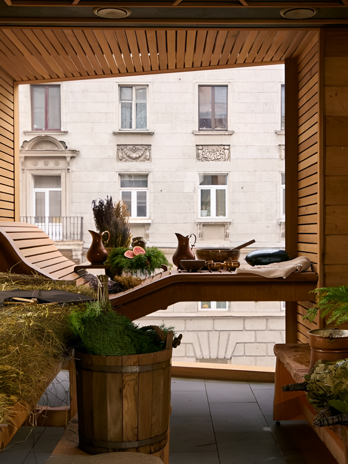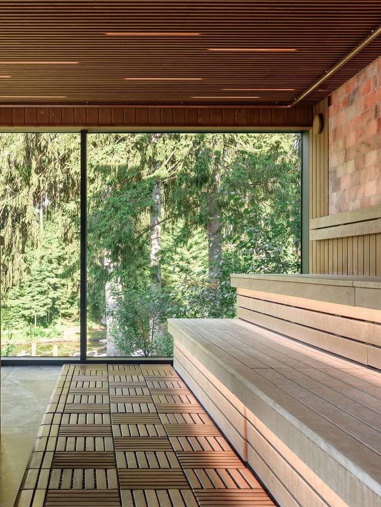 Банное пространство в окружении соснового леса — что ещё может быть нужно для идеального отдыха? Можно присоединиться к коллективной программе и посетить парную и хаммам, а можно записаться на индивидуальные услуги: массаж, скрабы и другие спа-ритуалы.
