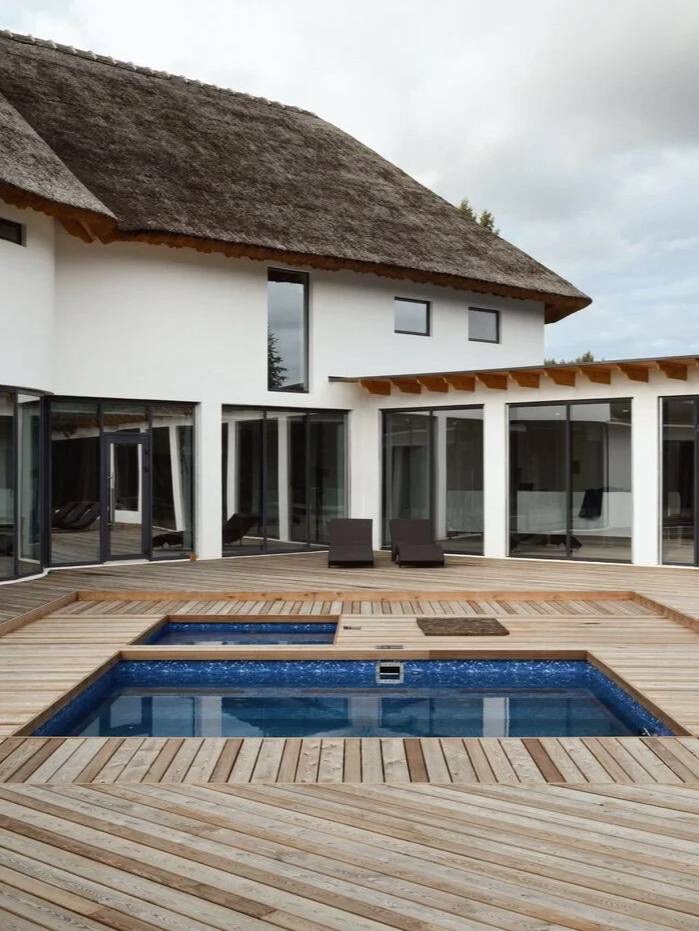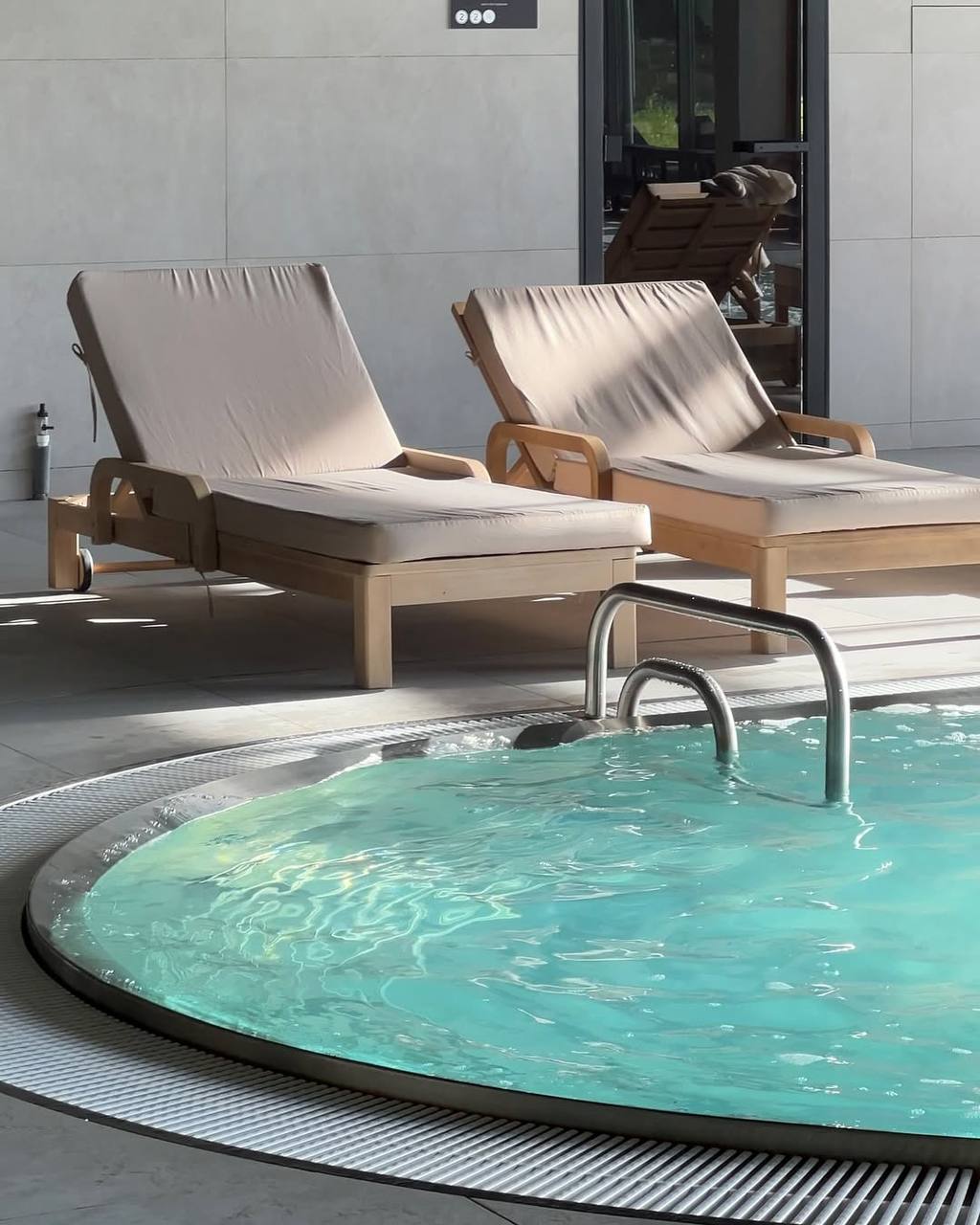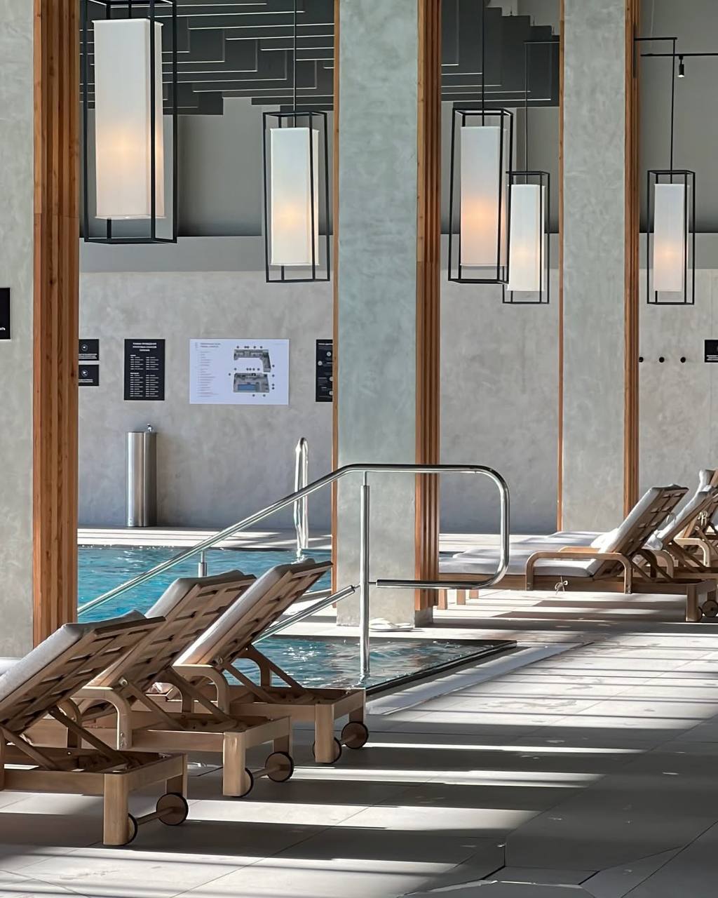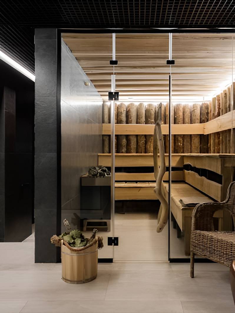Полноценный СПА-комплекс в Охтапарке, внутри которого есть несколько подогреваемых бассейнов и термальных зон, парные с панорамным видом на сосновый лес, эстетичные хаммамы, тренажёрный зал и зона отдыха с камином и завораживающим видом.