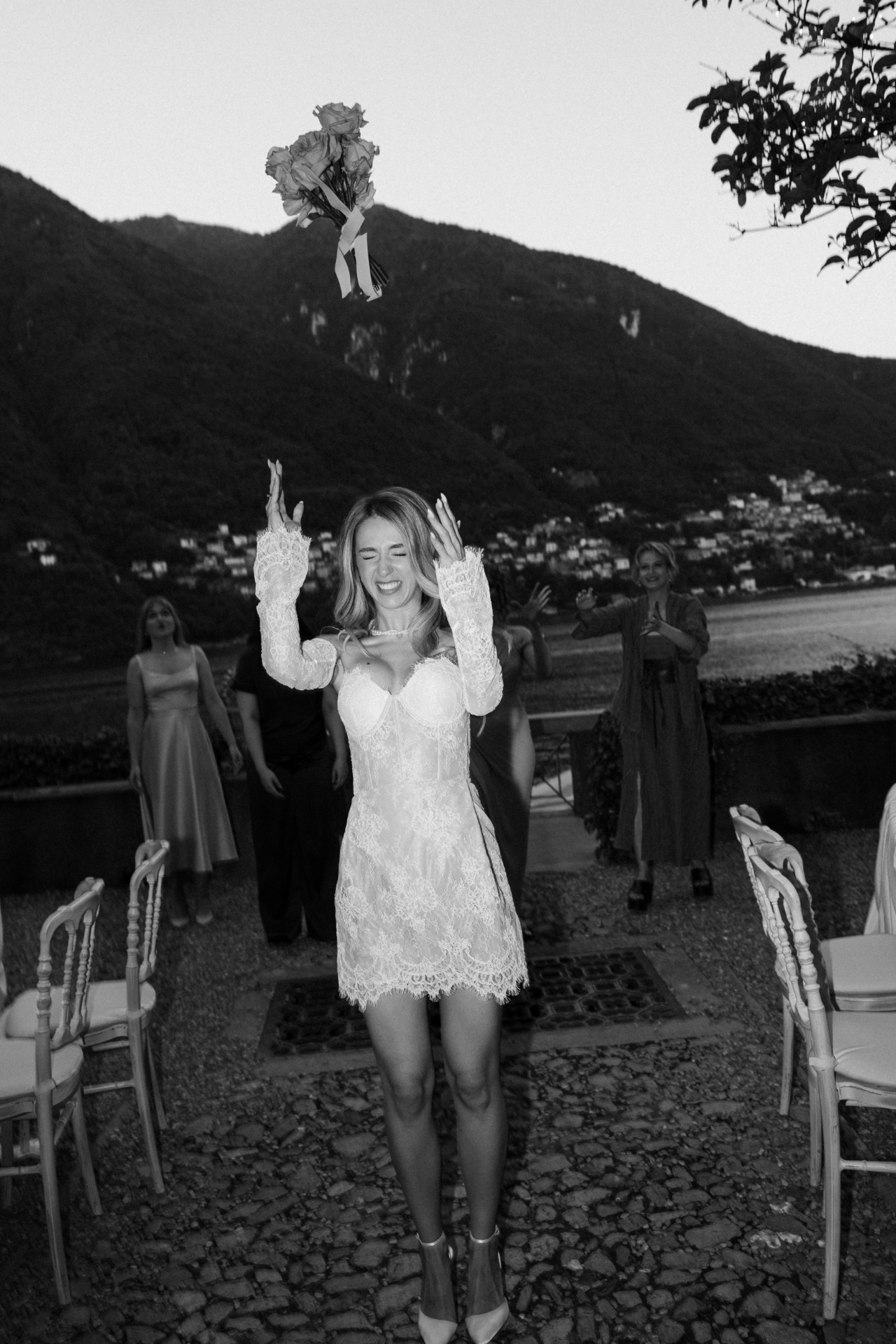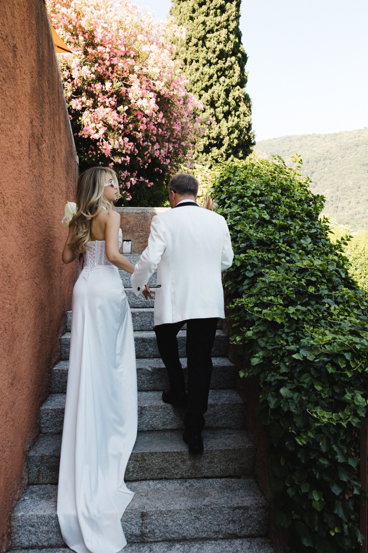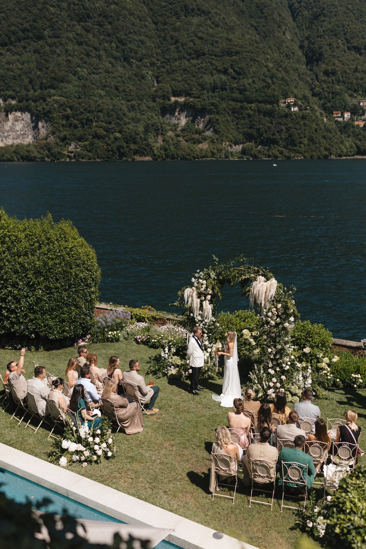 Следующий день — сборы, переезд на виллу и утренняя съёмка. Церемония прошла с видом на озеро и горы под живую музыку.