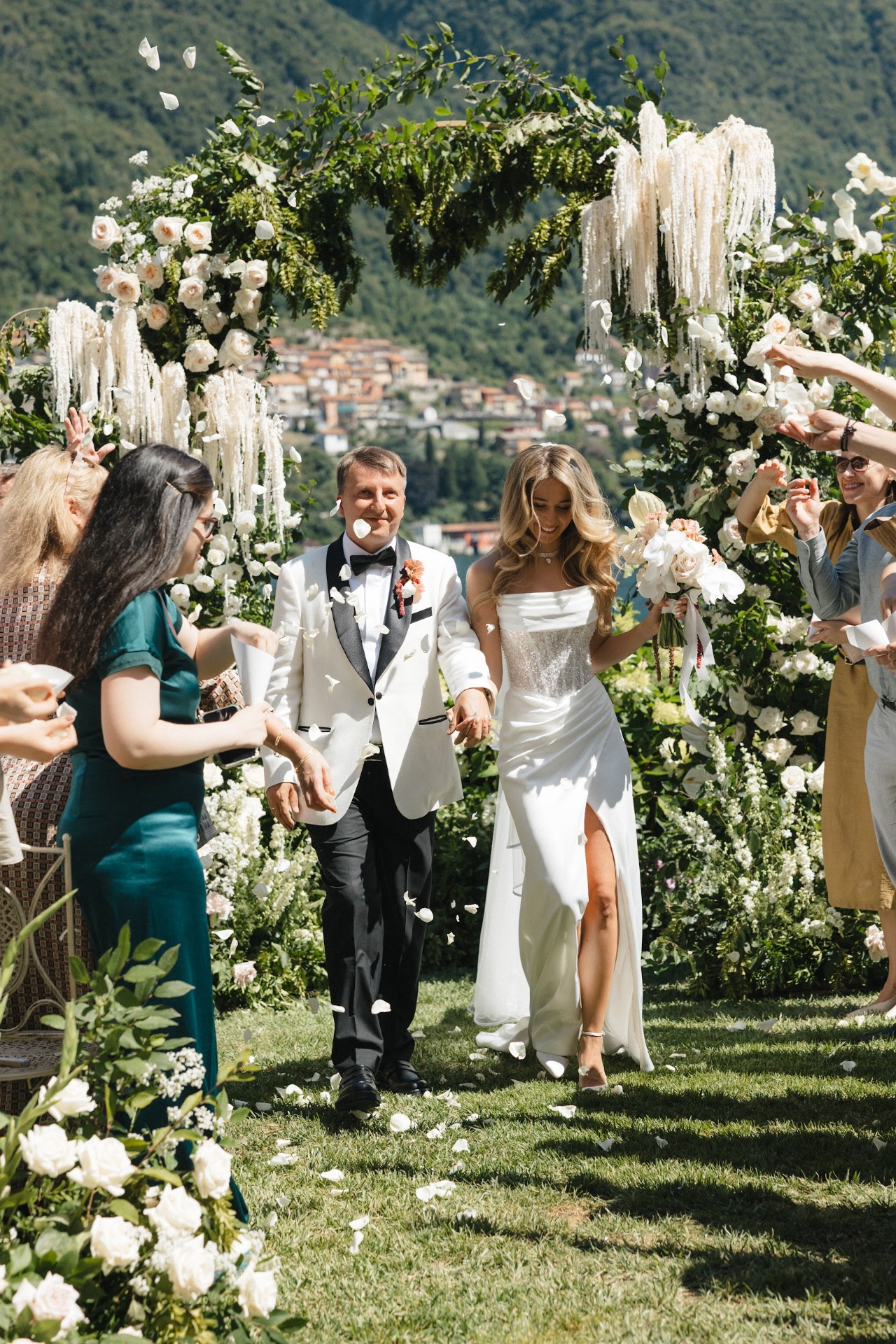 Главной «фишкой» нашего праздника стало то, что свадьба растянулась на три дня. В первый день мы провели официальную регистрацию в коммуне Белладжо: дворик с видом на горы, церемония на итальянском с переводчиком, волнительное «si» и подарок от мэрии — панно из венецианского стекла.