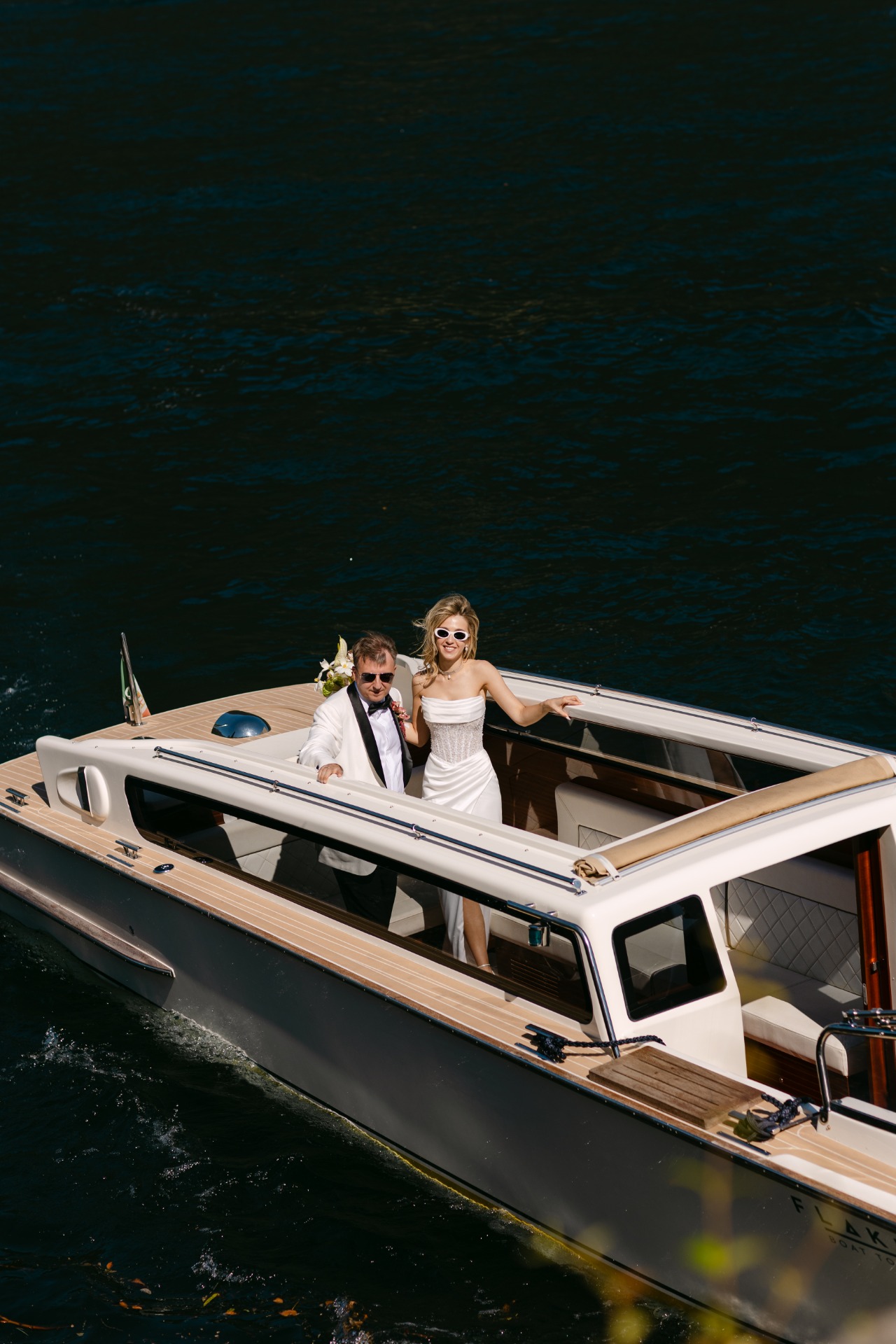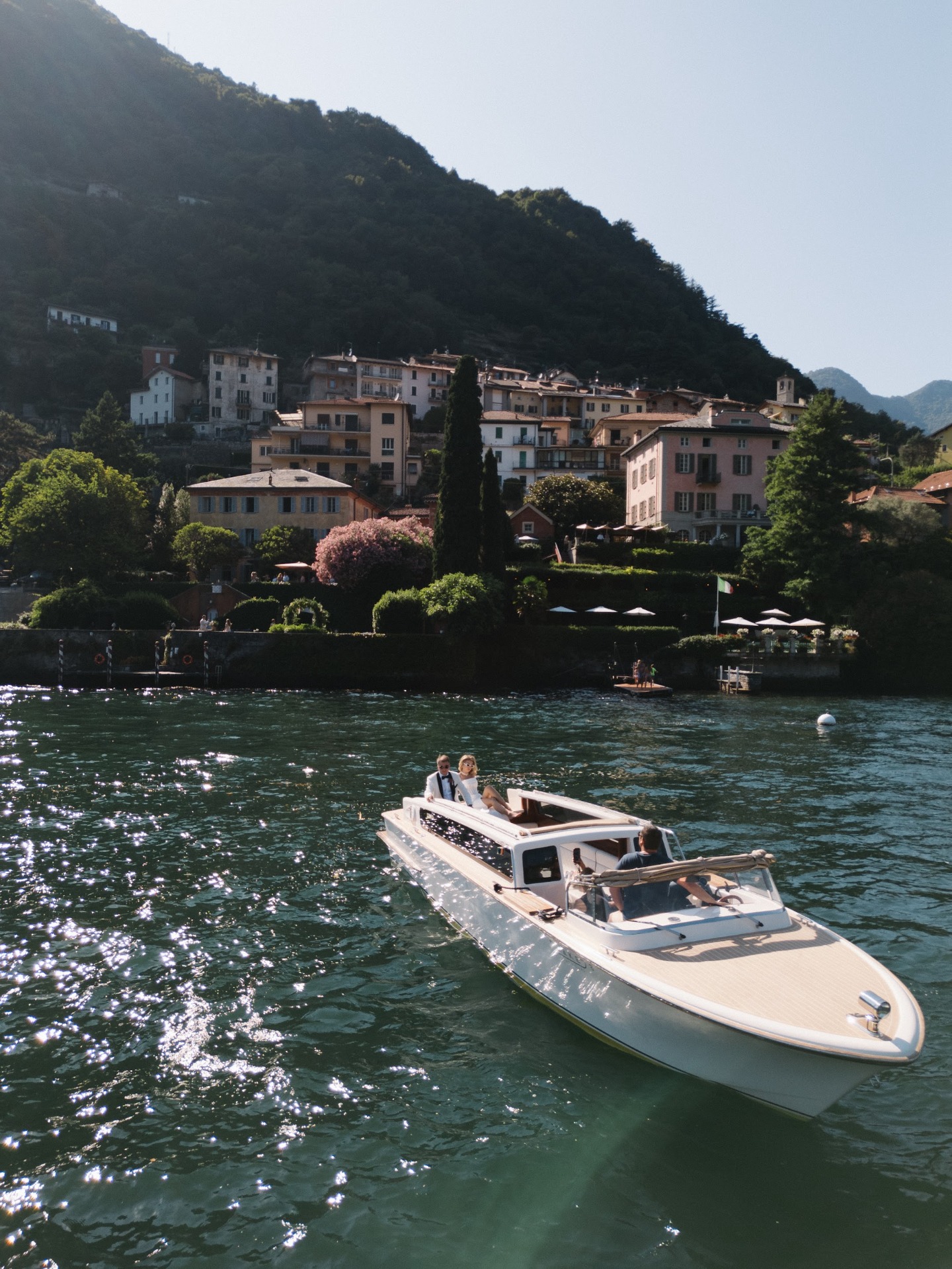 После бокала игристого мы отправились на катере в Комо, где гости уже ждали нас на pre-party — познакомиться, расслабиться и войти в ритм праздника.