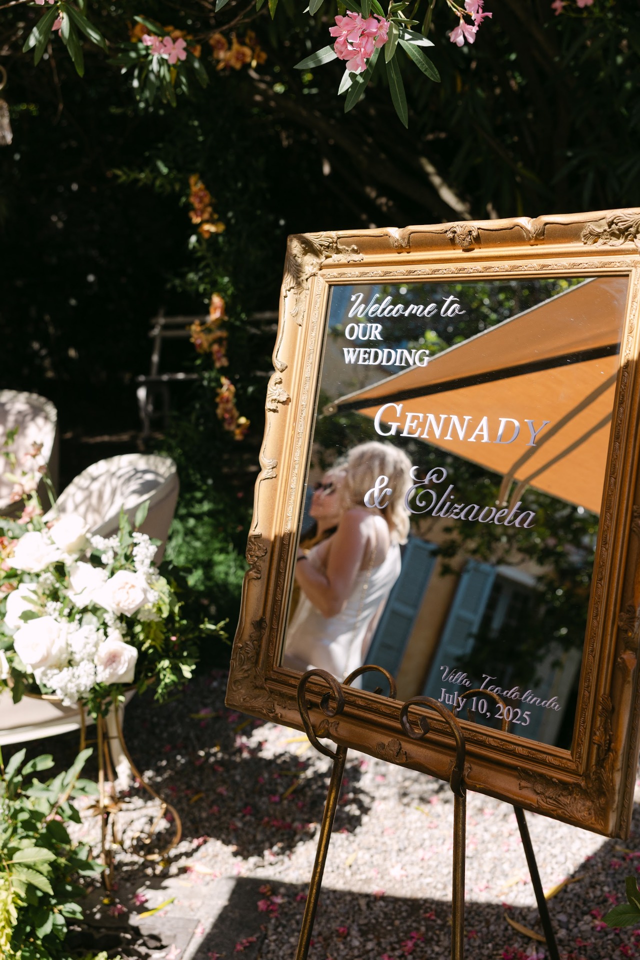 Подготовку в Италии мы начали всего за полгода до даты — сроки, мягко говоря, жёсткие. Почти все виллы были забронированы, но нашим организаторам удалось найти два свободных дня на Villa Regina Teodolinda. Мы сразу влюбились в неё и забронировали.