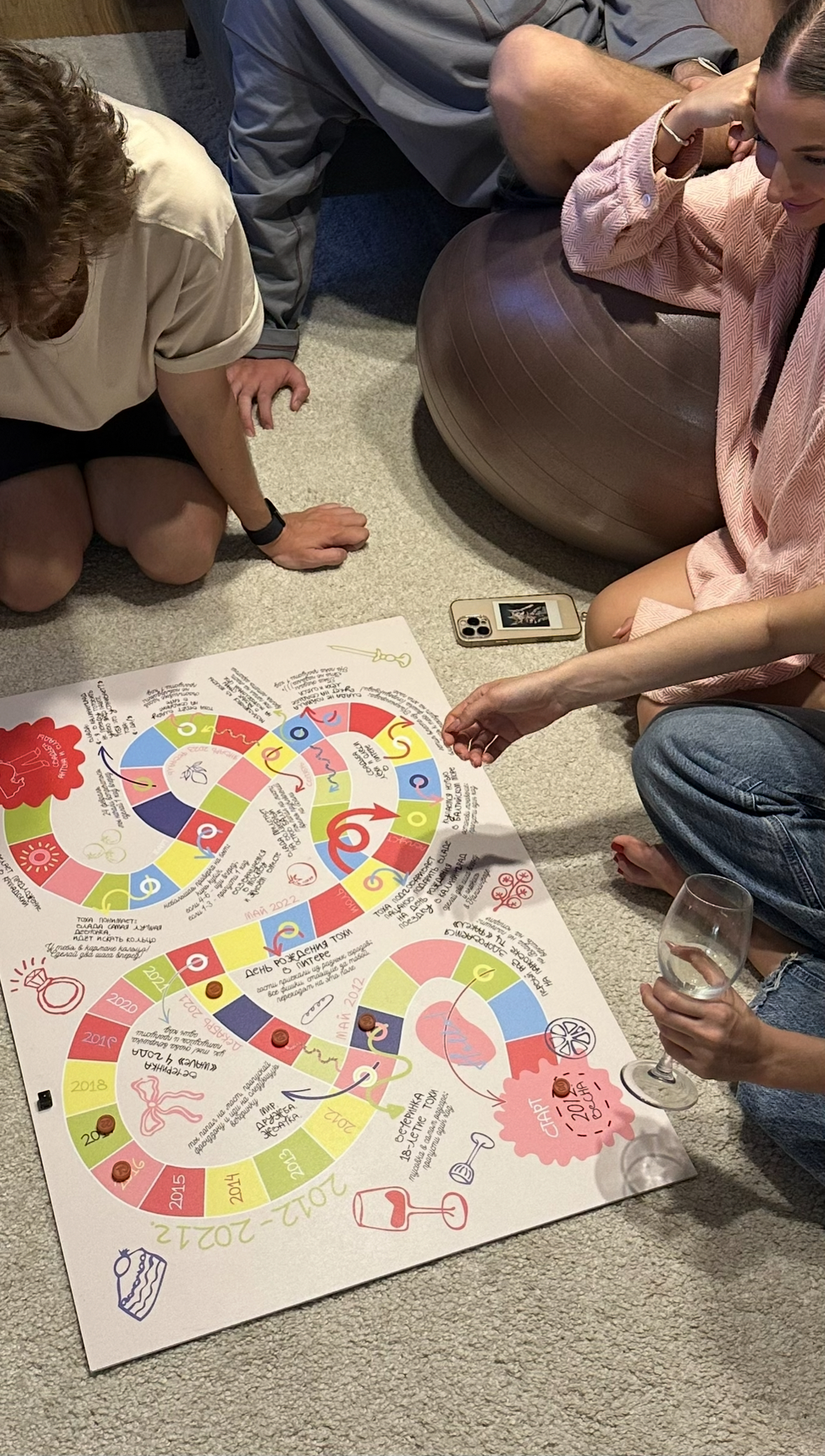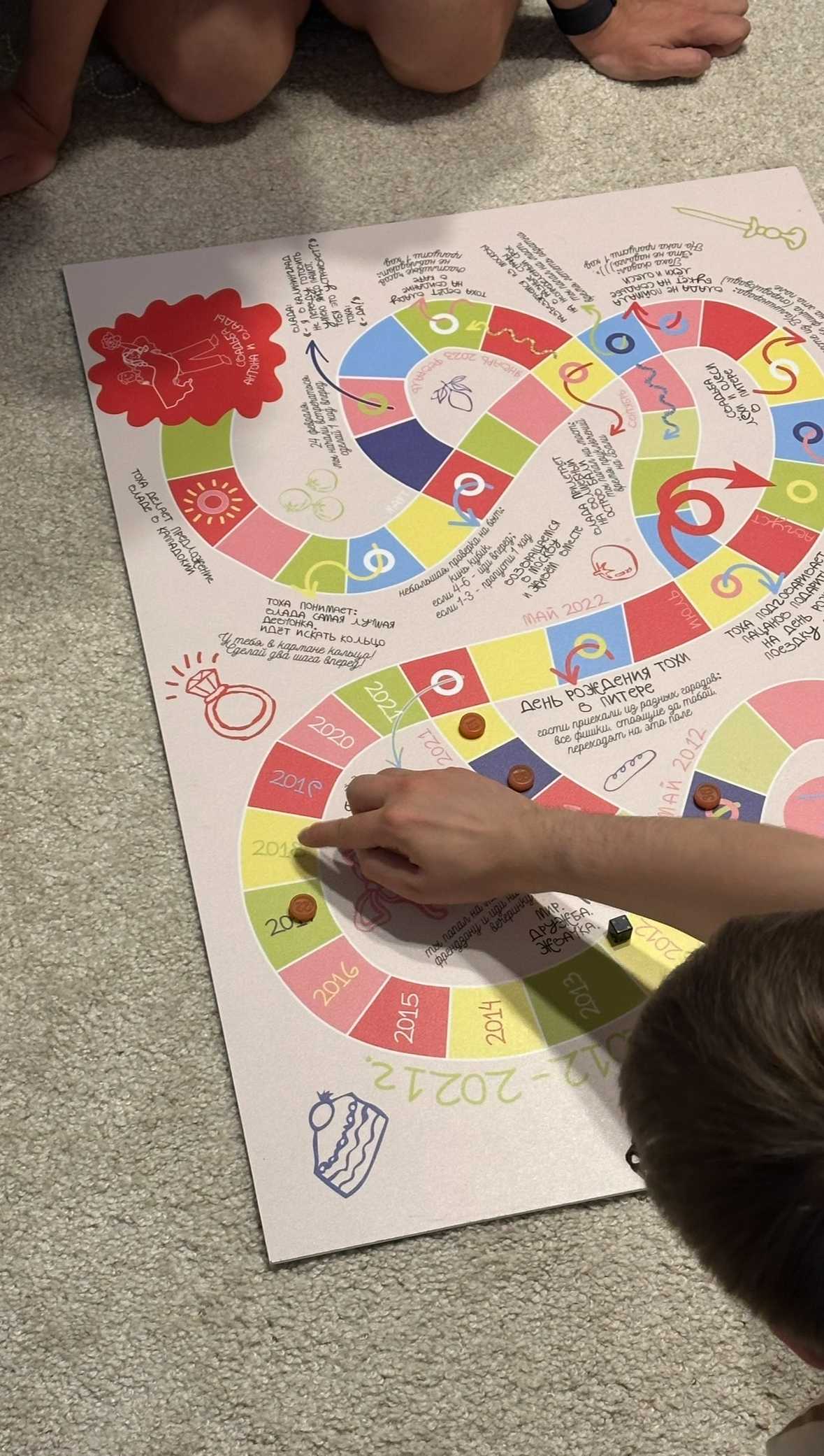 Отличный интерактив для welcome-зоны. Пара создала игру про свои отношения, чтобы гости смогли пройти весь путь их любви, начиная с 2012 года и заканчивая свадьбой в 2025. Во время этой игры гости попадали в разные страны, где происходили памятные события для пары.