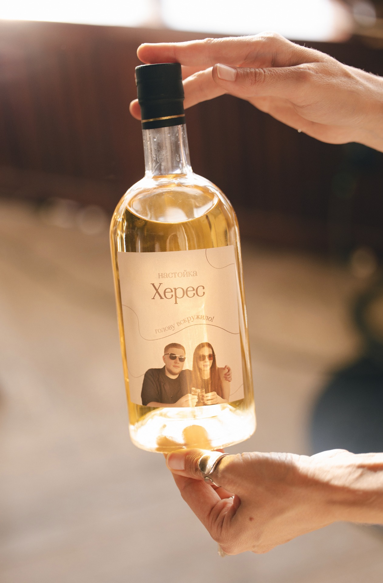 Кастомные бутылочки с настойками стали отличным дополнением праздника Аркадии и Ксении. Помимо того, что ребята сами изготовили настойки, они украсили их своими фото и подарили гостям.