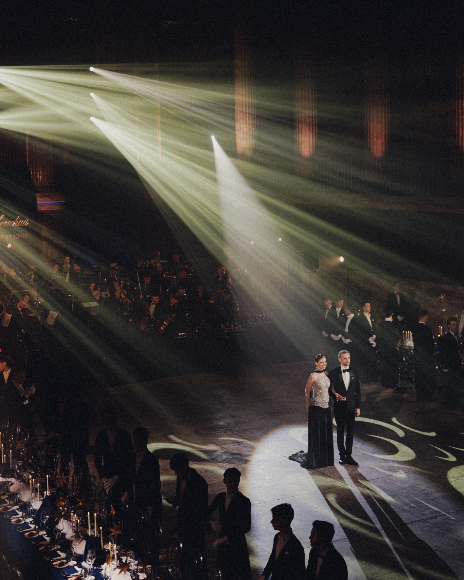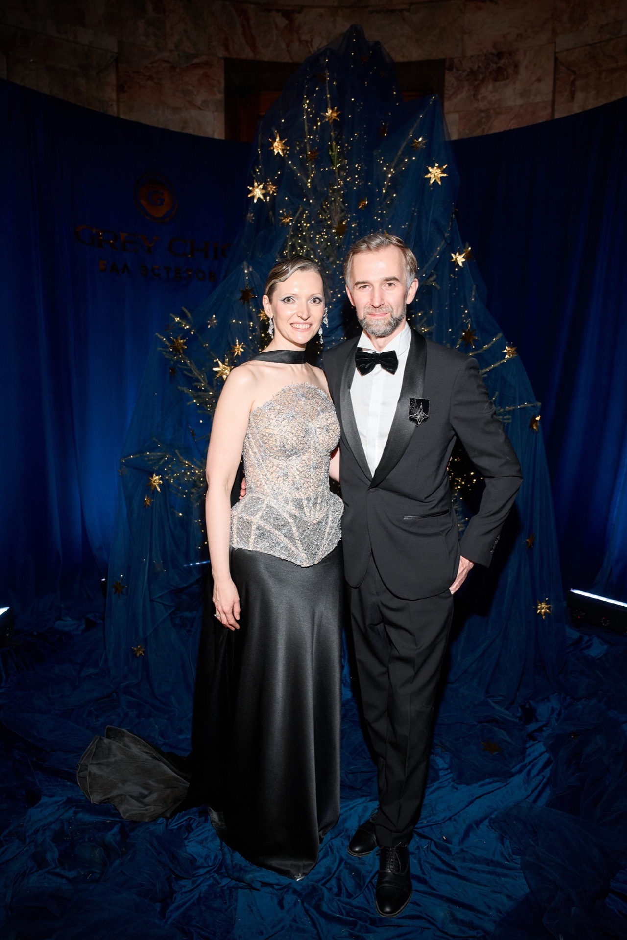 В этом году им стали элементы звёздного неба. Звёзды и россыпь камней украшали платья и смокинги, а аксессуары в виде перчаток, сумочек и брошей работали на одну идею. Гости были звёздами и, объединившись на Рождественском балу, образовали настоящие созвездия Вселенной GREY CHIC — вселенной, где сбываются мечты.