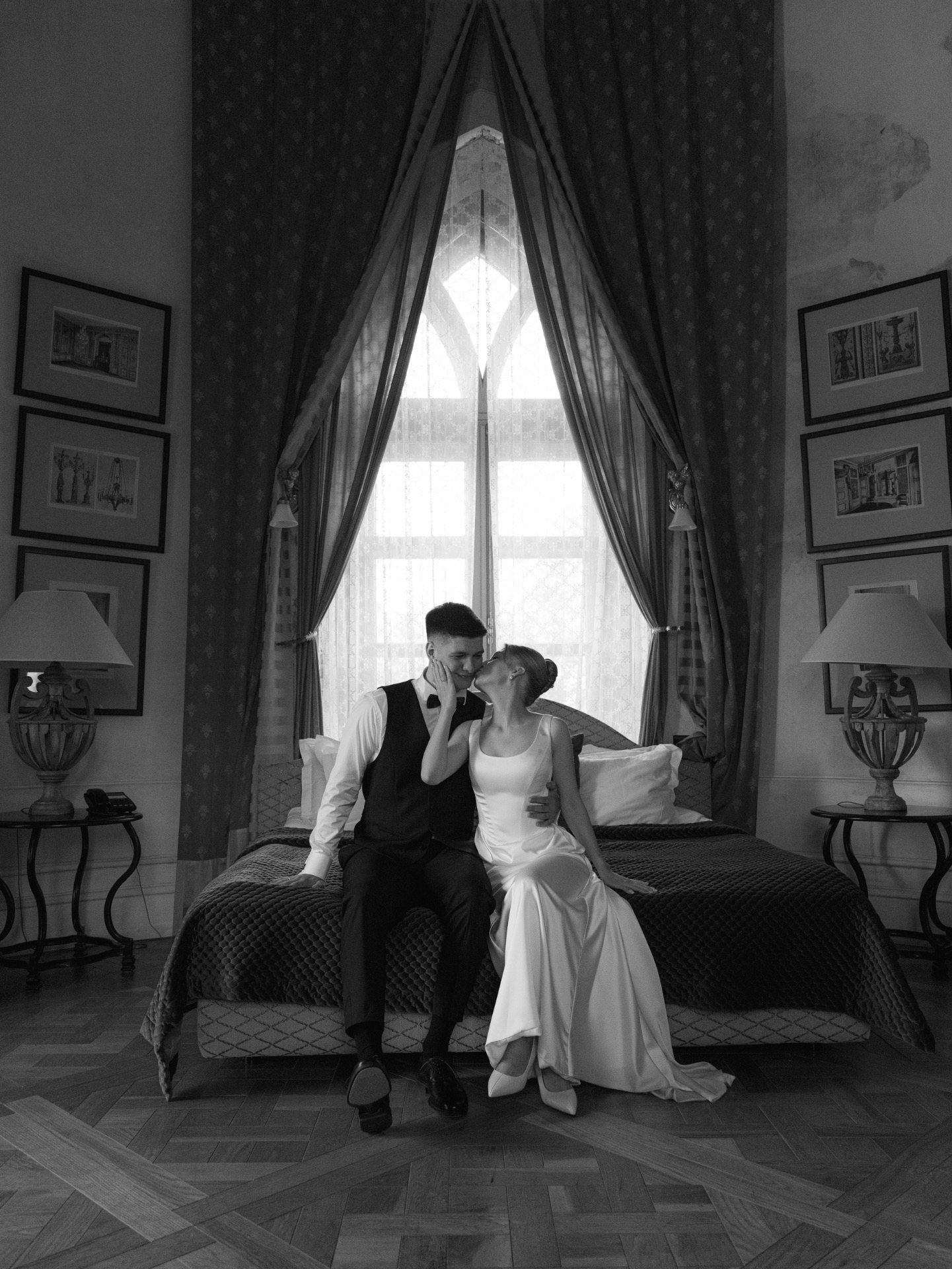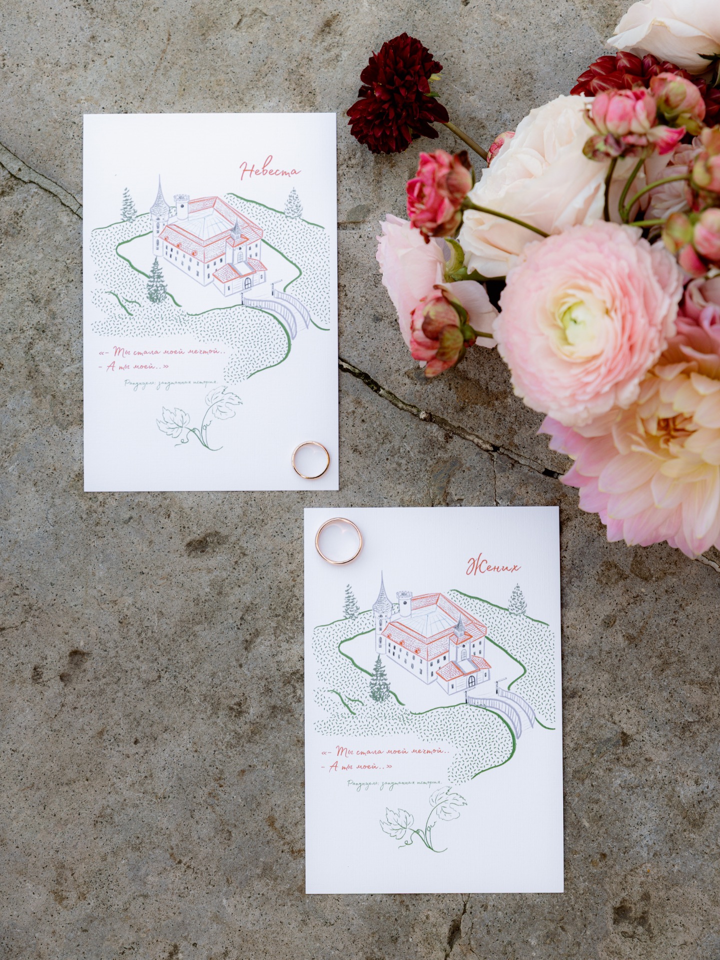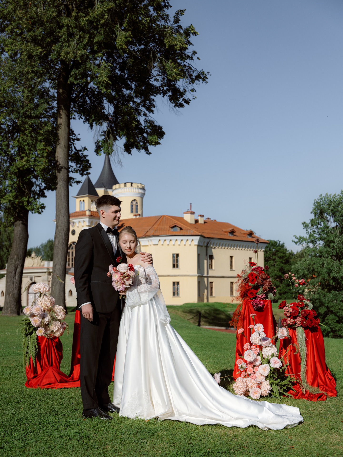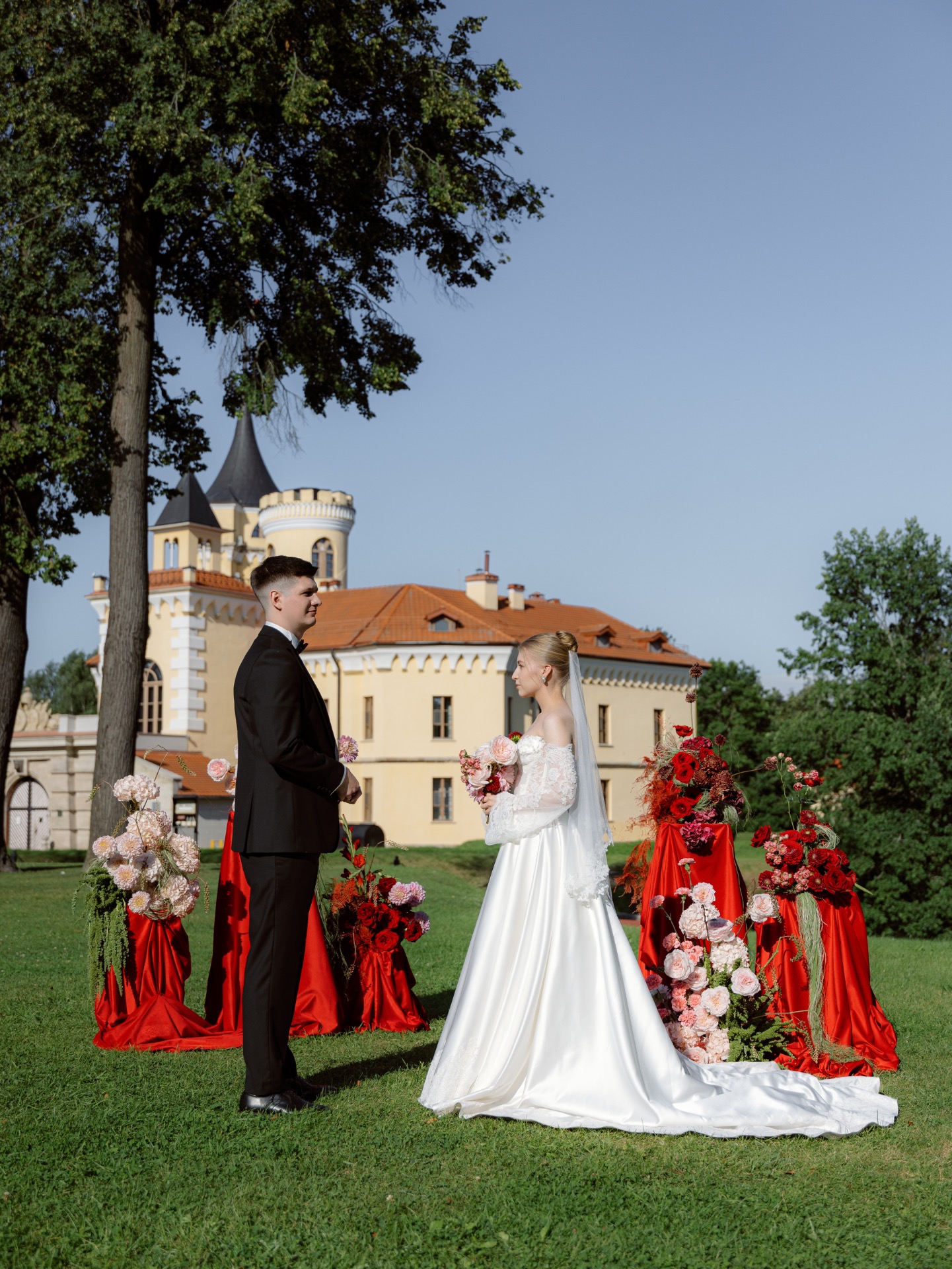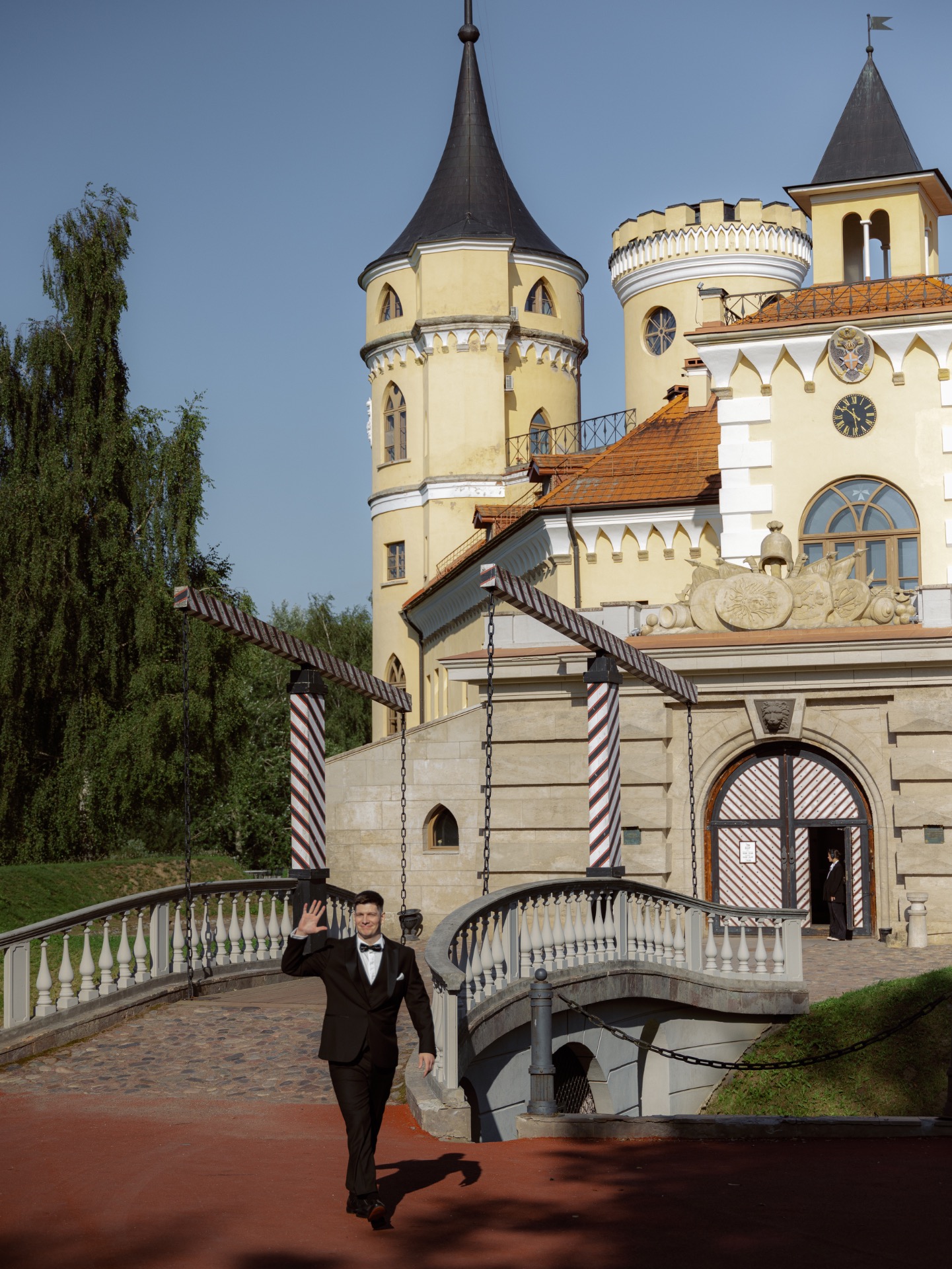 Тонкой нитью в концепцию вошла фраза из моего любимого мультфильма «Рапунцель»: «— Ты стала моей мечтой. — А ты моей…». Она стала частью истории дня и для нас отражала осознанный выбор быть друг с другом. И место — замок, в котором всё проходило, стало частью этой концепции.