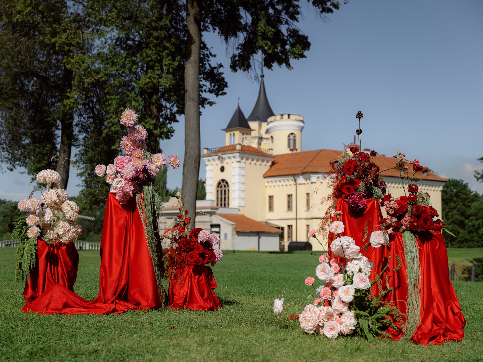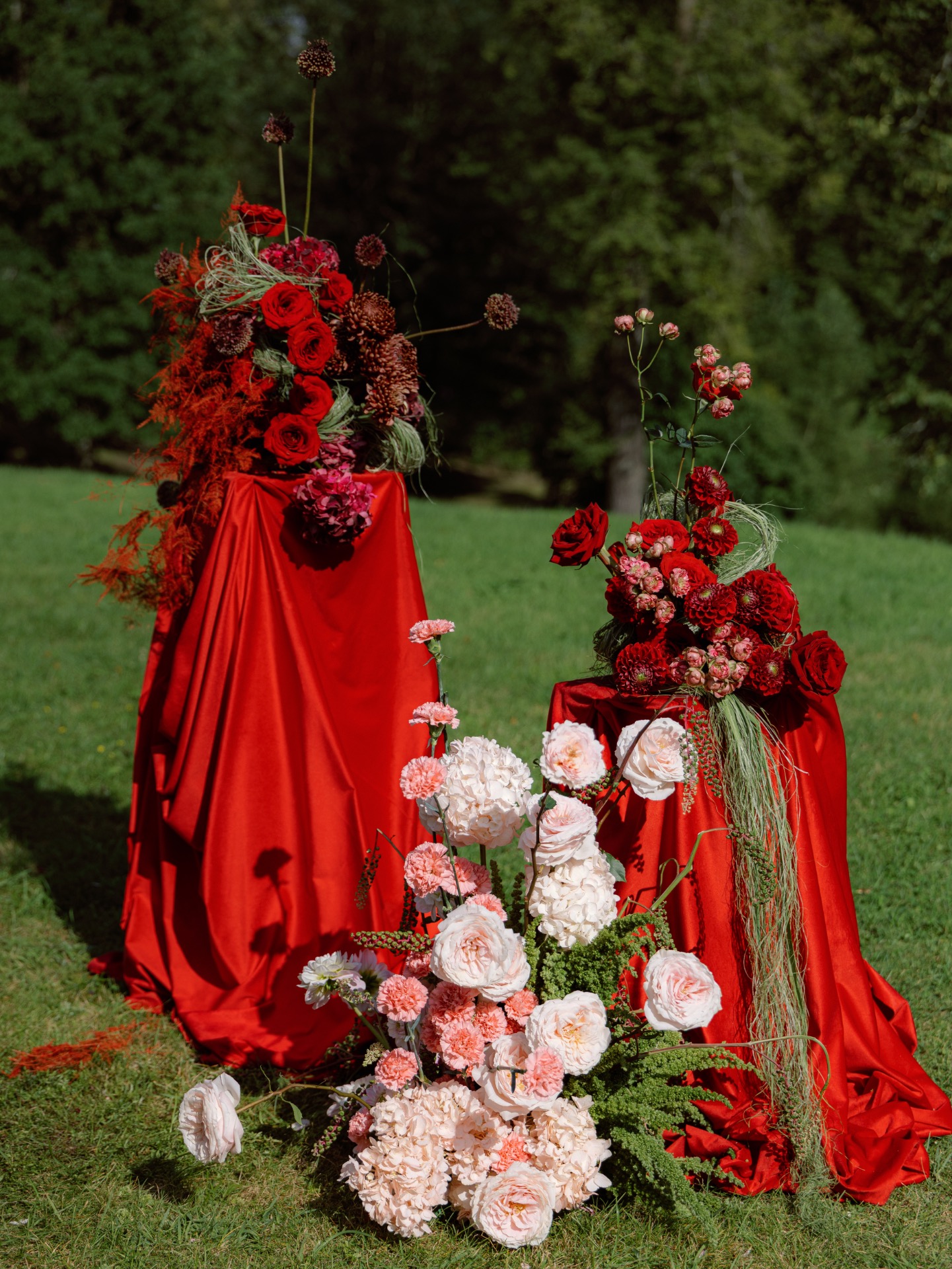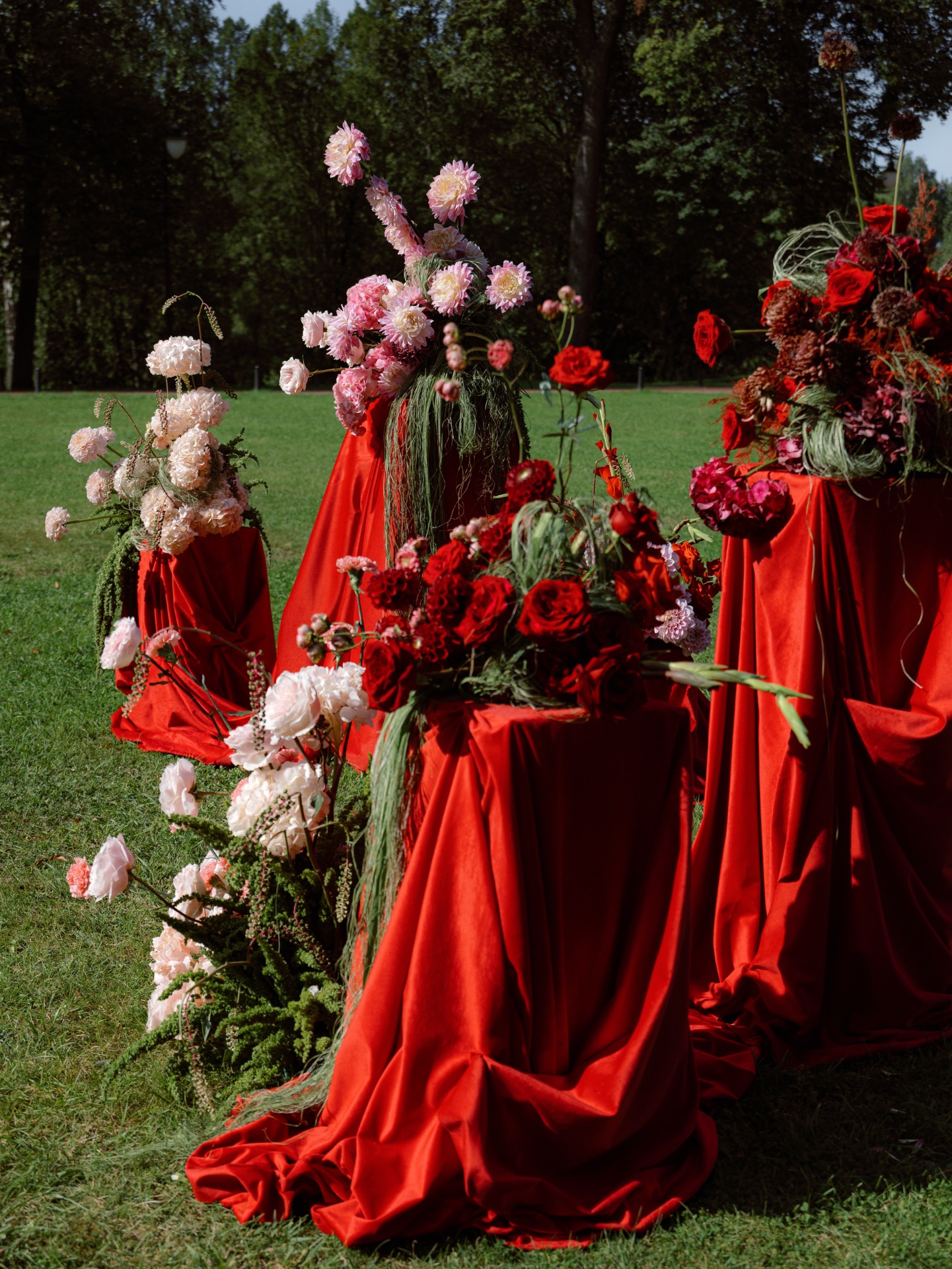 Вся флористика была в красно-розовых оттенках, и эту палитру предложил Ваня. Декораторы вместе с организаторами предложили нам несколько идей оформления, из которых мы выбрали ту, что понравилась больше всего, и детально собрали итоговую картинку.