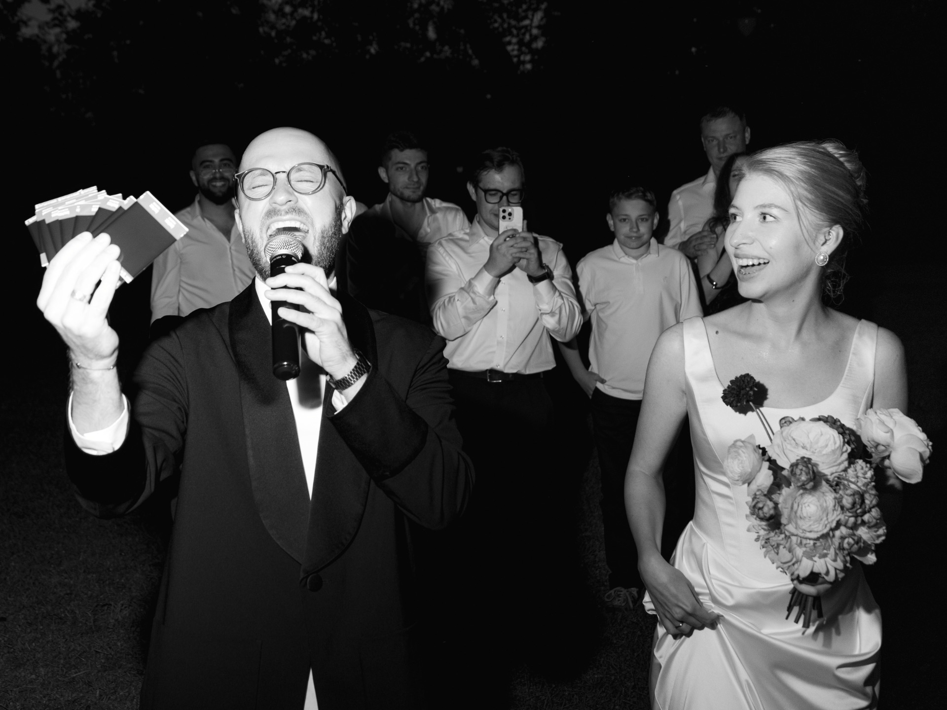 Весь вечер прошёл идеально. Честно, даже спустя полгода я также могу бесконечно говорить о том, как это было круто. Наш ведущий Серафим прекрасно провёл нашу свадьбу. Основным развлечением на нашем празднике стали эмоциональные качели — на них мы все дружно катались.