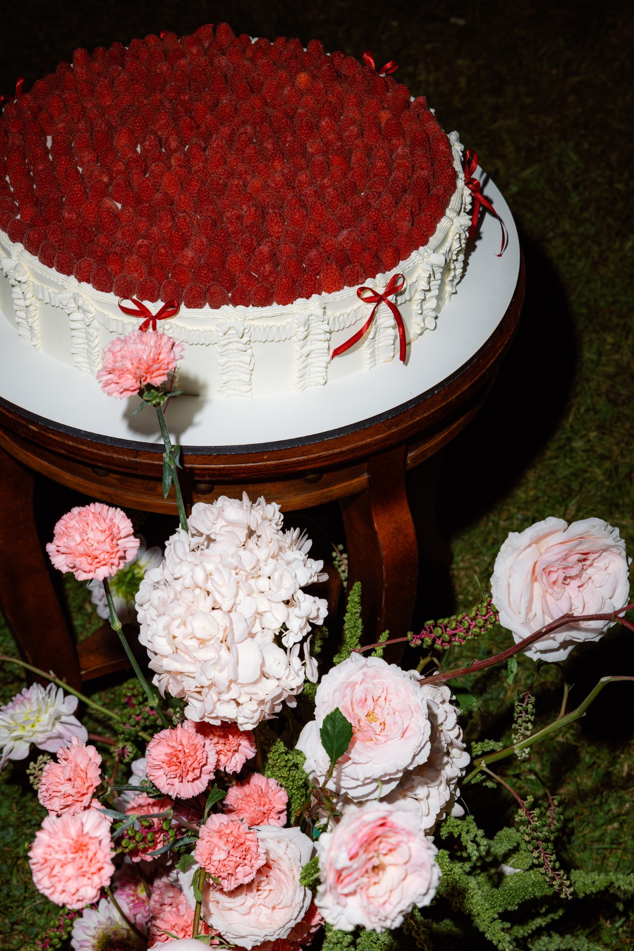 Торт тоже был с ягодами и красными бантиками, невероятно вкусный. Дизайн мы также выбирали с организаторами.