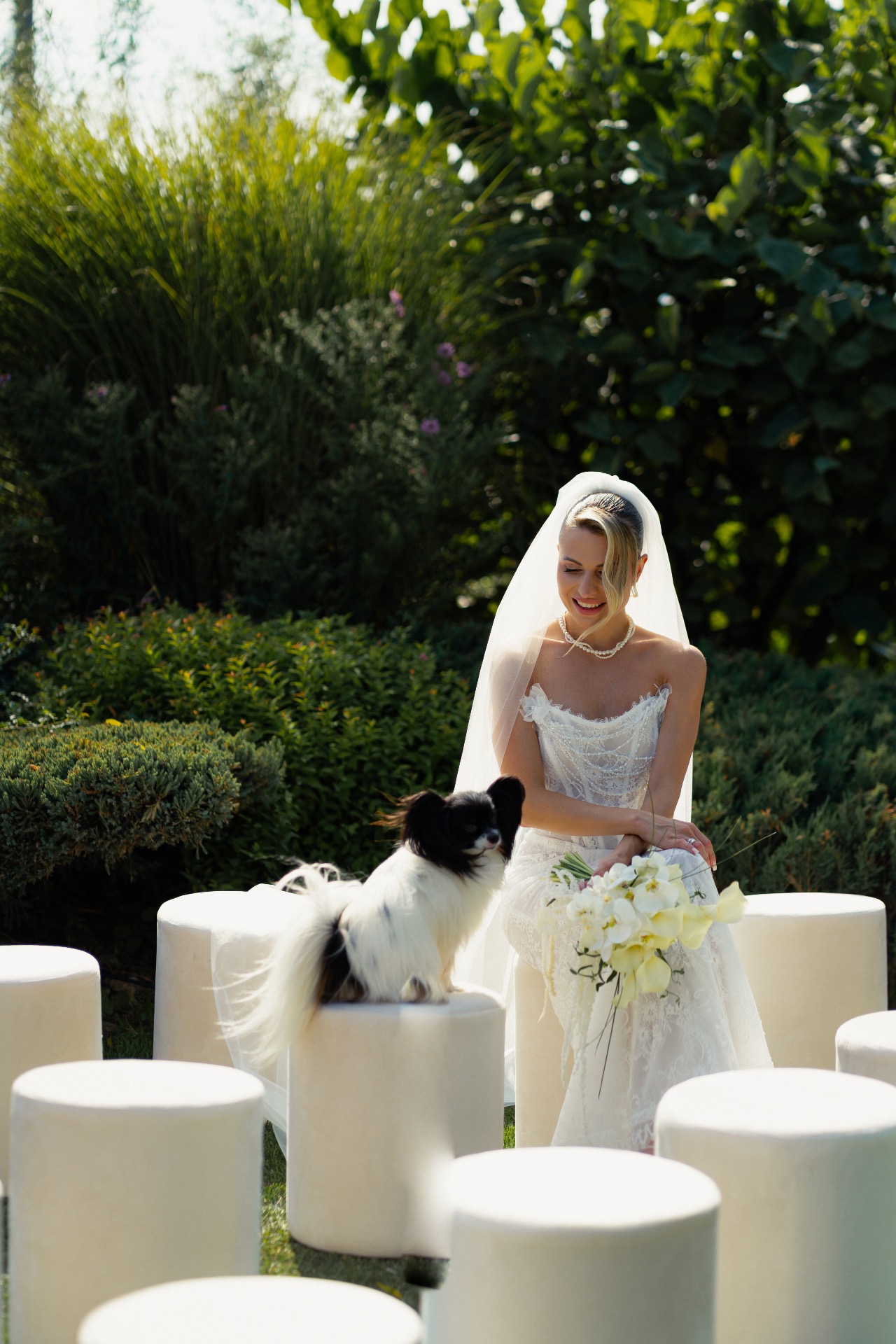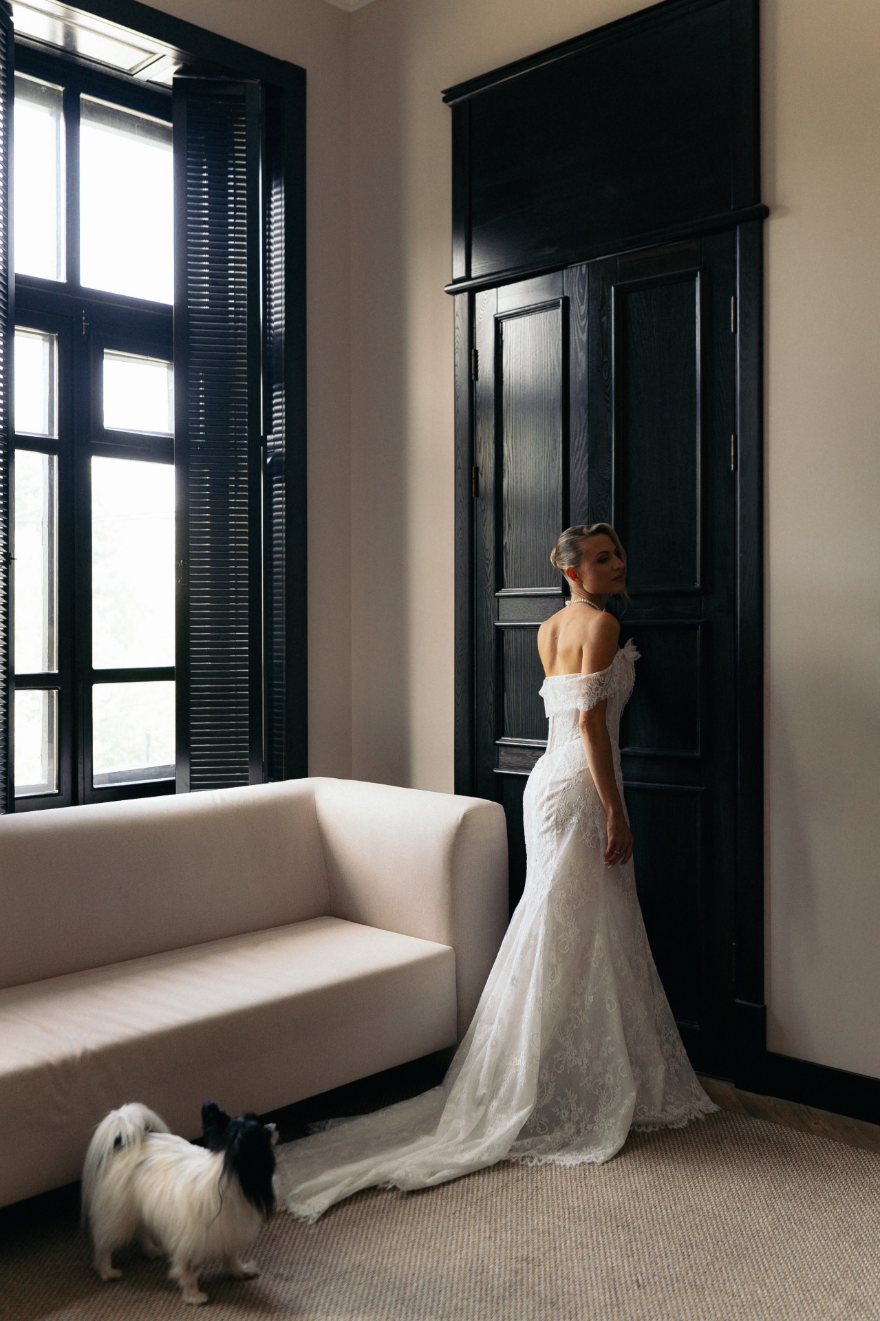 Утро началось в апартаментах с завтрака и фотосессии. Главными участниками этого дня стали наши две собачки. Мы даже мечтали, что Барни вынесет кольца, но, увидев зелёную траву, он, казалось, потерял голову, и мы едва не лишились бы колец в озере. Поэтому было принято решение не рисковать.