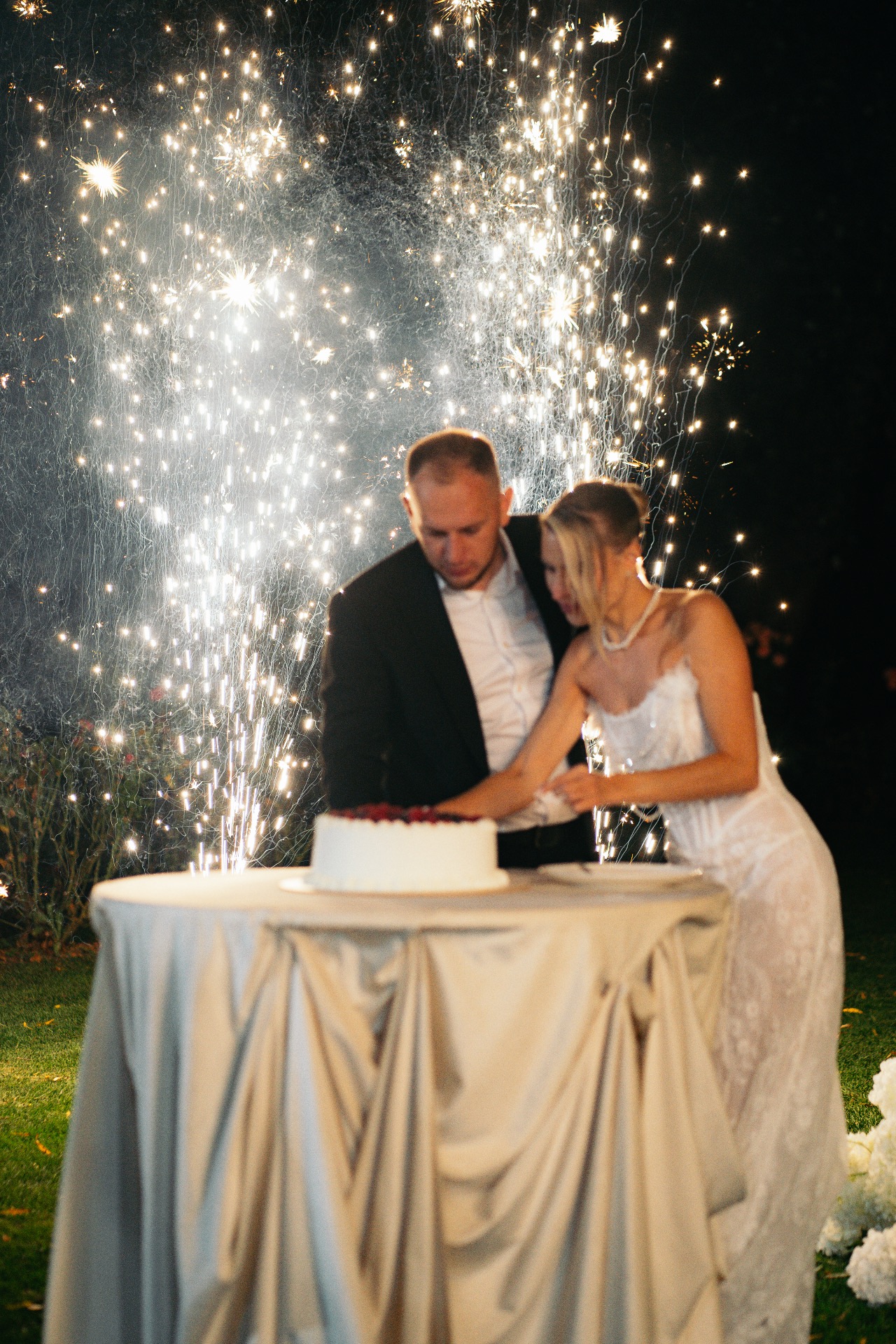 Торт мы встречали у зоны церемонии под открытым небом, и мы не продали ни кусочка, хоть гости очень этого просили.
