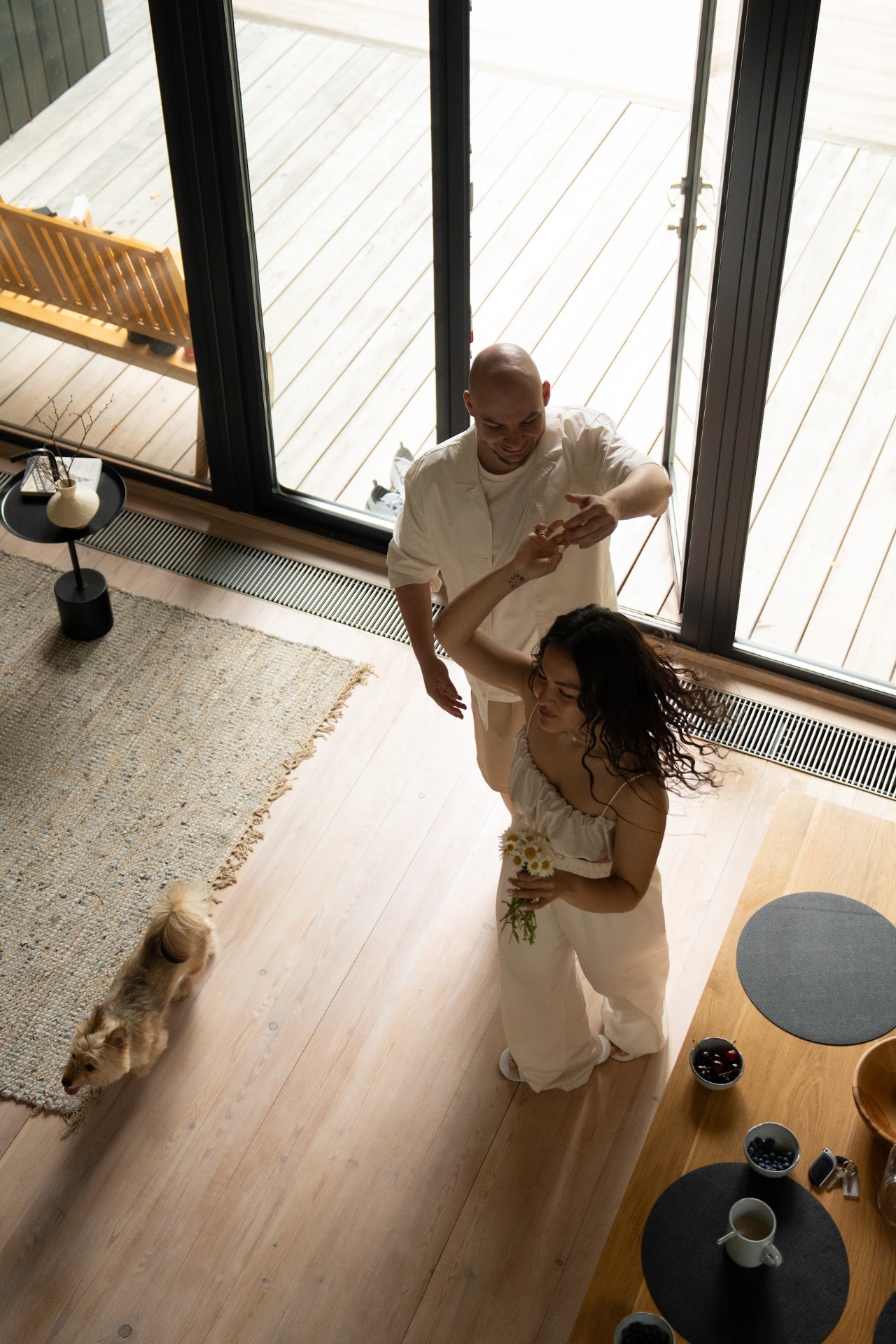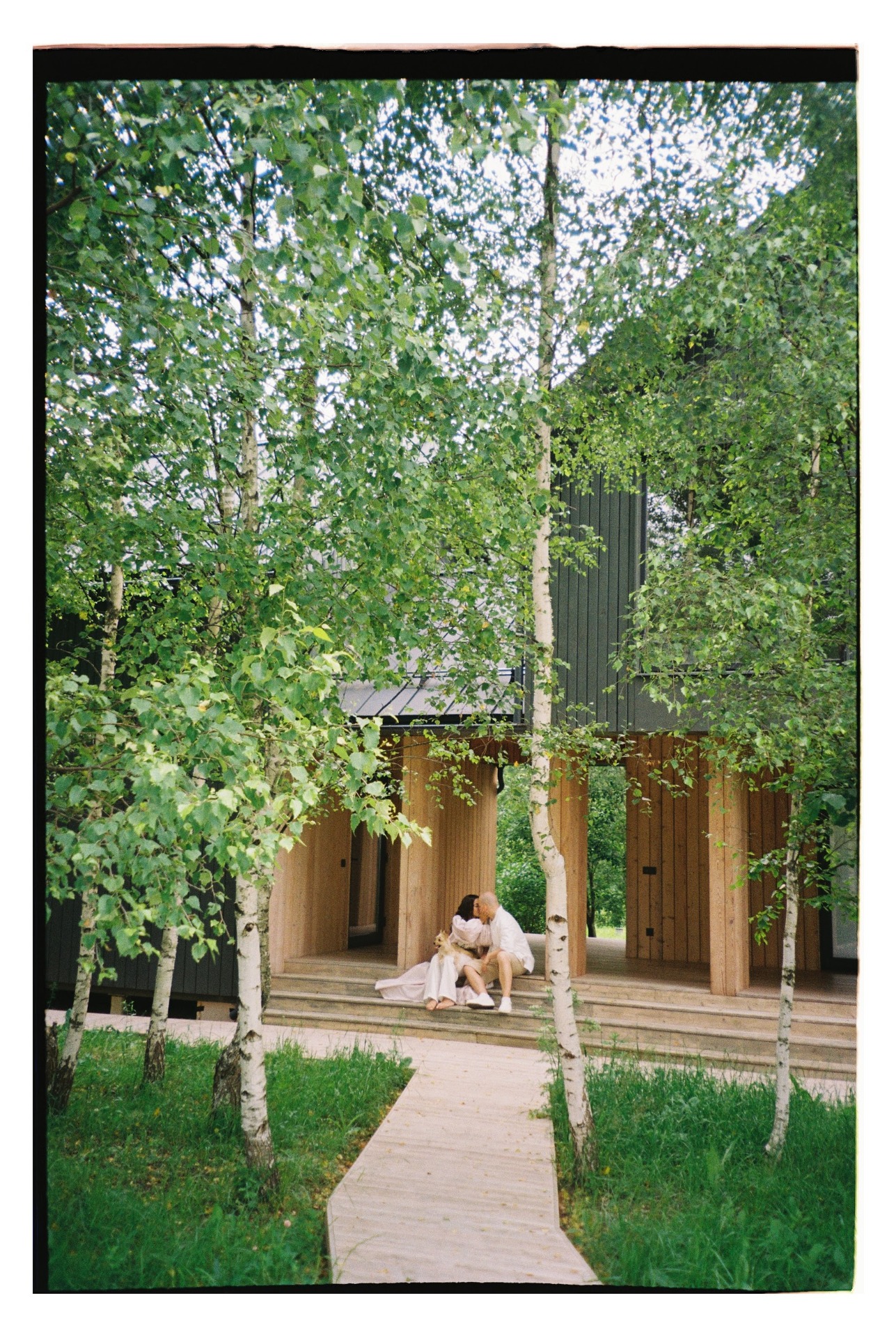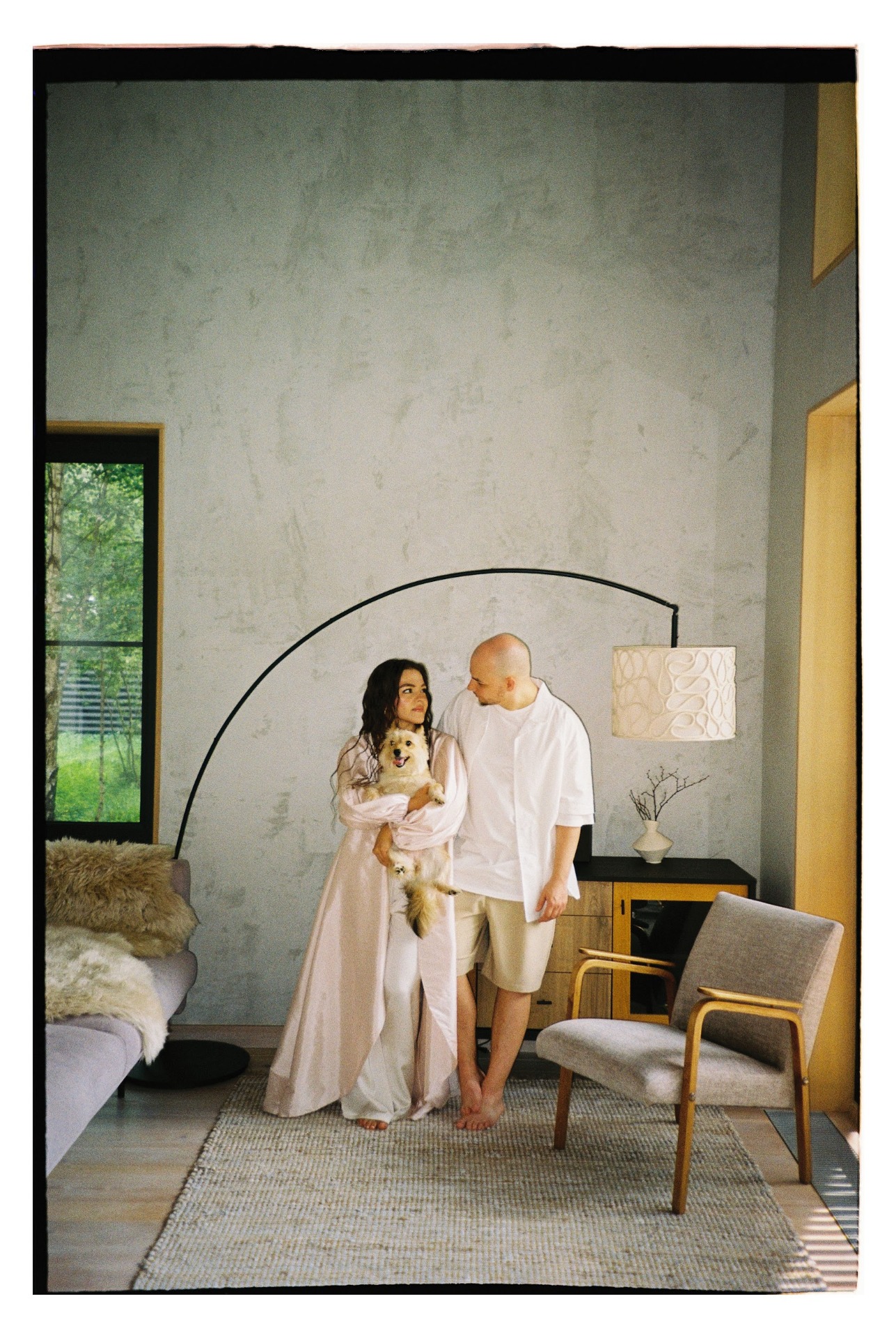 Наш день начался в 9 утра с визажиста, позже к нам присоединились фотограф и видеограф, с которыми сразу возникла связь, и съёмка превратилась в настоящее приключение. Утро прошло в уютном доме с лесом за окнами.