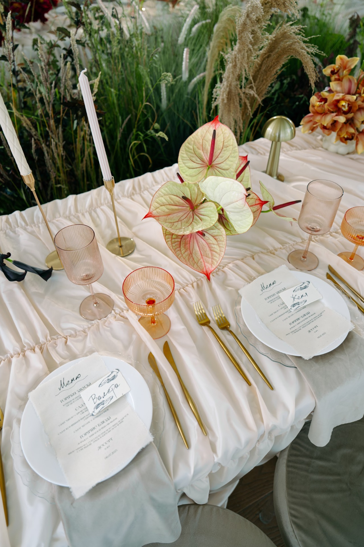 В итоге свадьба получилась минималистичной, но не пустой, а наполненной смыслом, фактурой и глубиной.