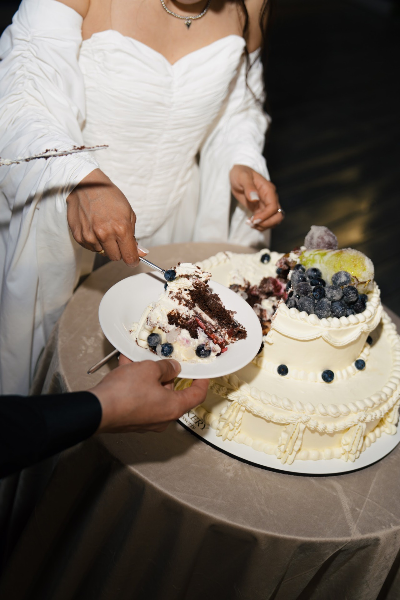 В завершение мы разрезали торт и покормили друг друга. Пригласительные и карточки рассадки были выполнены на бумаге ручного литья с семенами незабудок: гости могли посадить их и сохранить память о дне.