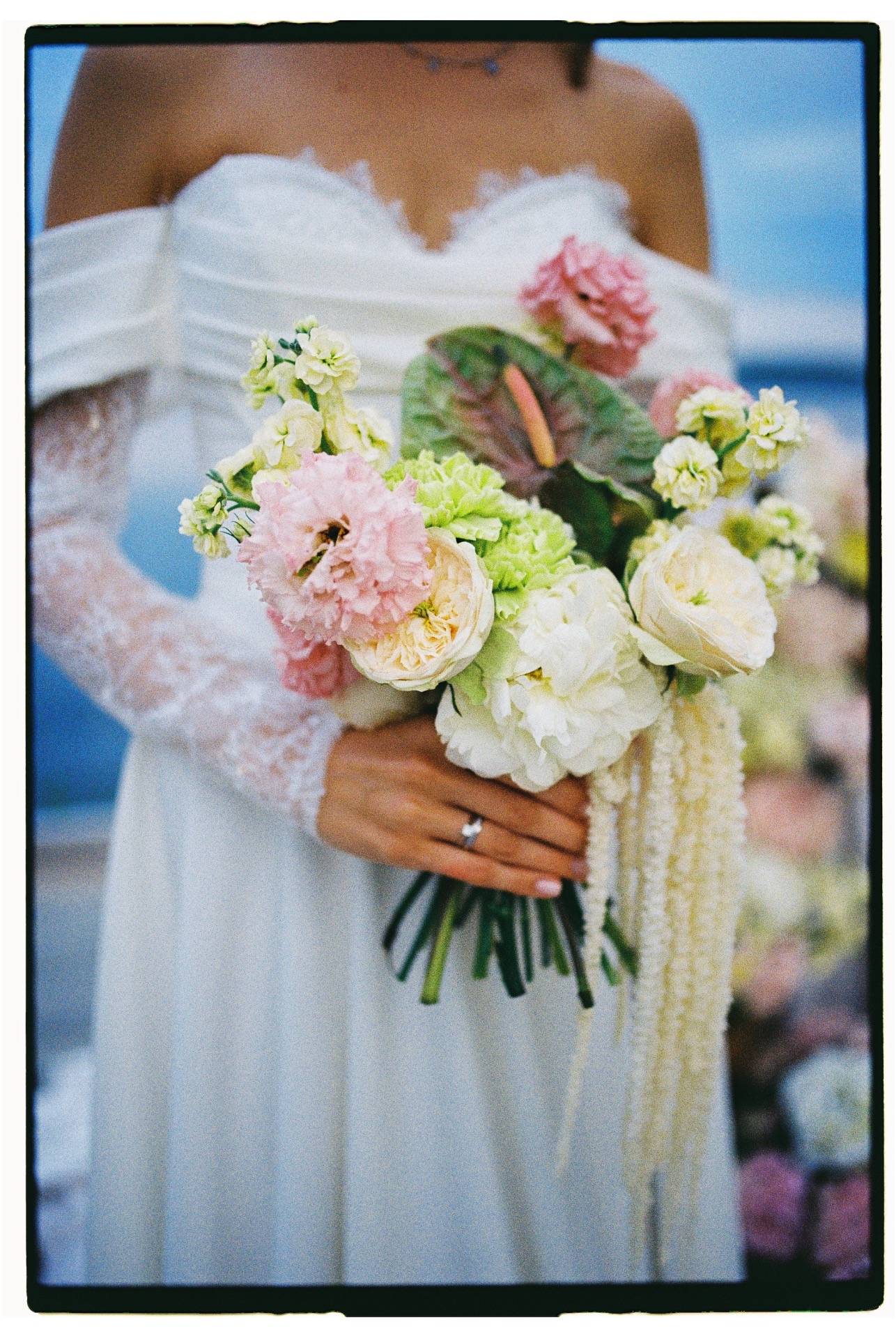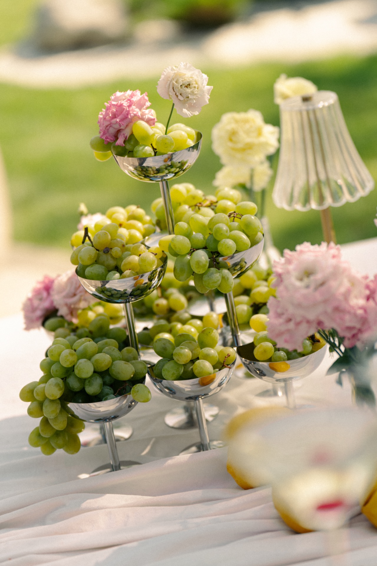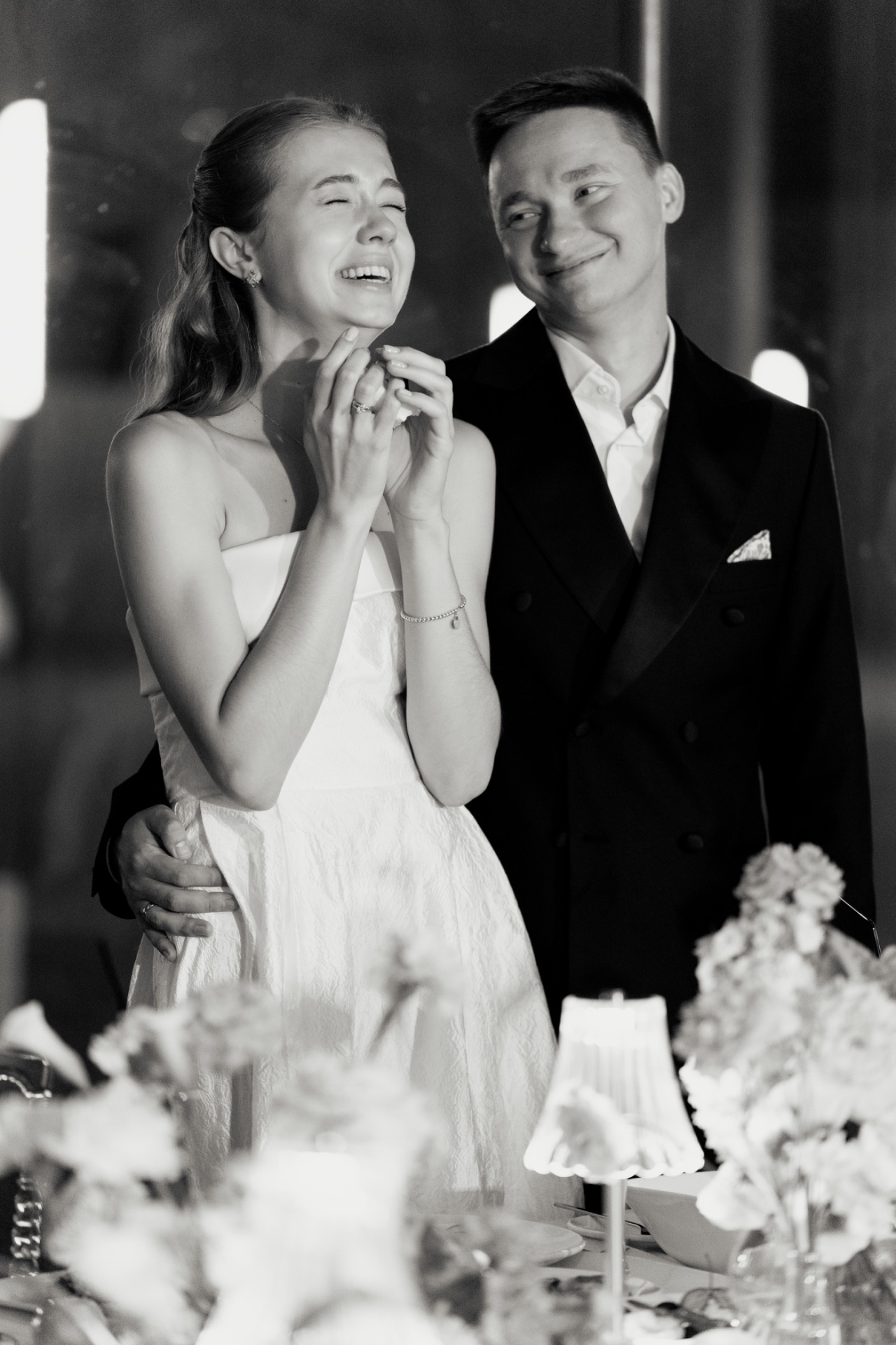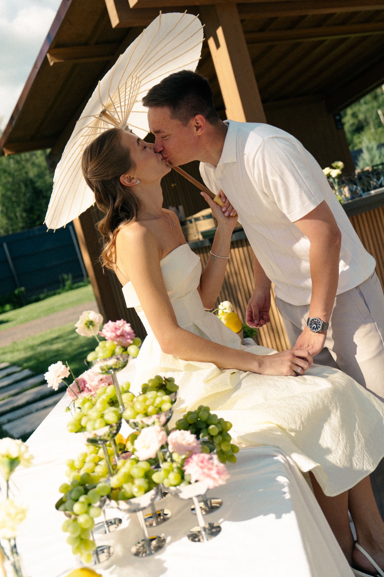 48 кг лимонов, 16 кг винограда, море цветов, милые светильники, башня из шампанского и башня из винограда — всё это создало нужное настроение. Наша декоратор Яна идеально воплотила в жизнь все наши референсы. Когда я увидела букет и зону церемонии, то не смогла сдержать слёз. Всё выглядело даже лучше, чем я мечтала.